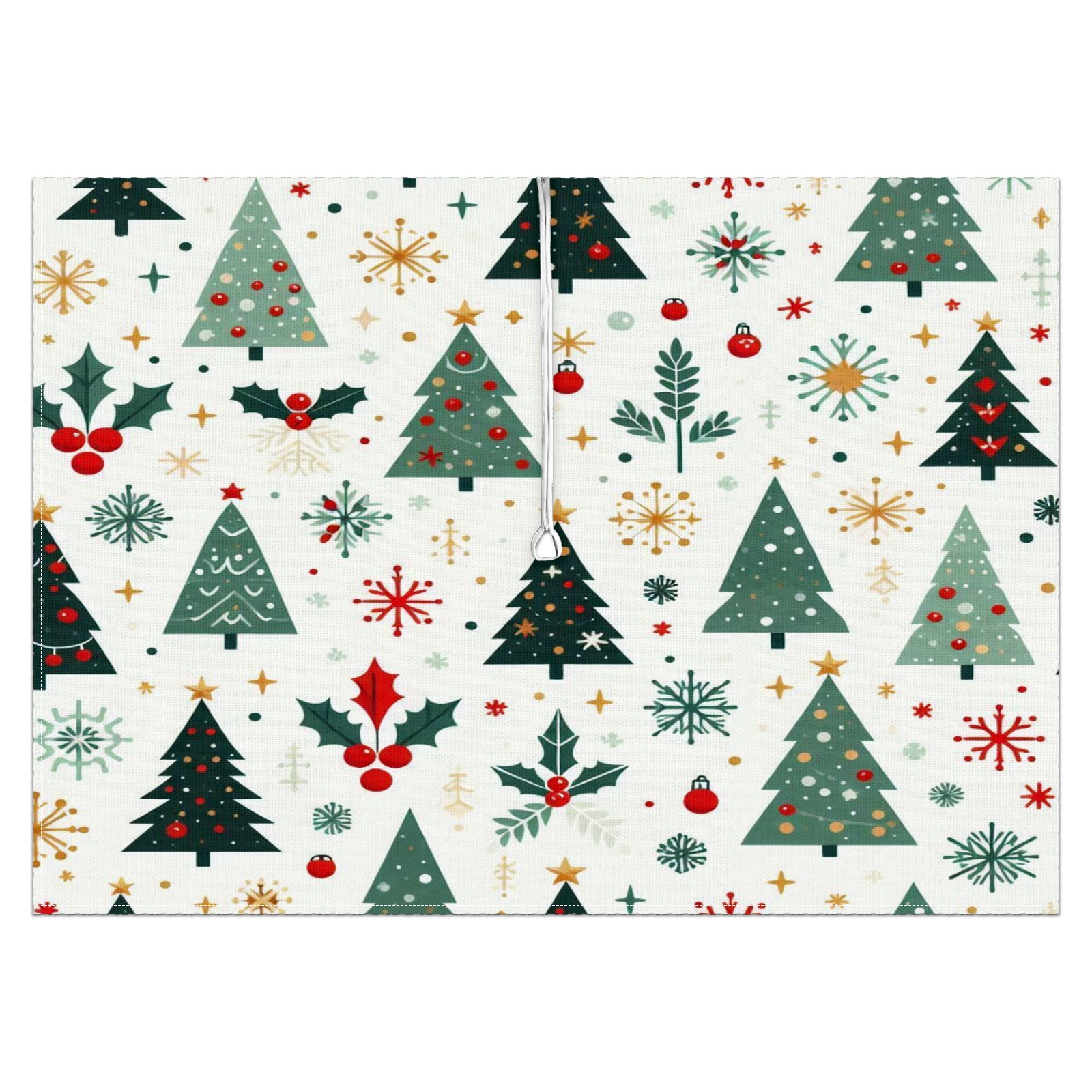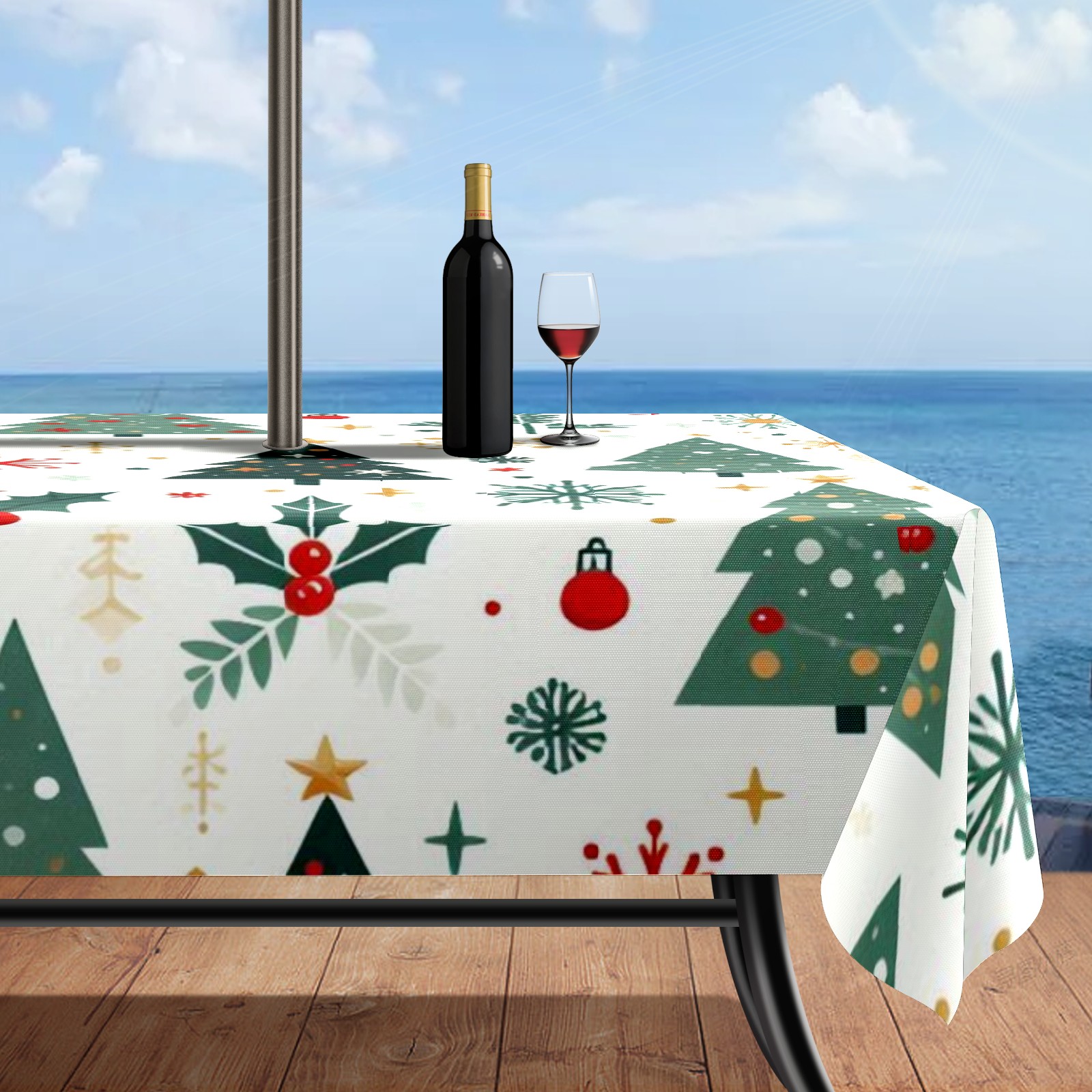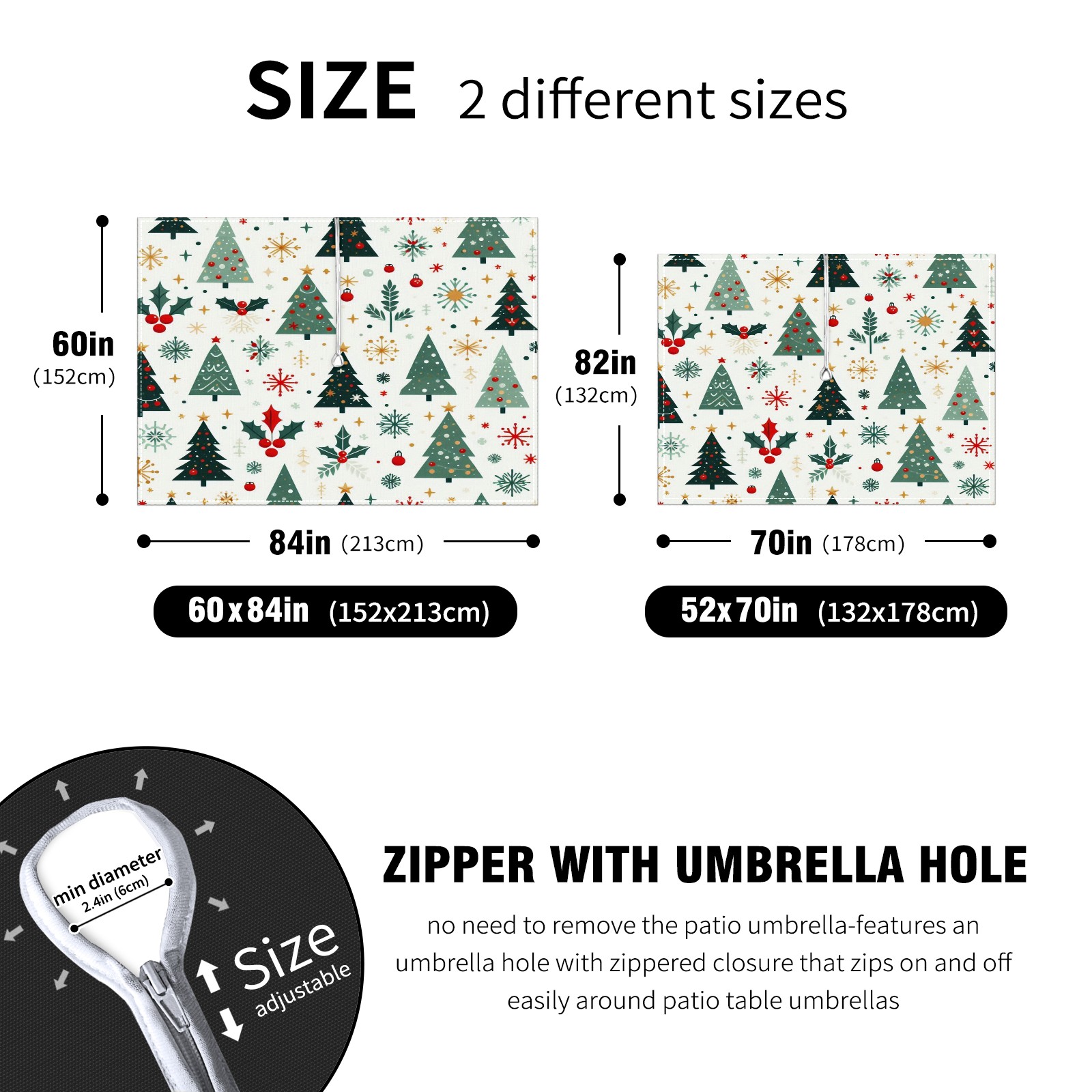Square Umbrella Hole Tablecloth with Zipper, Green Christmas Trees Waterproof Outdoor Patio Table Cover for Rectangular Table, 52x70 Inch, Fits 6-8 Seater, Easy Setup Without Removing Umbrella