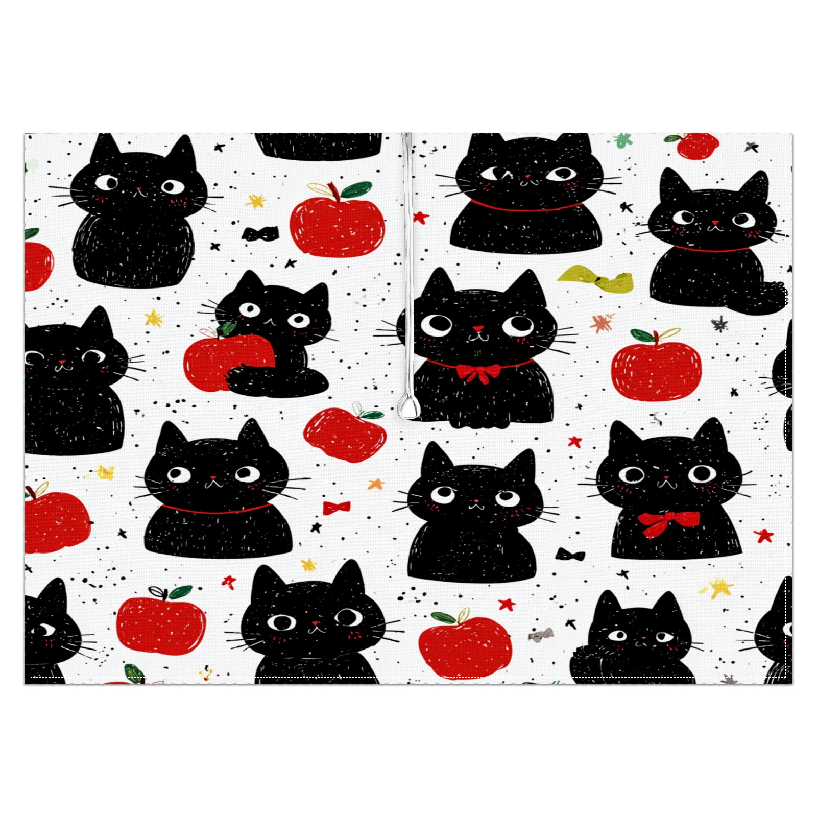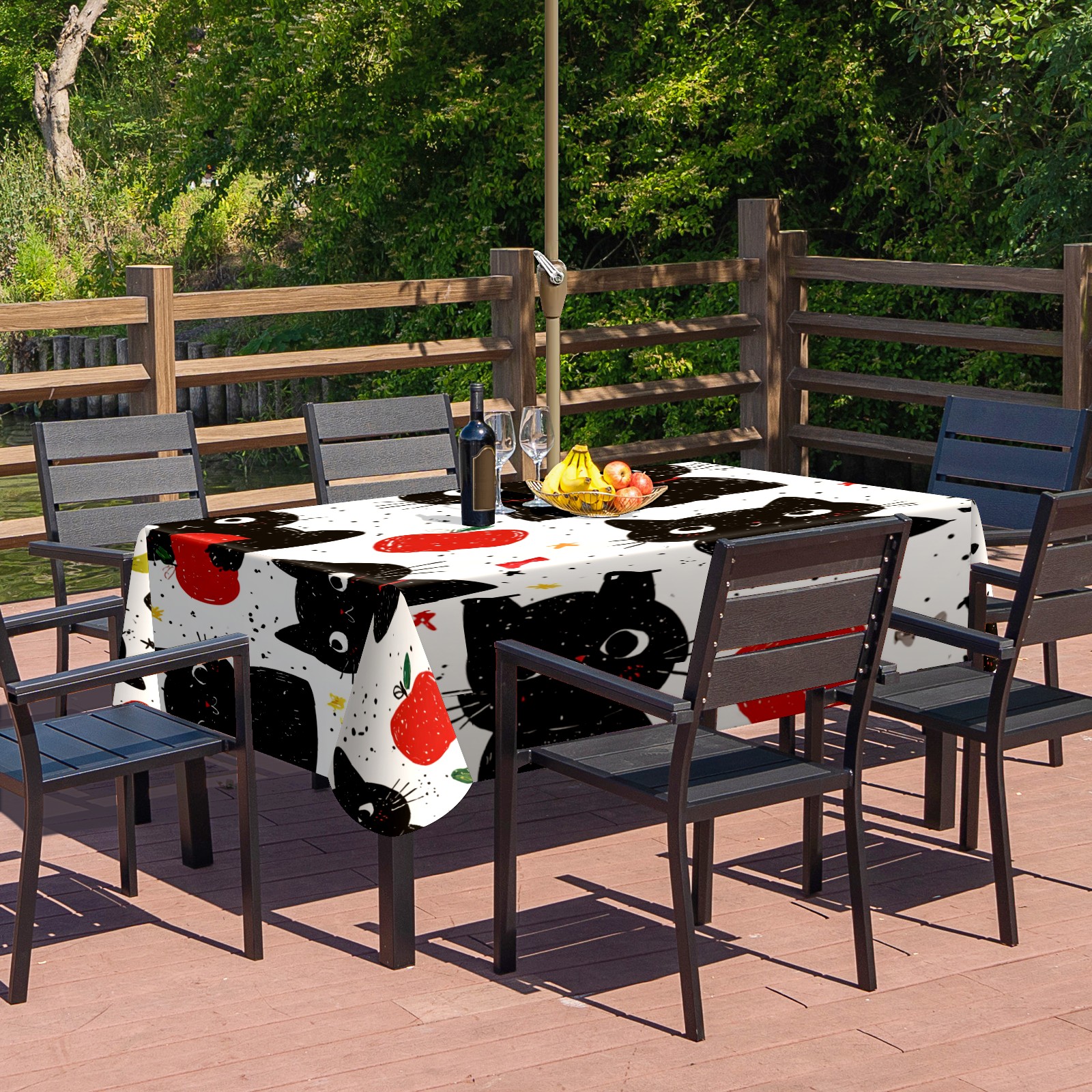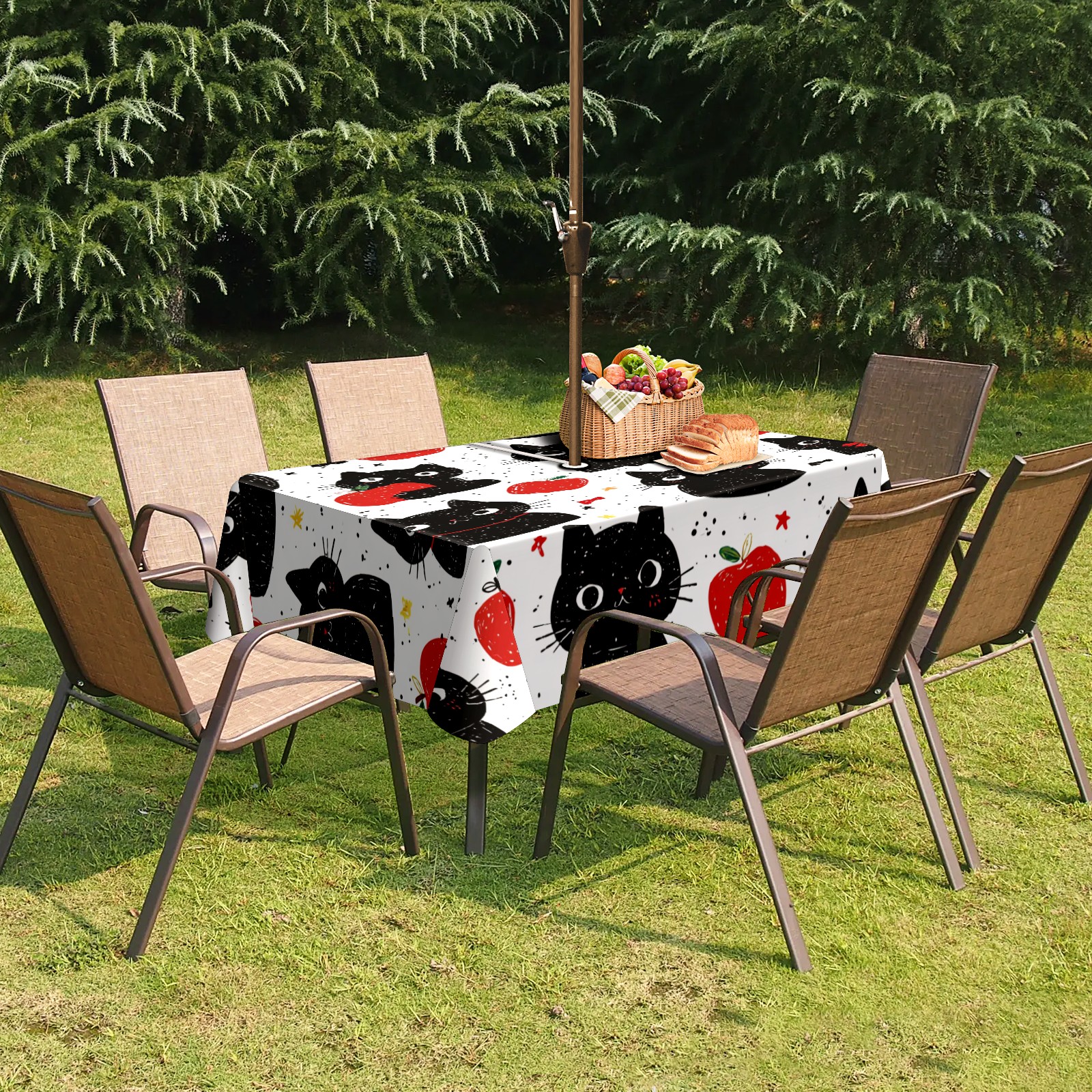Square Umbrella Hole Tablecloth with Zipper, Black Cats Red Apples Waterproof Outdoor Patio Table Cover for Rectangular Table, 52x70 Inch, Fits 6-8 Seater, Easy Setup Without Removing Umbrella