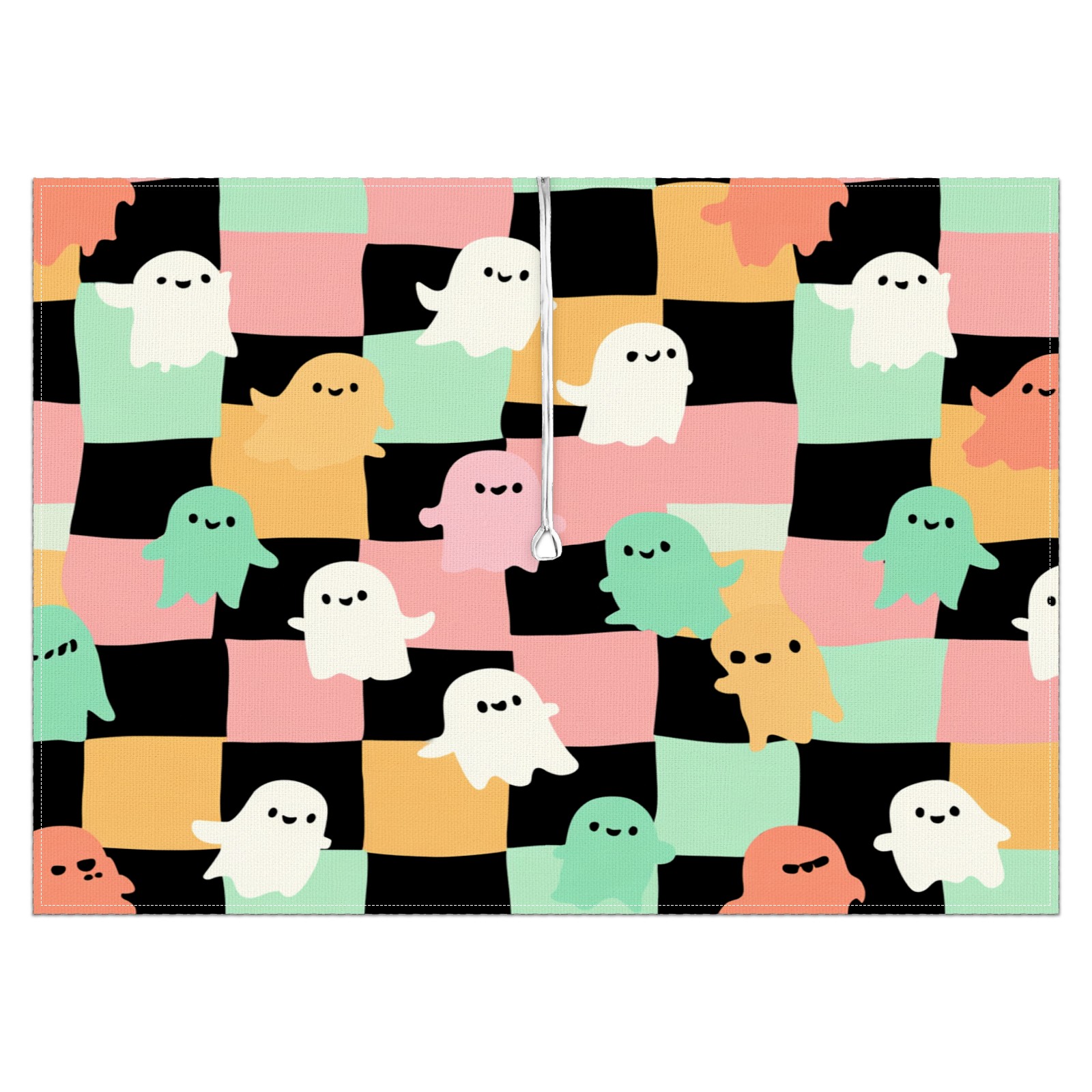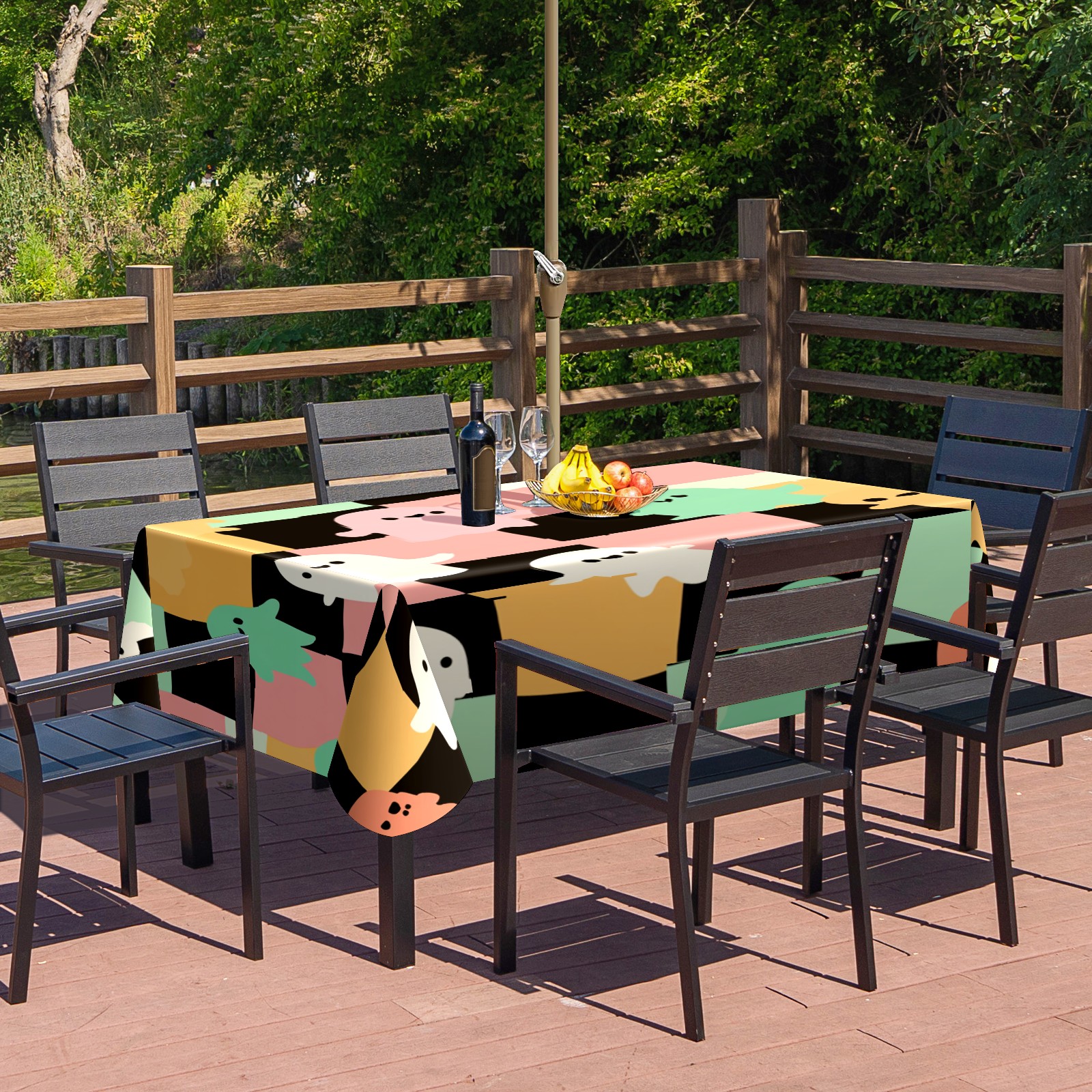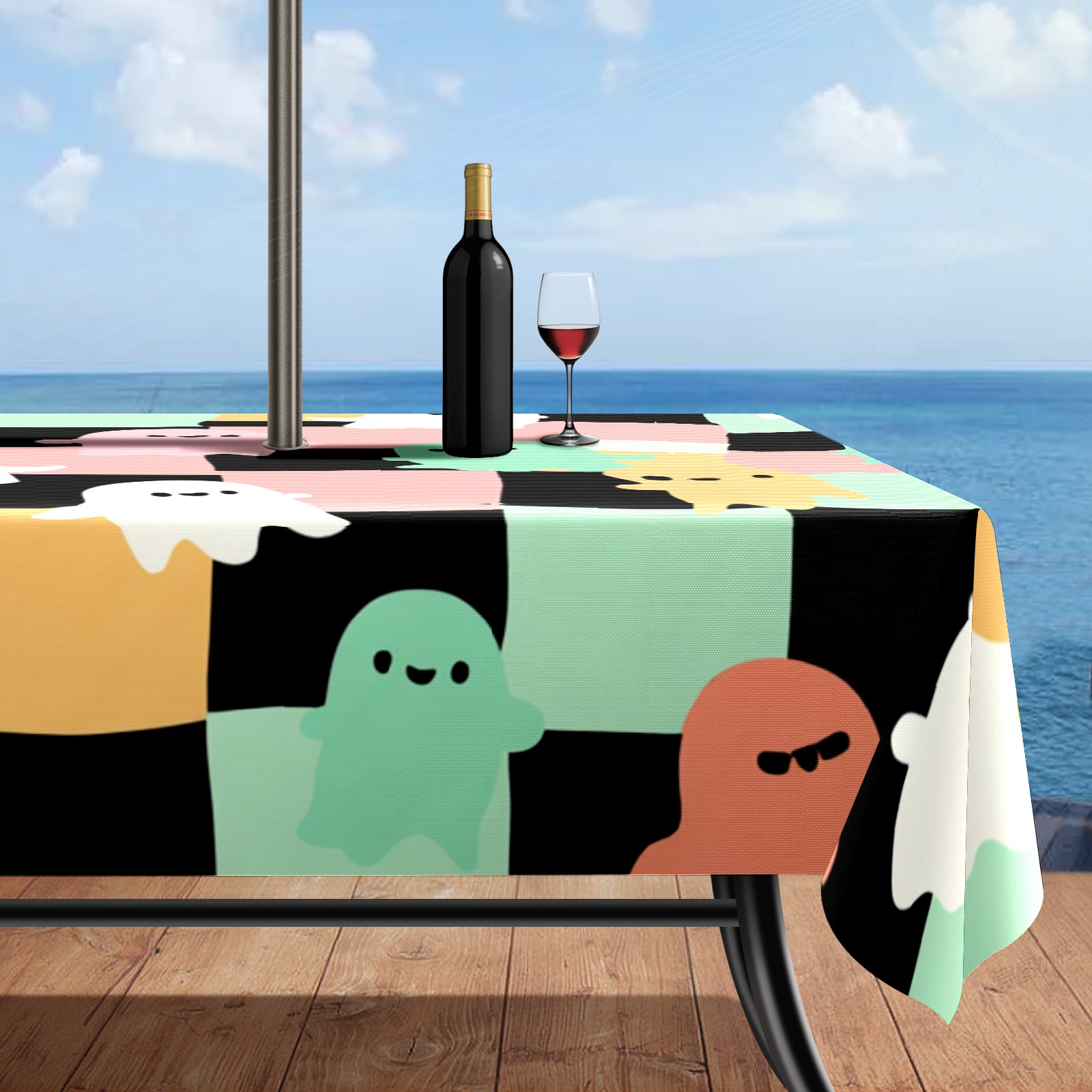 Square Umbrella Hole Tablecloth with Zipper, Colorful Checker Ghost Waterproof Outdoor Patio Table Cover for Rectangular Table, 52x70 Inch, Fits 6-8 Seater, Easy Setup Without Removing Umbrella