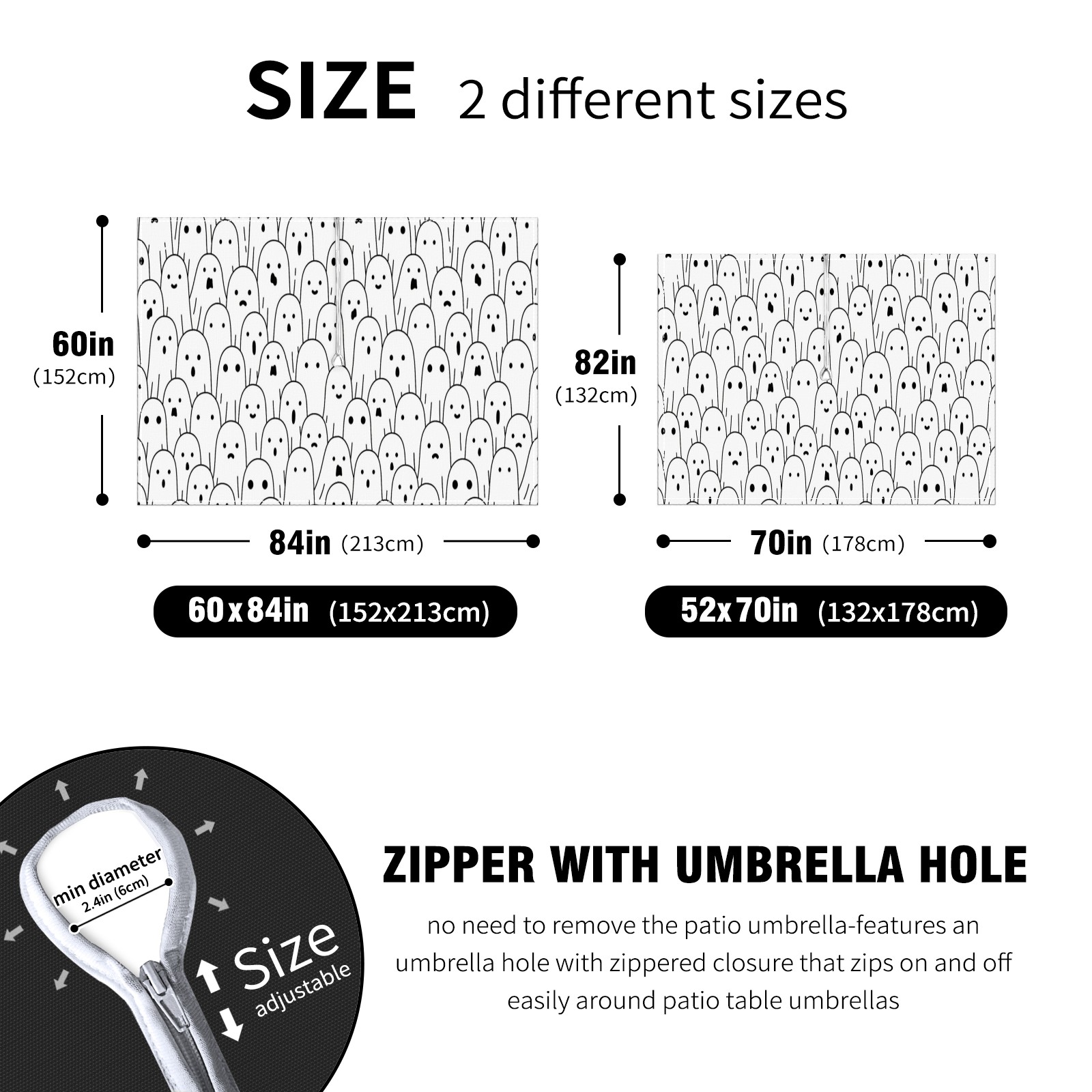 Square Umbrella Hole Tablecloth with Zipper, Monster Waterproof Outdoor Patio Table Cover for Rectangular Table, 52x70 Inch, Fits 6-8 Seater, Easy Setup Without Removing Umbrella