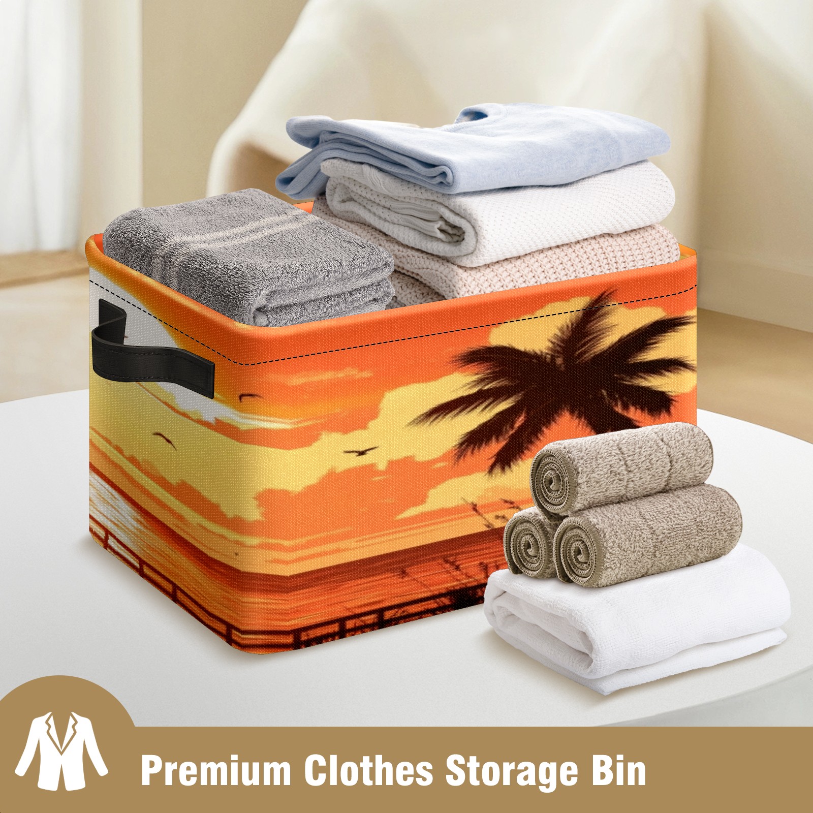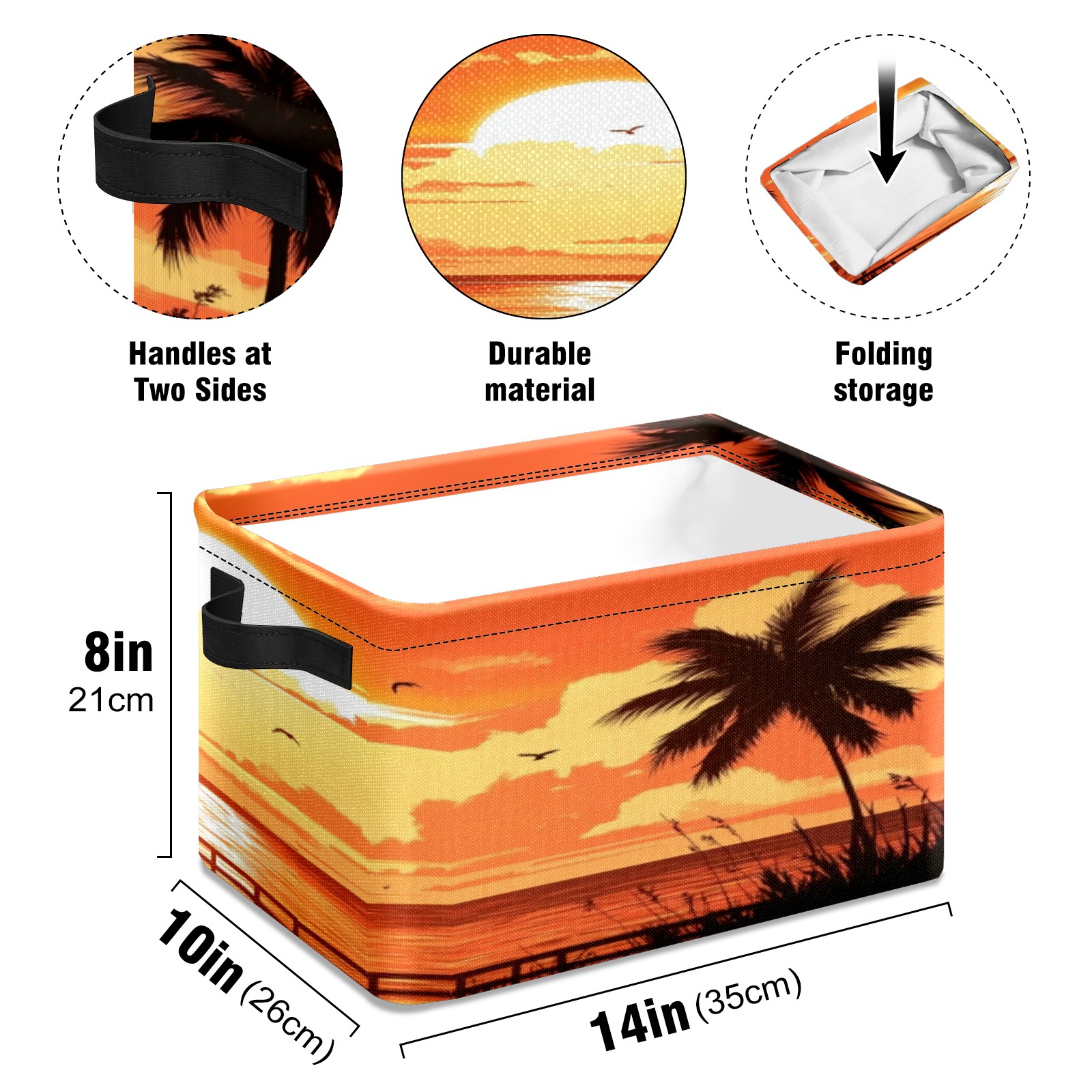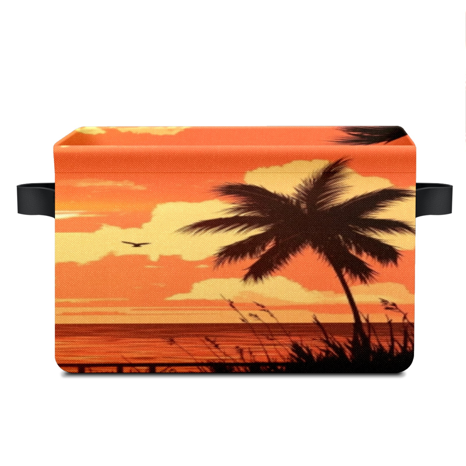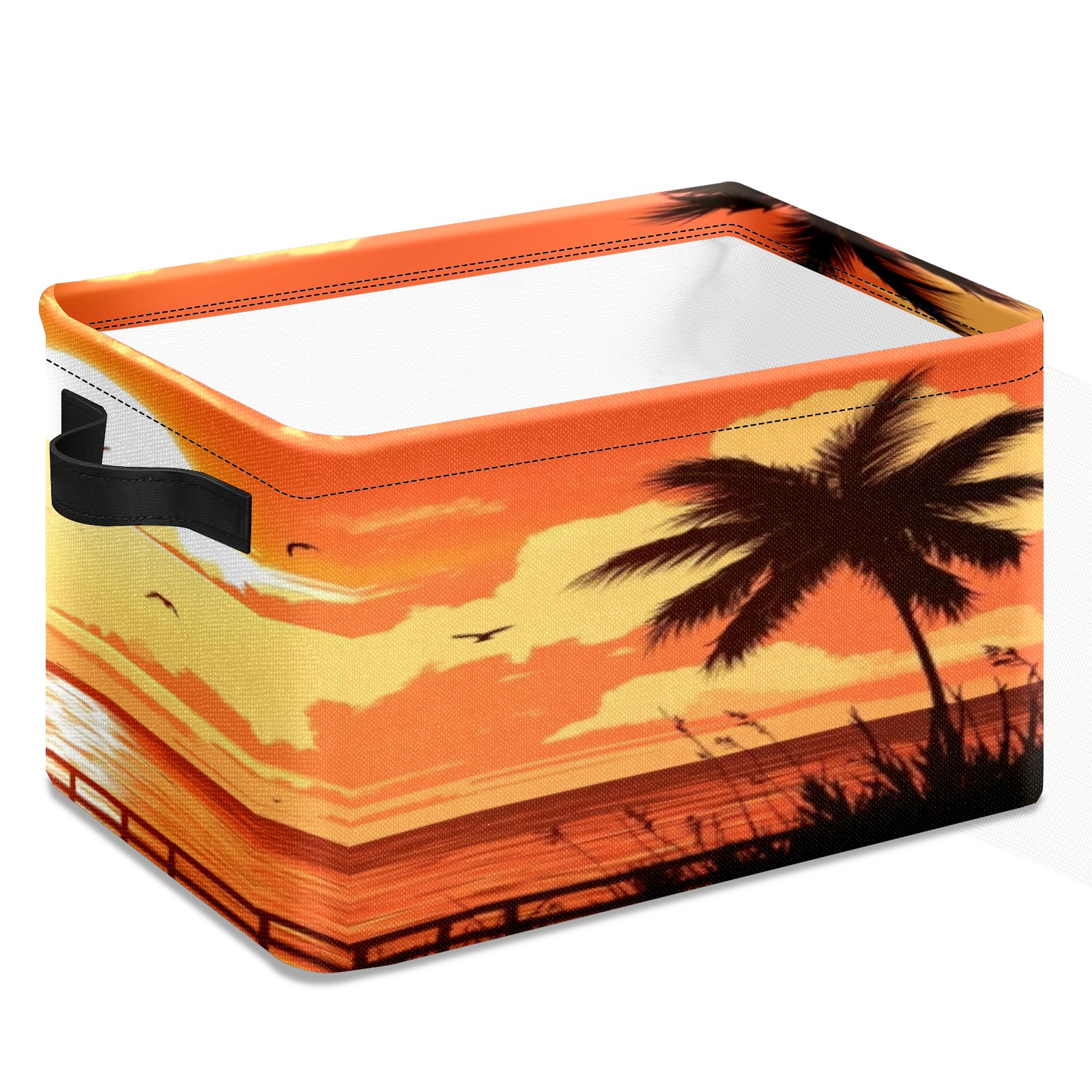 Foldable and Stackable Fabric Storage Basket for Home Organization with Handles, Decorative Closet Bins for Shelves, Laundry, and Toy Storage( Sunset On The Beach)
