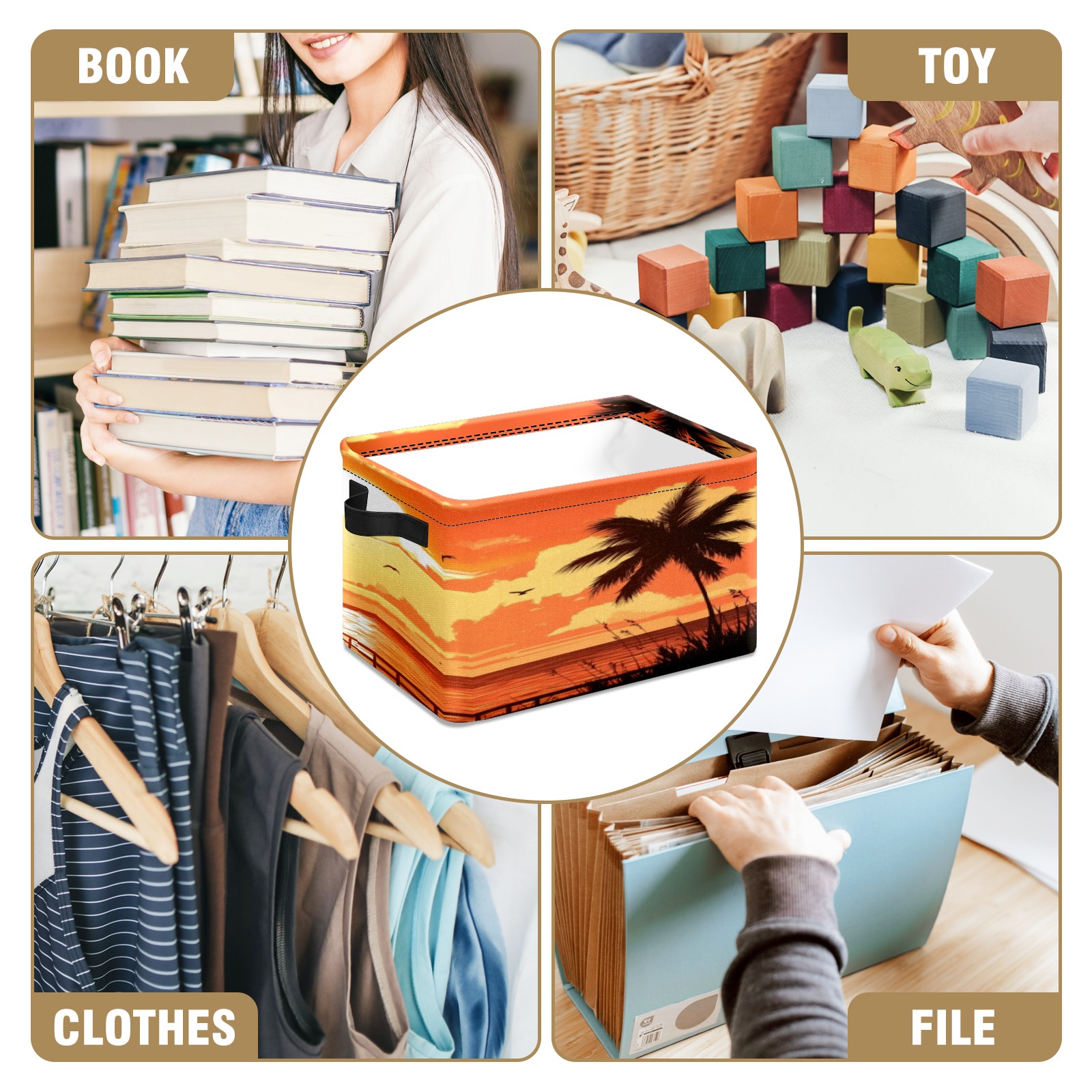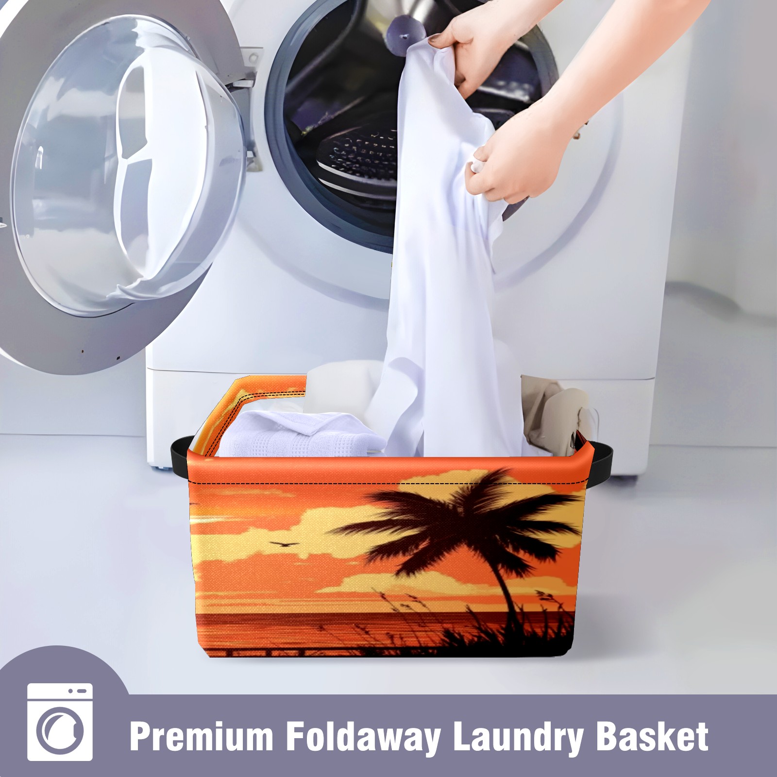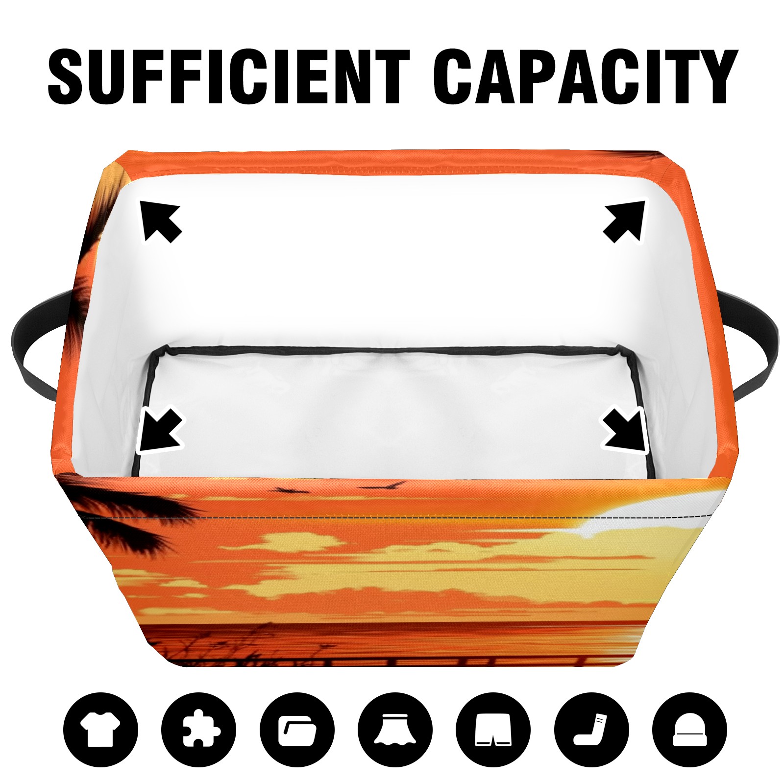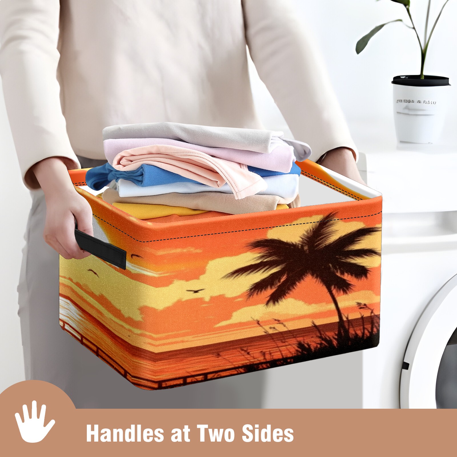 Foldable and Stackable Fabric Storage Basket for Home Organization with Handles, Decorative Closet Bins for Shelves, Laundry, and Toy Storage( Sunset On The Beach)
