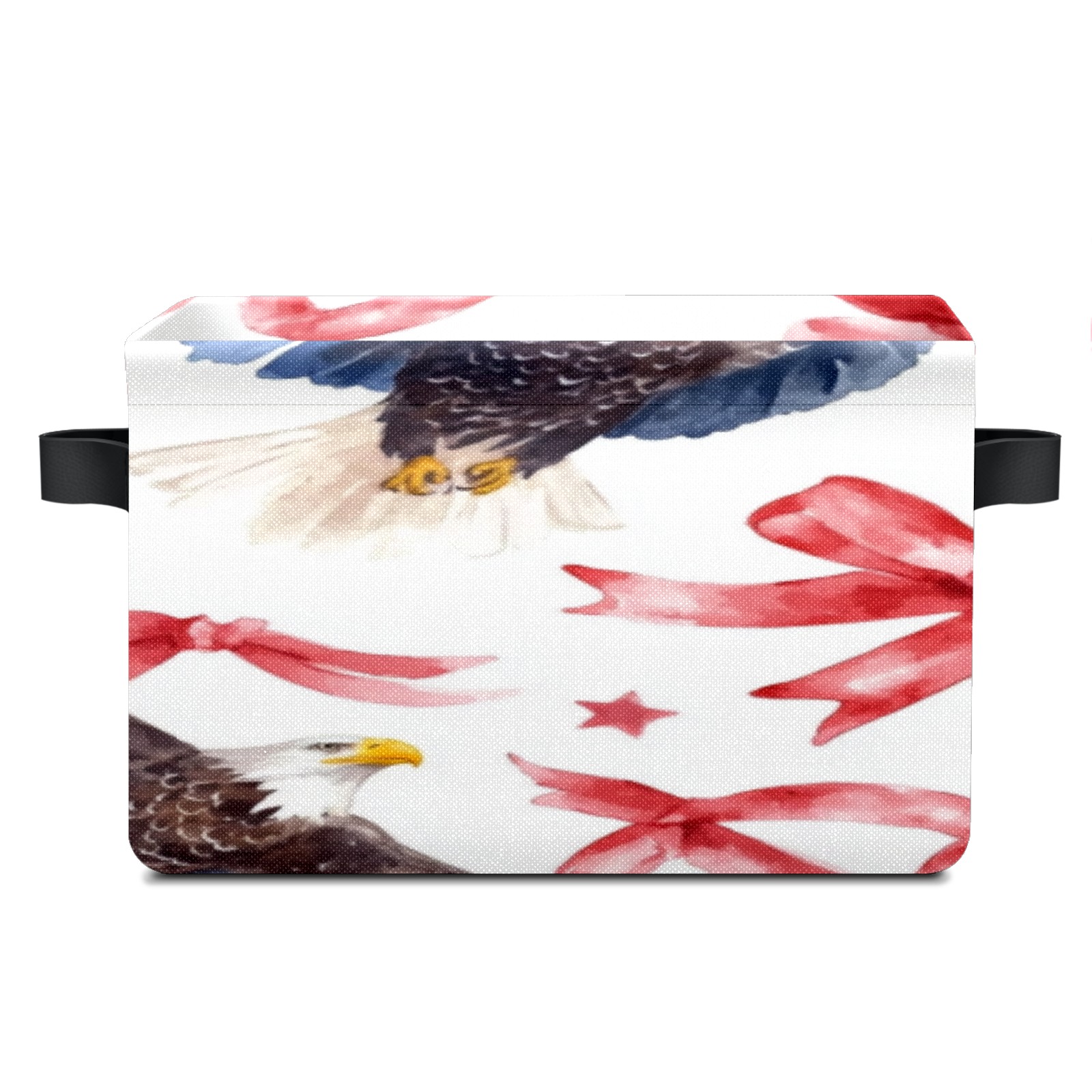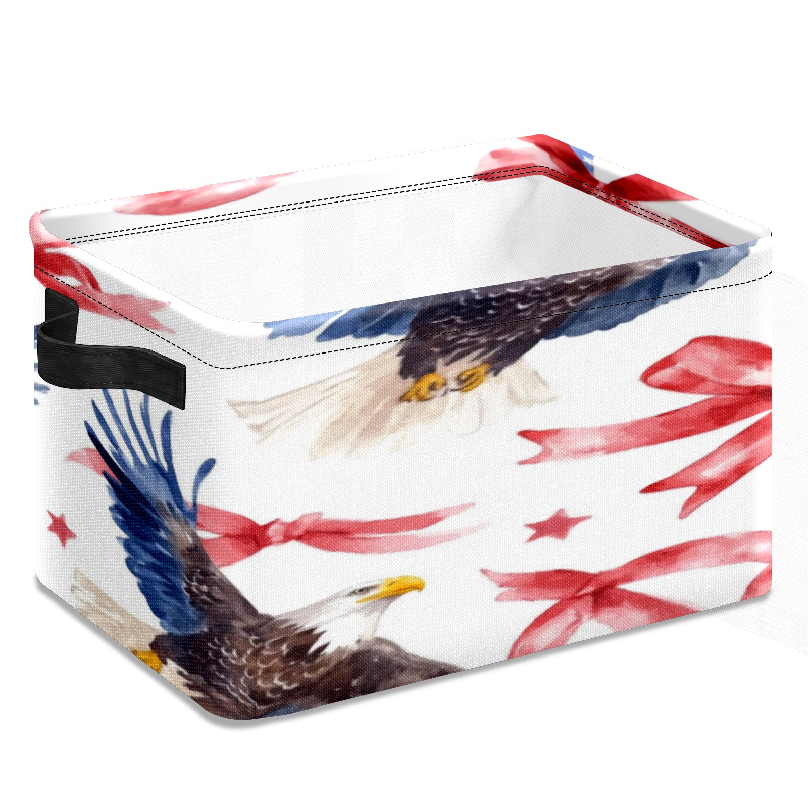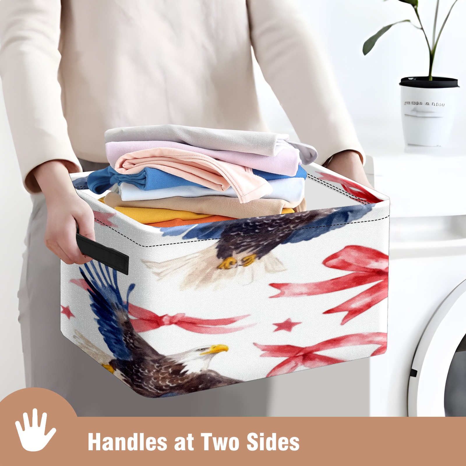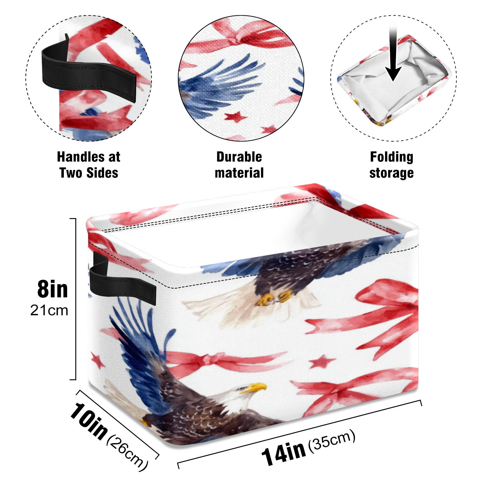 Foldable and Stackable Fabric Storage Basket for Home Organization with Handles, Decorative Closet Bins for Shelves, Laundry, and Toy Storage( American Flag Bows And Eagles)