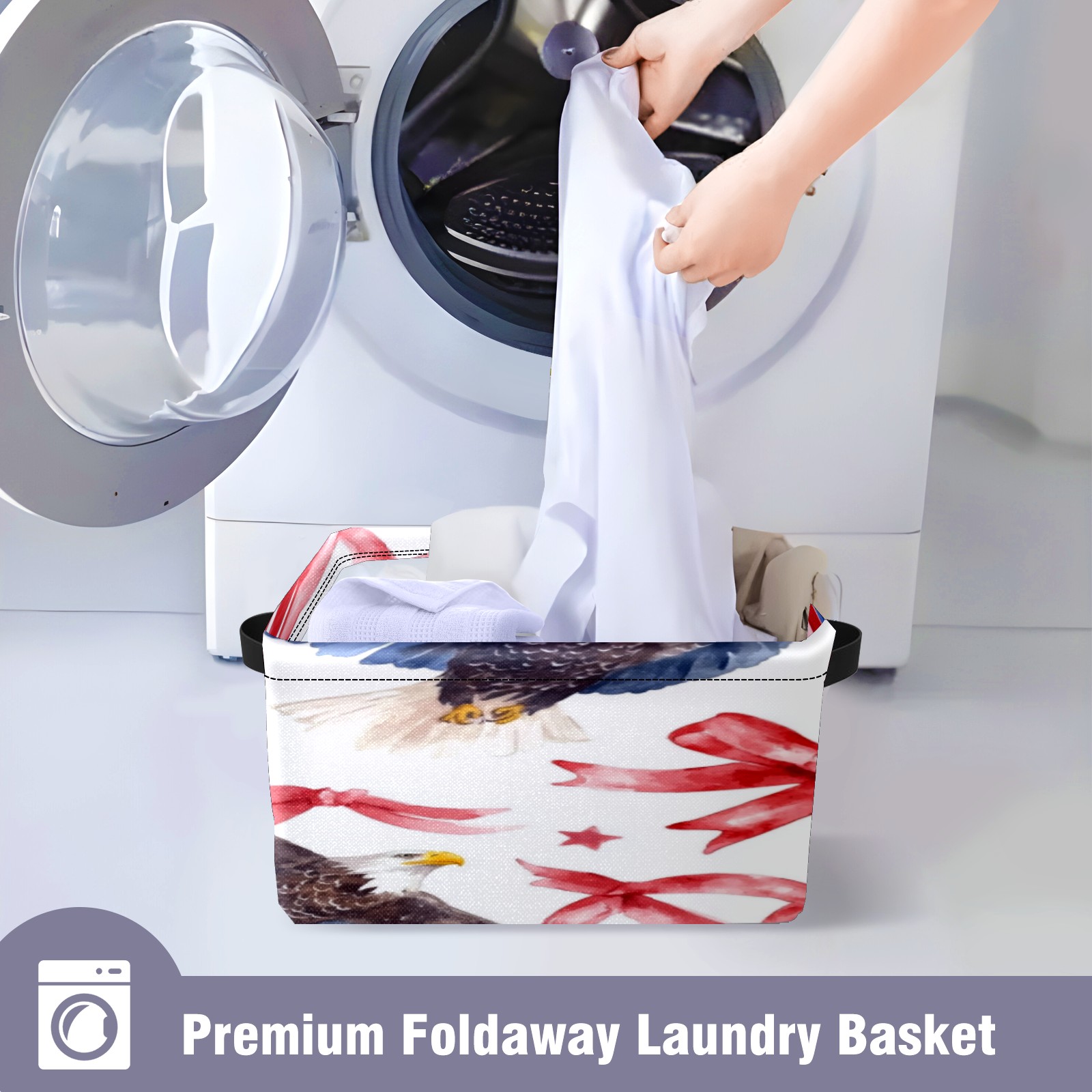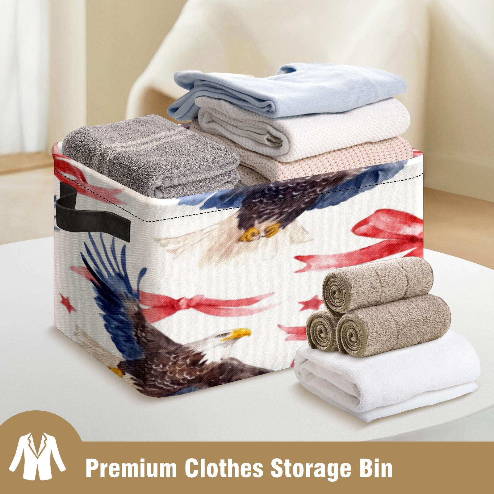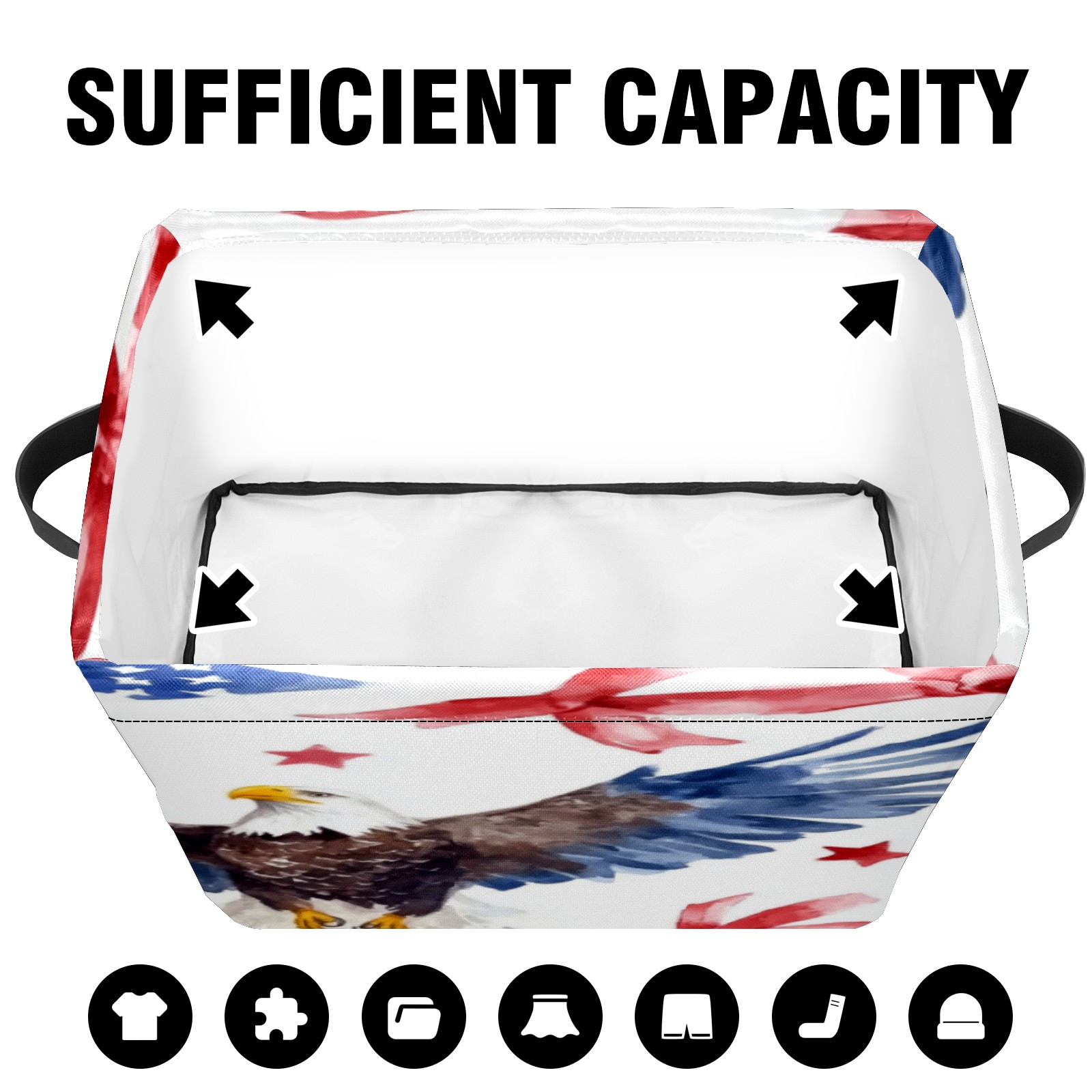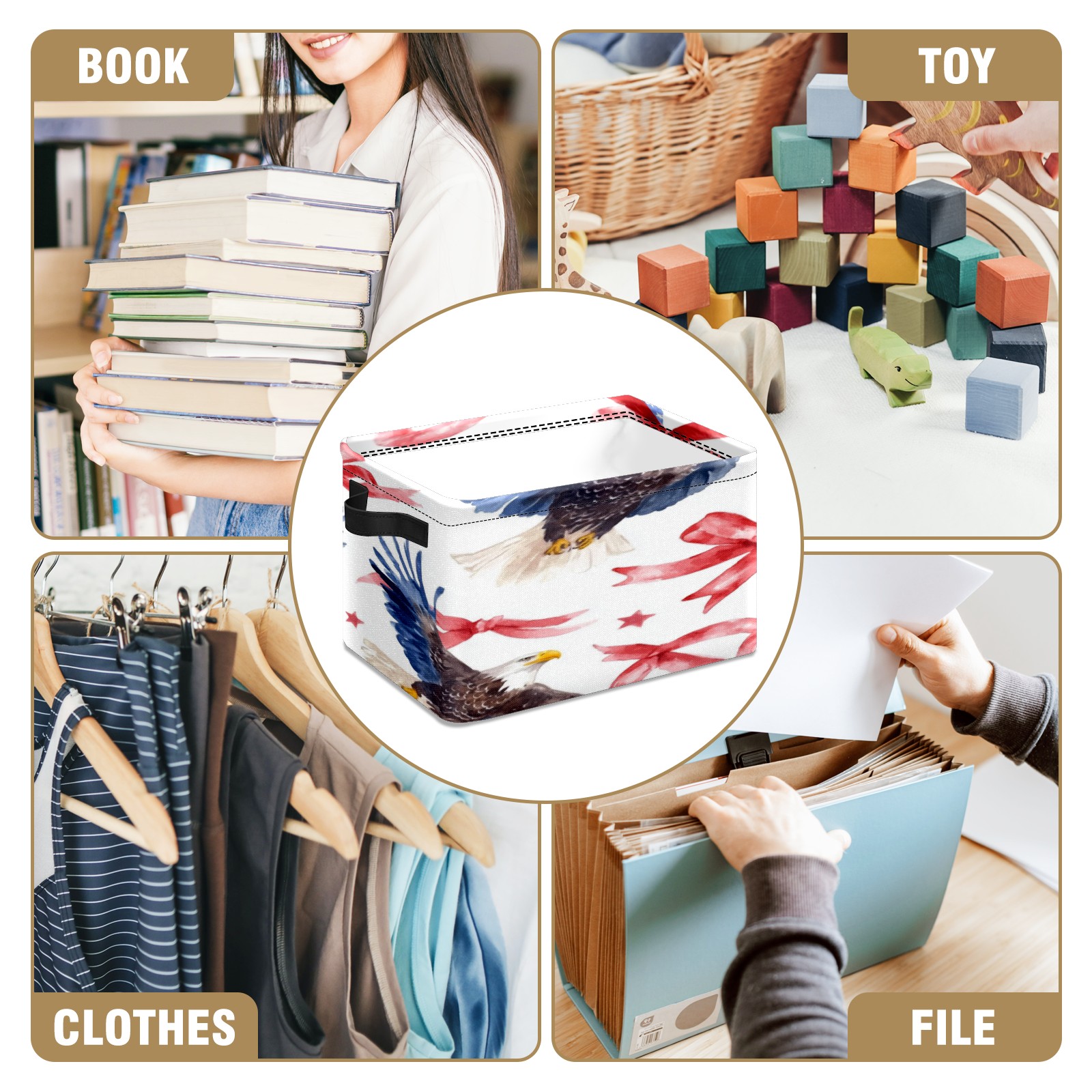 Foldable and Stackable Fabric Storage Basket for Home Organization with Handles, Decorative Closet Bins for Shelves, Laundry, and Toy Storage( American Flag Bows And Eagles)