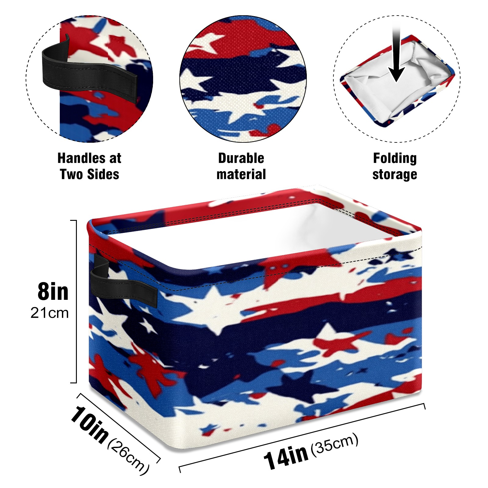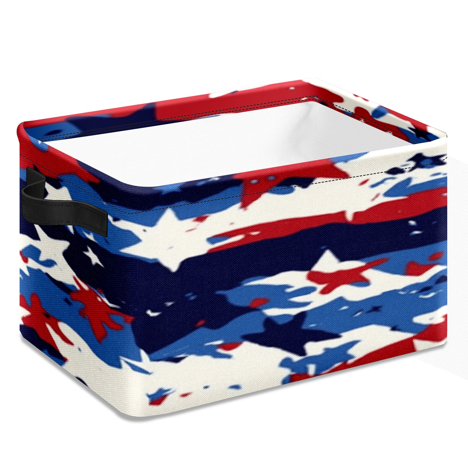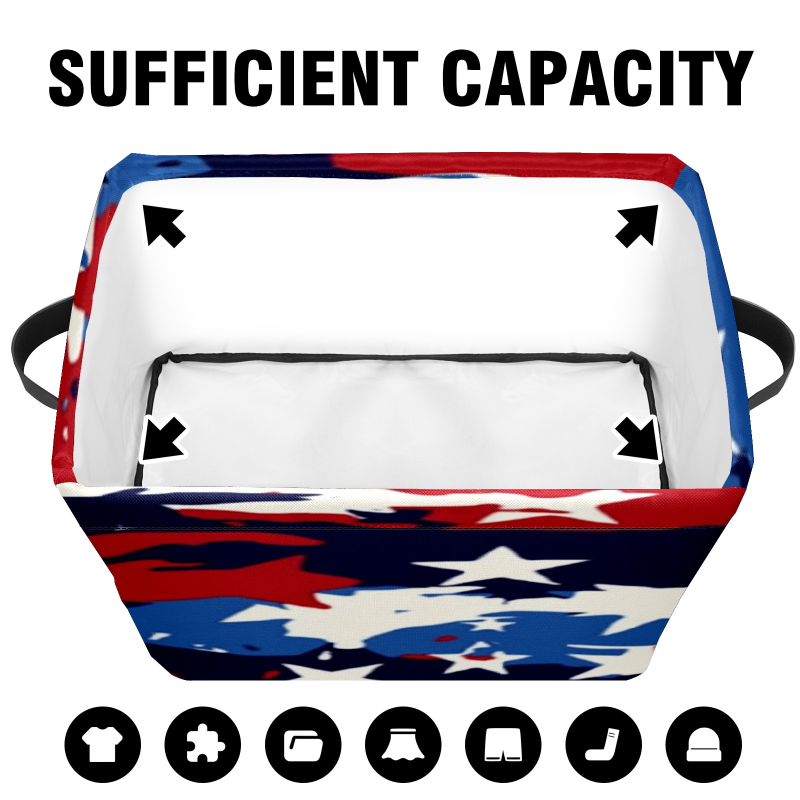 Foldable and Stackable Fabric Storage Basket for Home Organization with Handles, Decorative Closet Bins for Shelves, Laundry, and Toy Storage( Red White And Blue Camouflage)