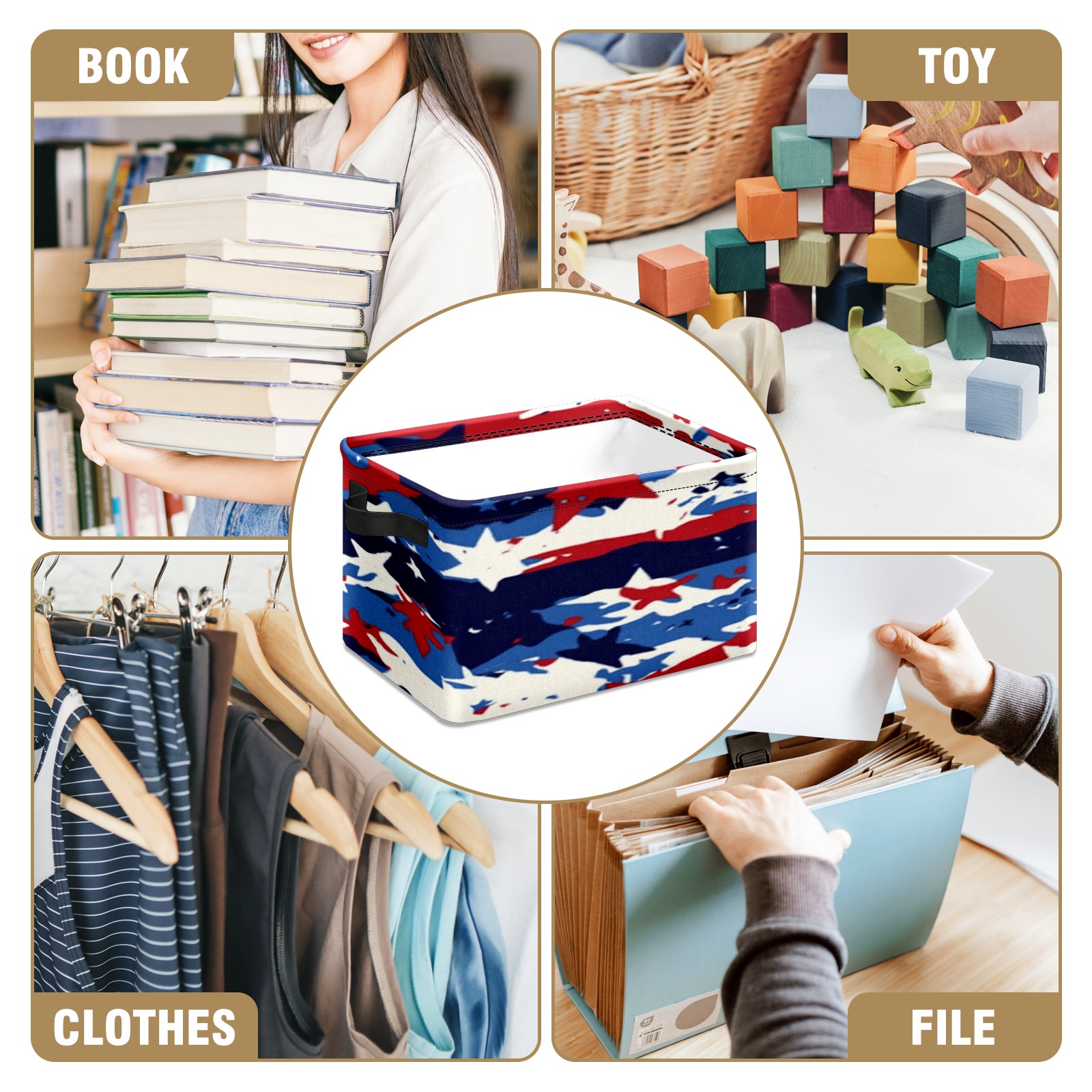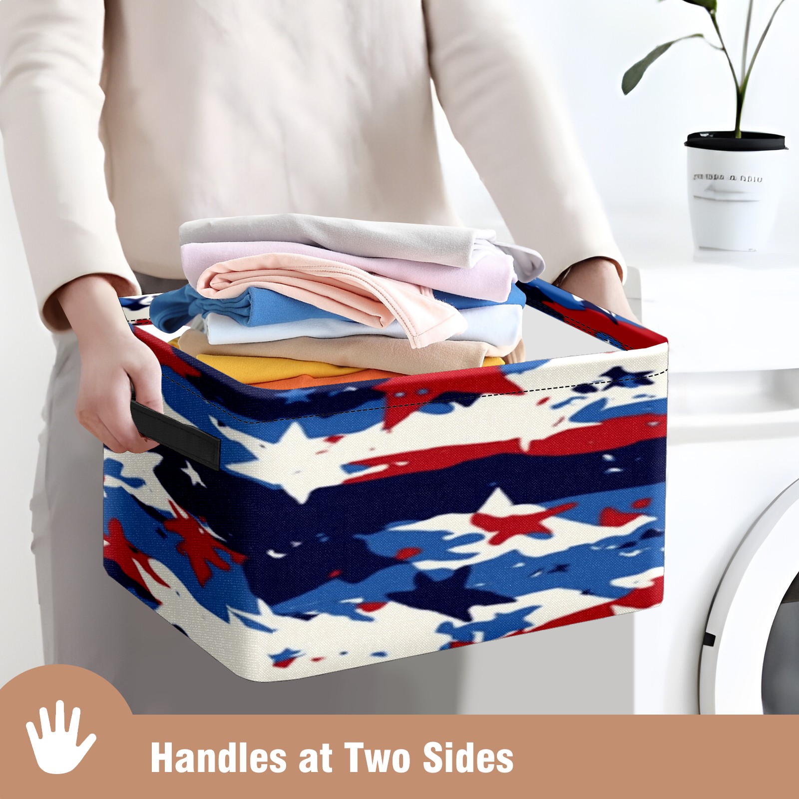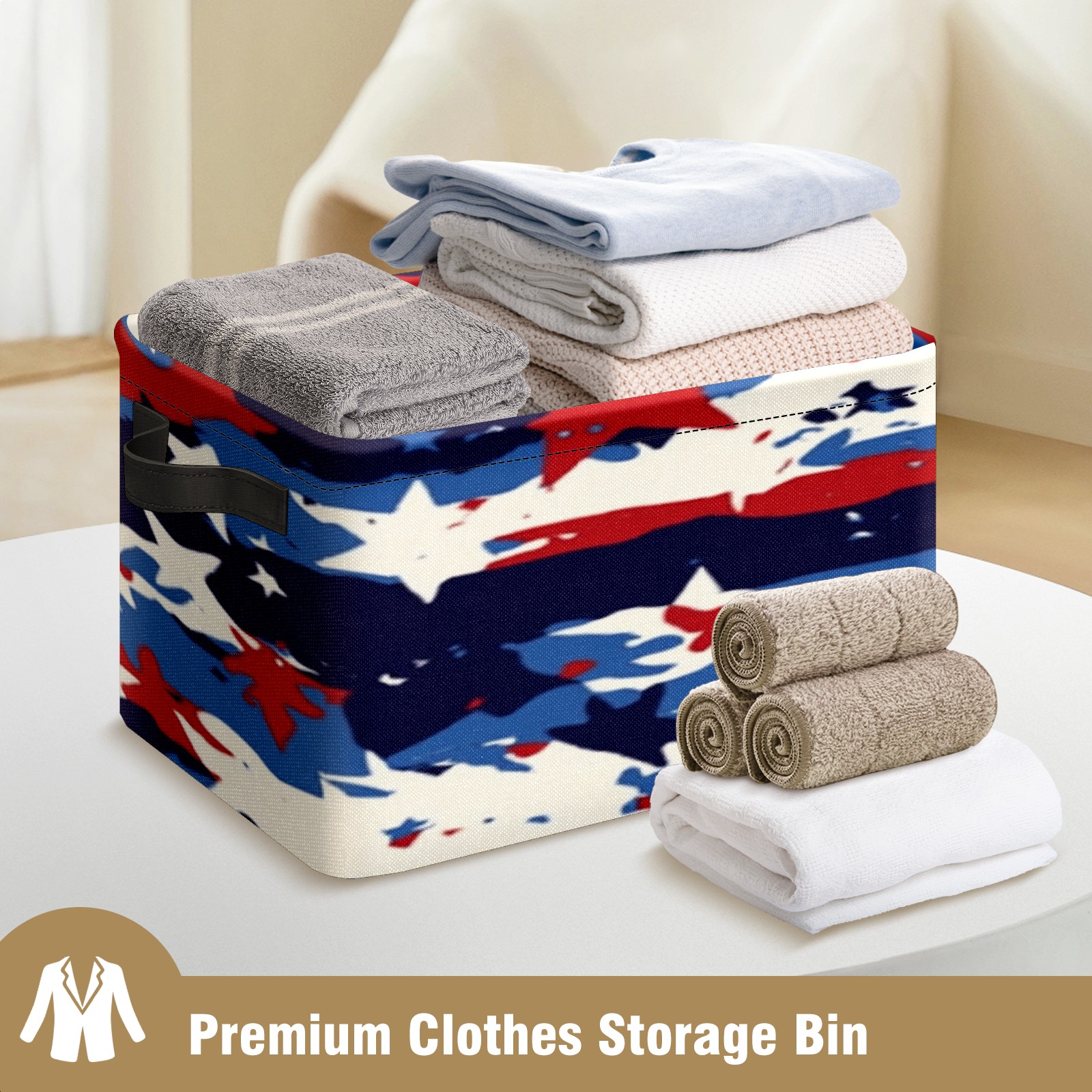 Foldable and Stackable Fabric Storage Basket for Home Organization with Handles, Decorative Closet Bins for Shelves, Laundry, and Toy Storage( Red White And Blue Camouflage)