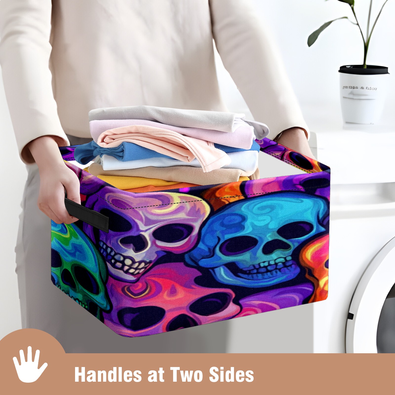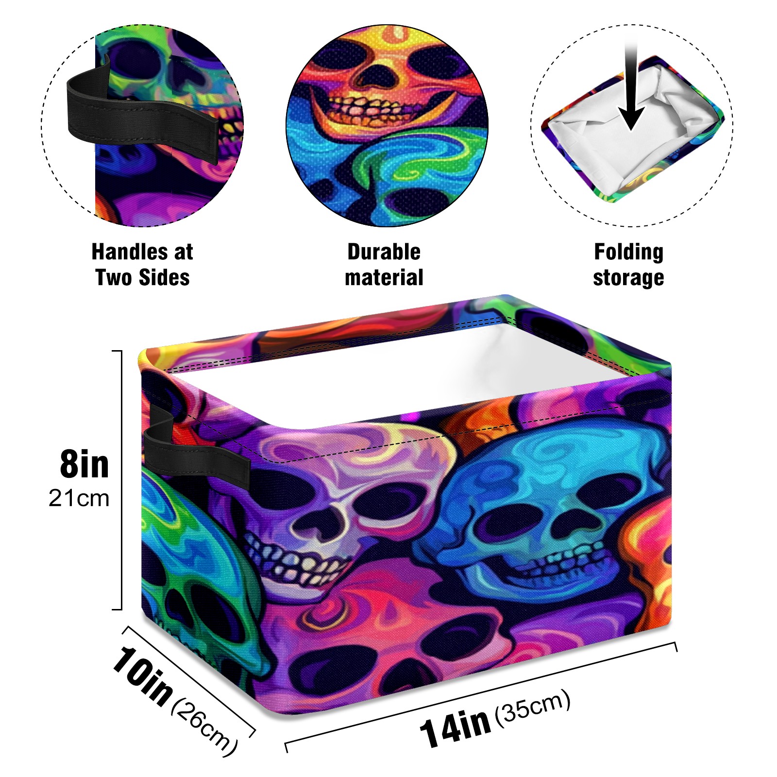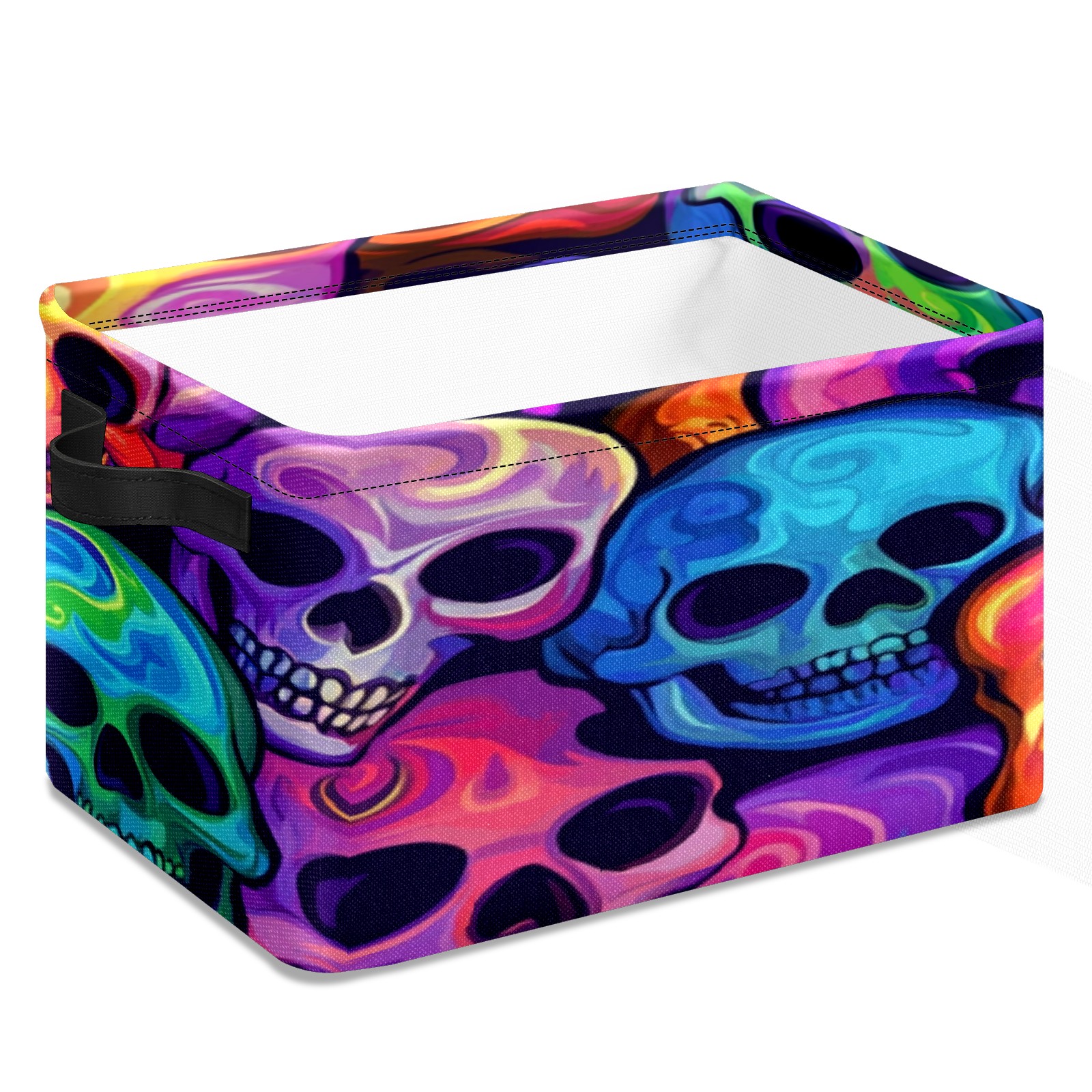 Foldable and Stackable Fabric Storage Basket for Home Organization with Handles, Decorative Closet Bins for Shelves, Laundry, and Toy Storage( Colorful Skulls)