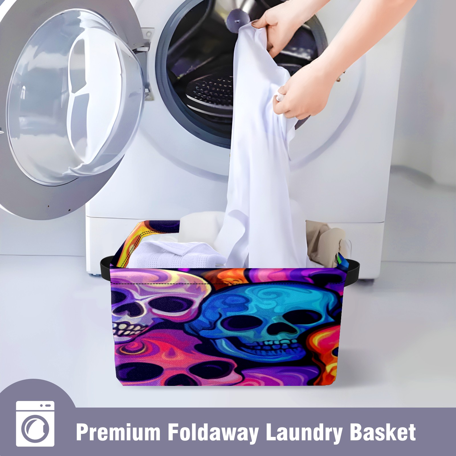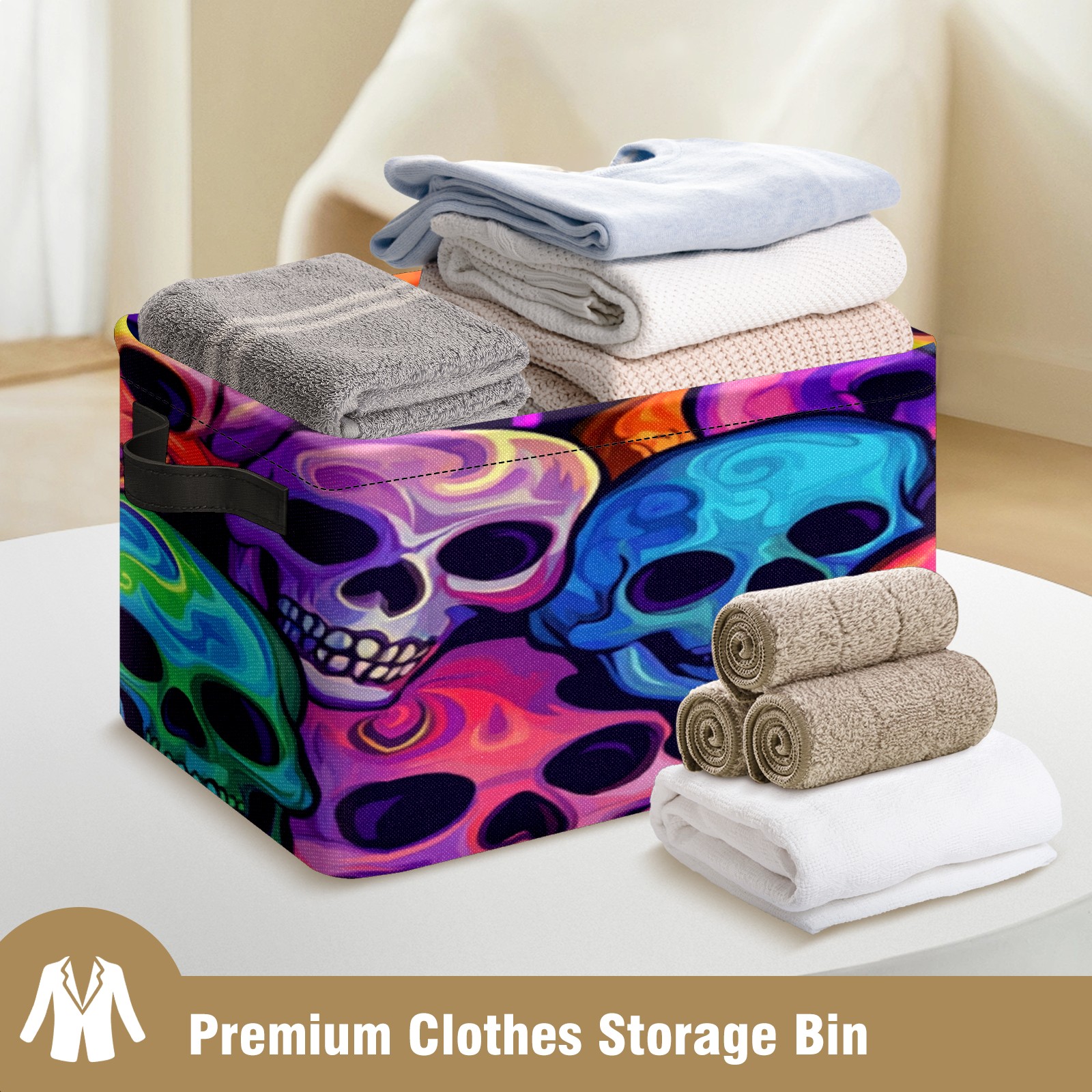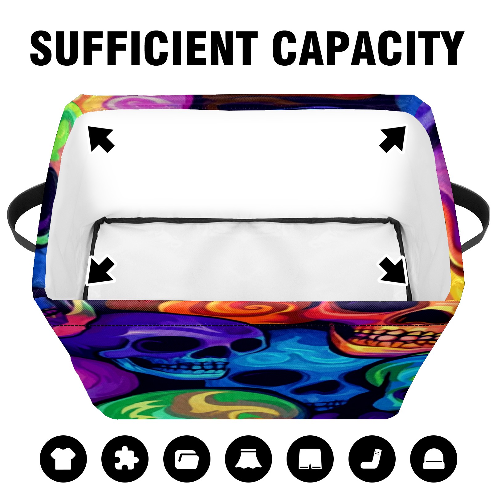 Foldable and Stackable Fabric Storage Basket for Home Organization with Handles, Decorative Closet Bins for Shelves, Laundry, and Toy Storage( Colorful Skulls)