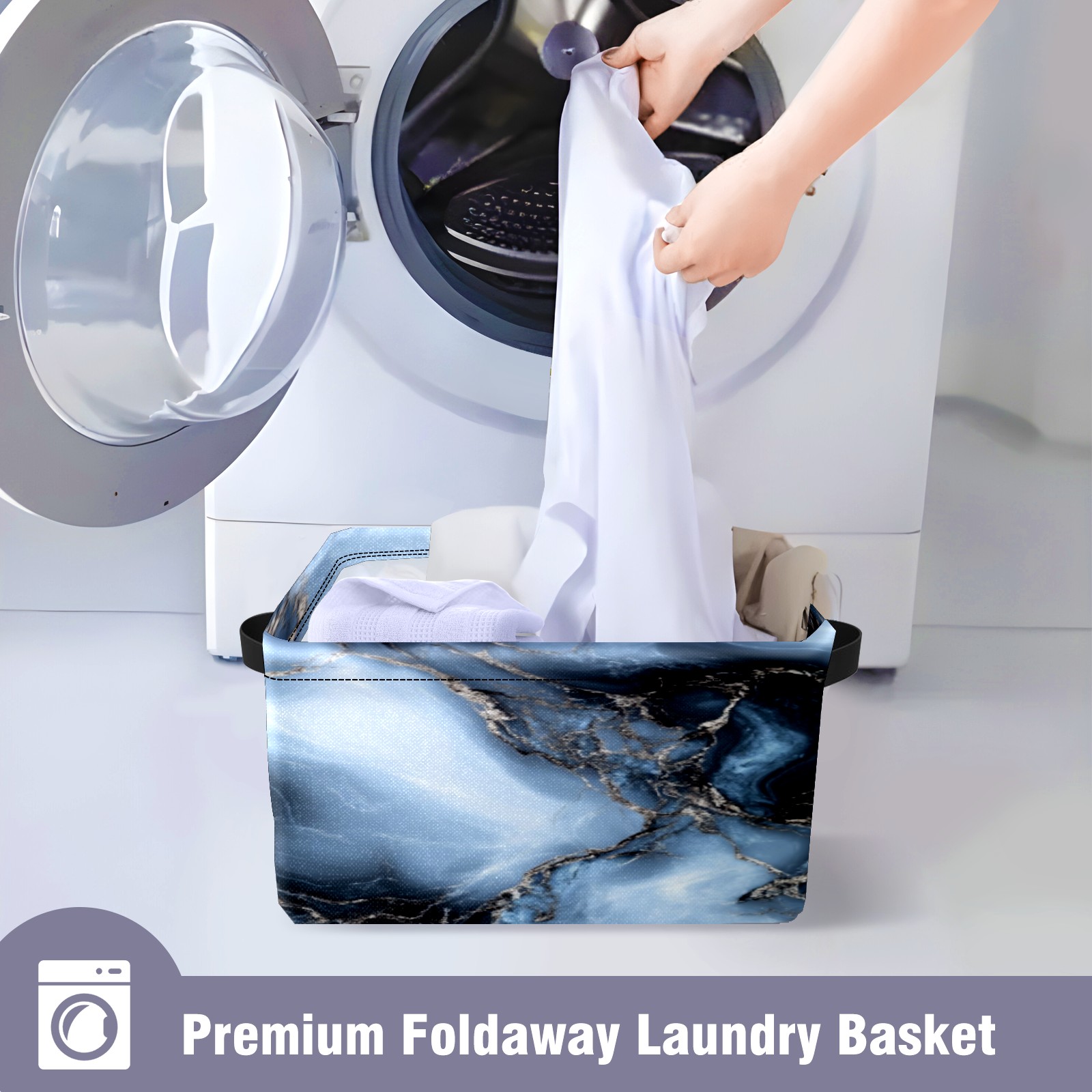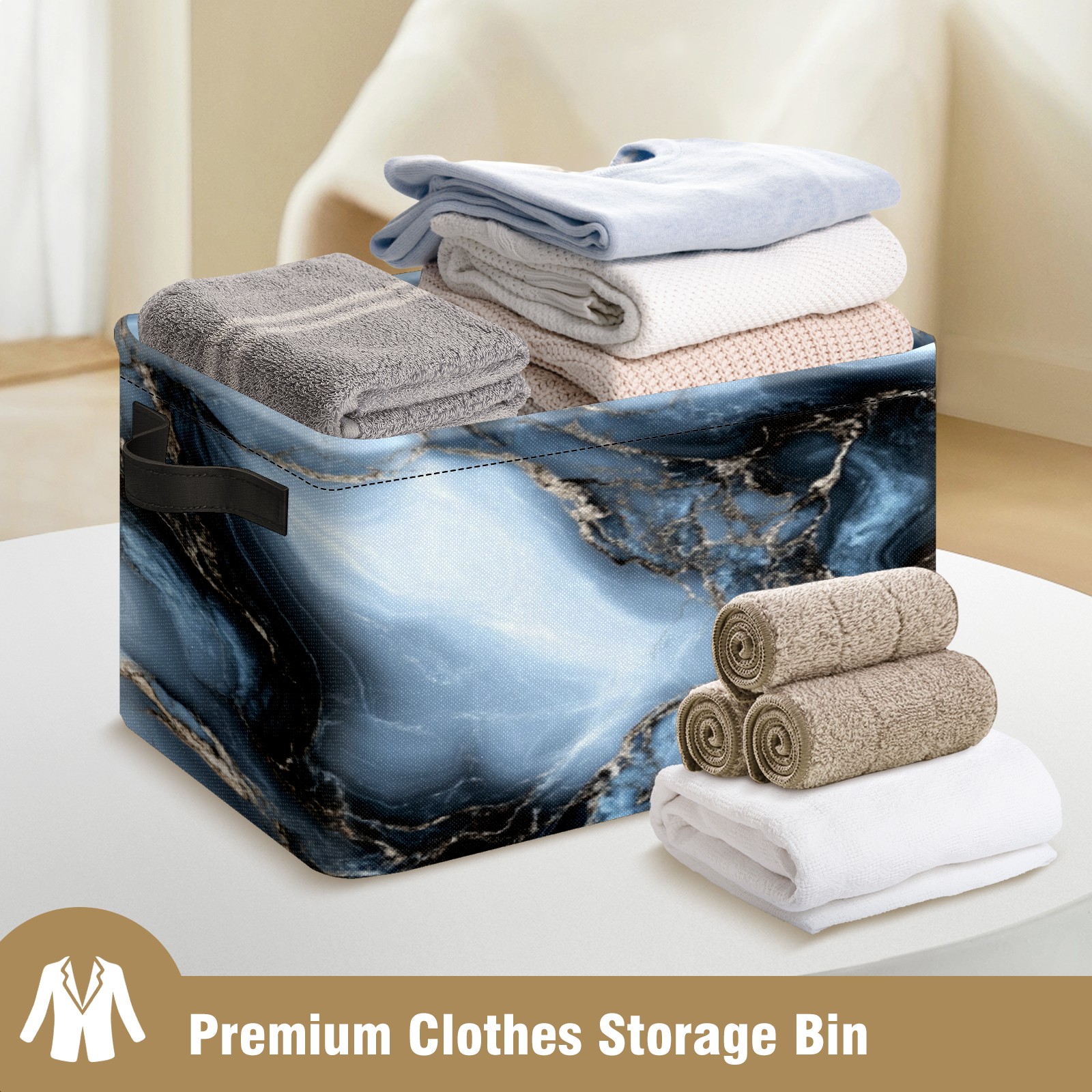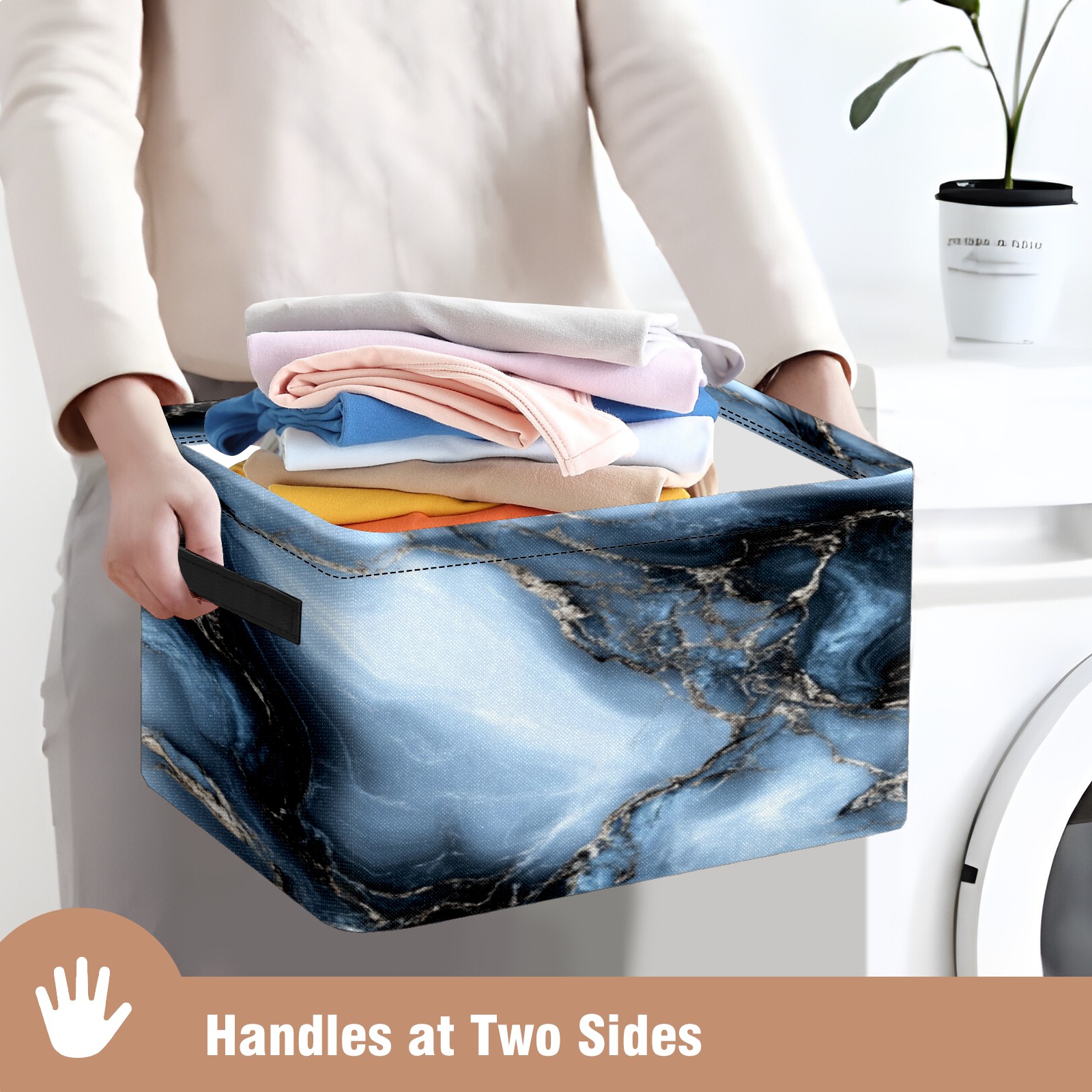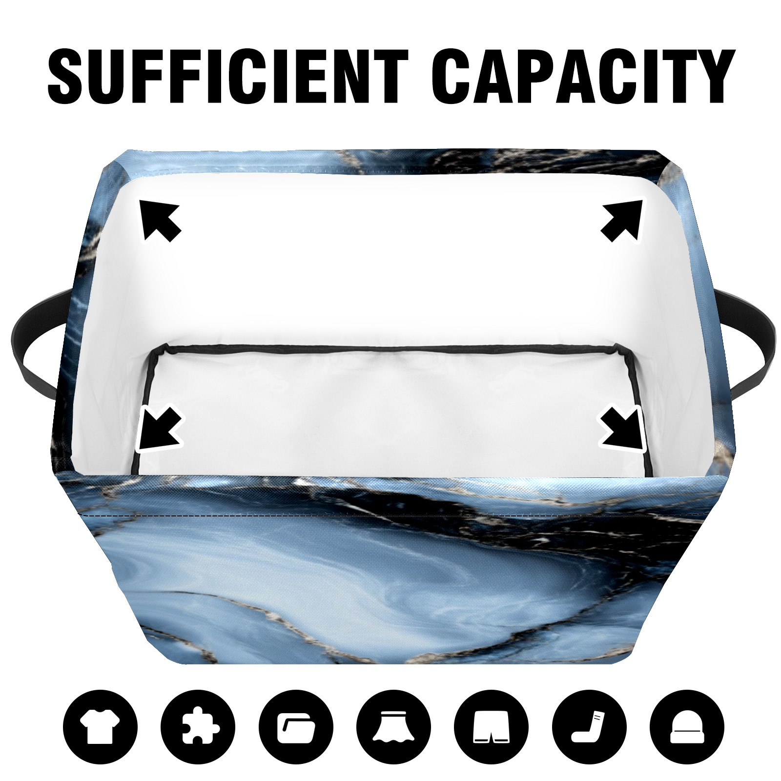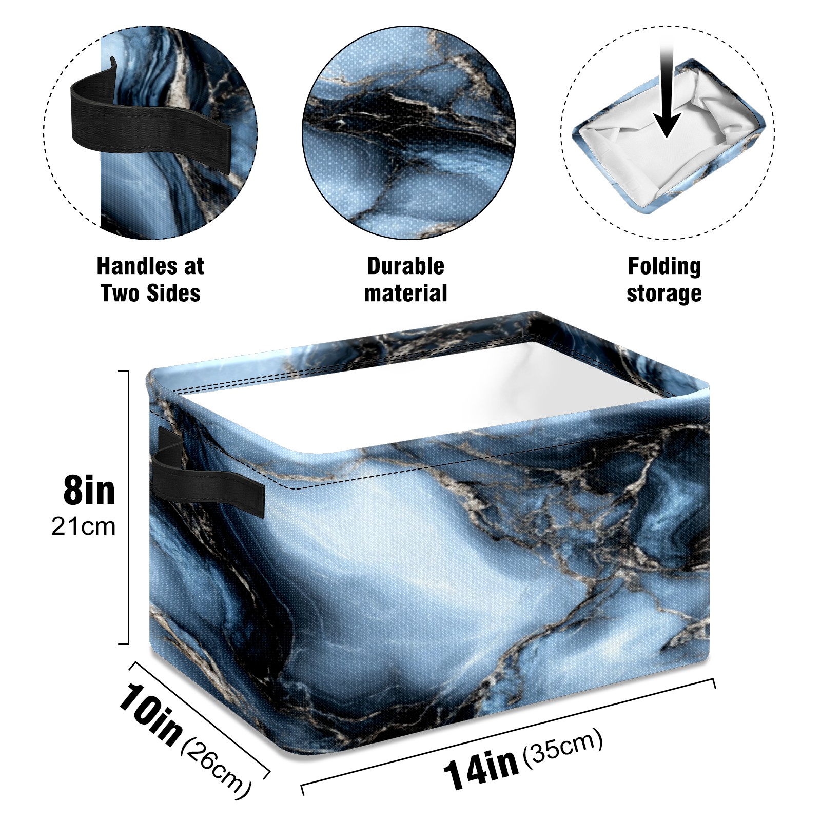 Foldable and Stackable Fabric Storage Basket for Home Organization with Handles, Decorative Closet Bins for Shelves, Laundry, and Toy Storage( Dark Gray Marble)