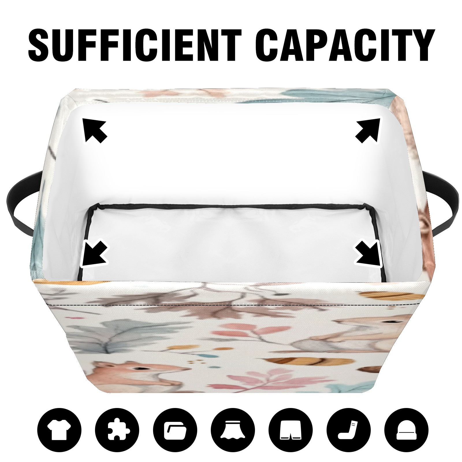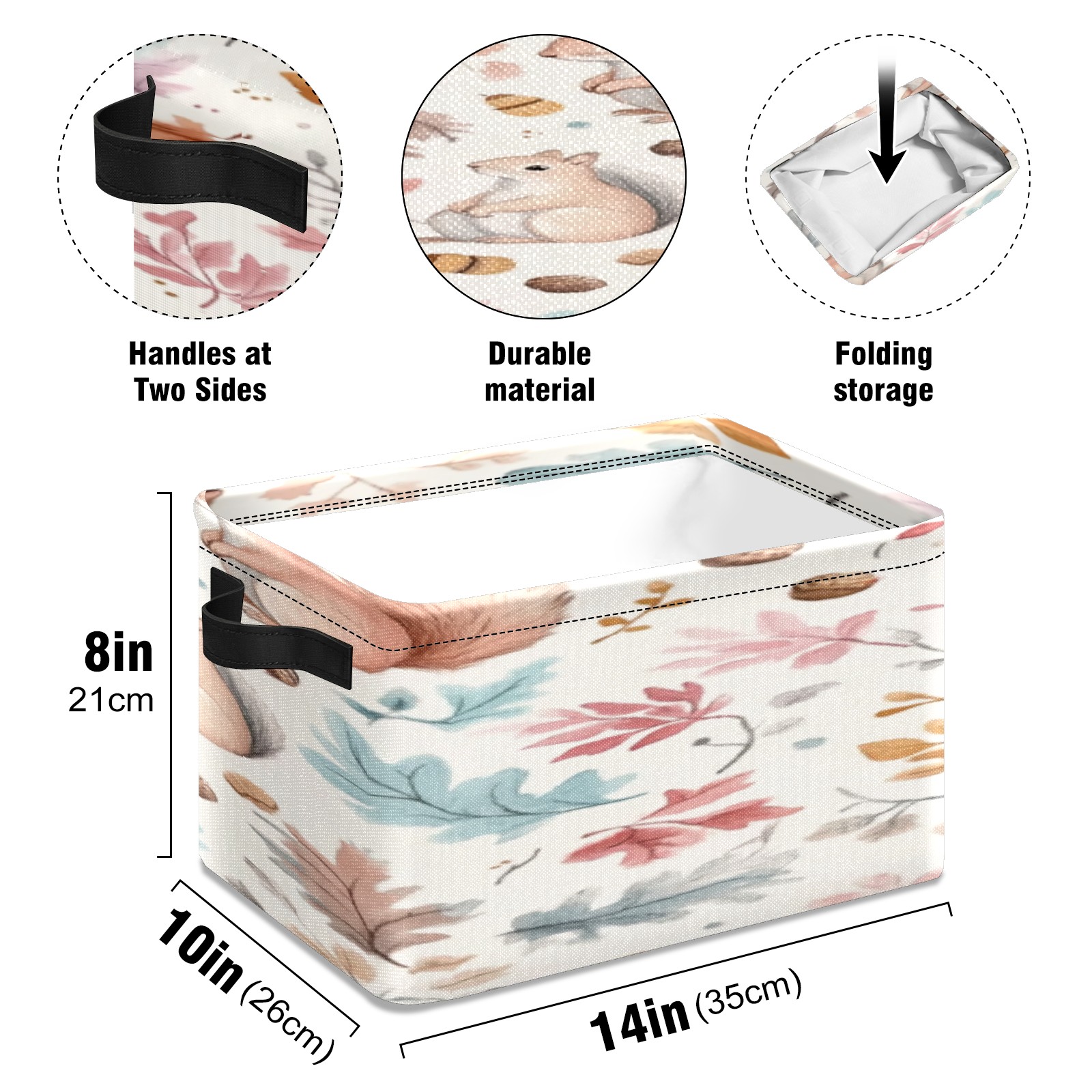 Foldable and Stackable Fabric Storage Basket for Home Organization with Handles, Decorative Closet Bins for Shelves, Laundry, and Toy Storage( Watercolor Squirrels)