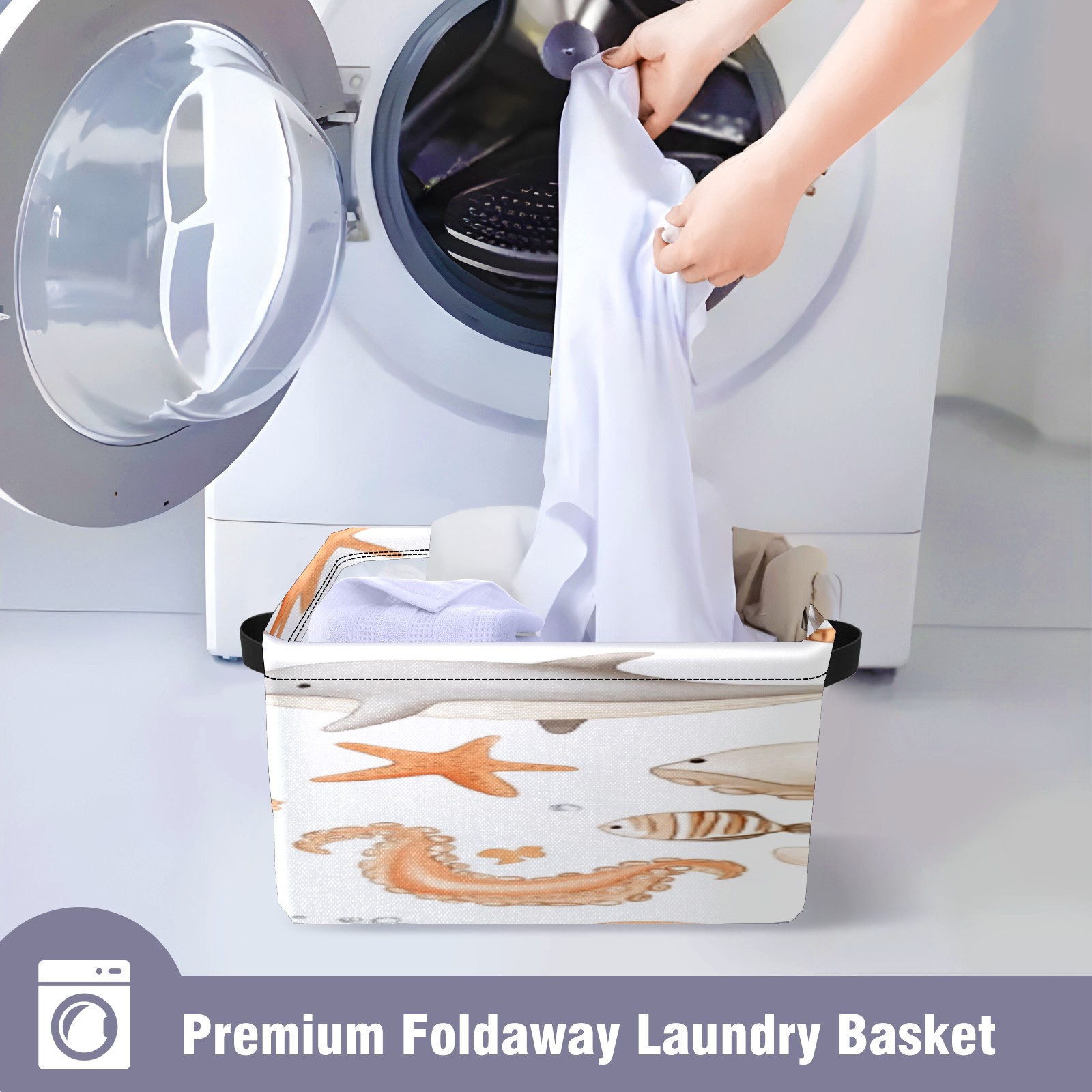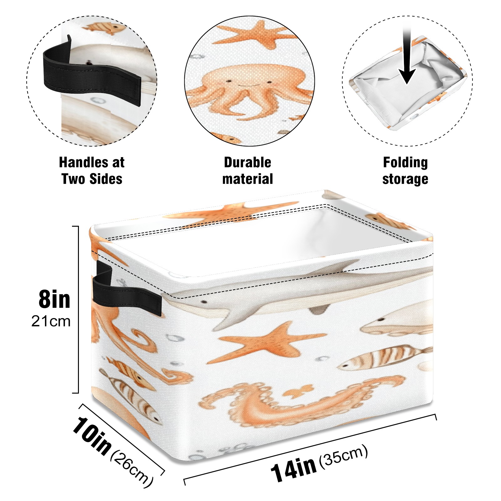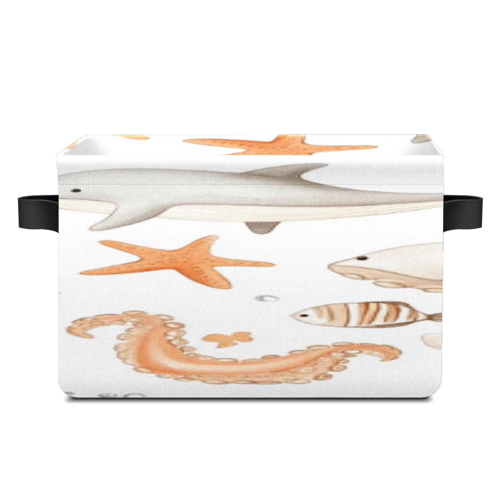 Foldable and Stackable Fabric Storage Basket for Home Organization with Handles, Decorative Closet Bins for Shelves, Laundry, and Toy Storage( Whale And Starfish)