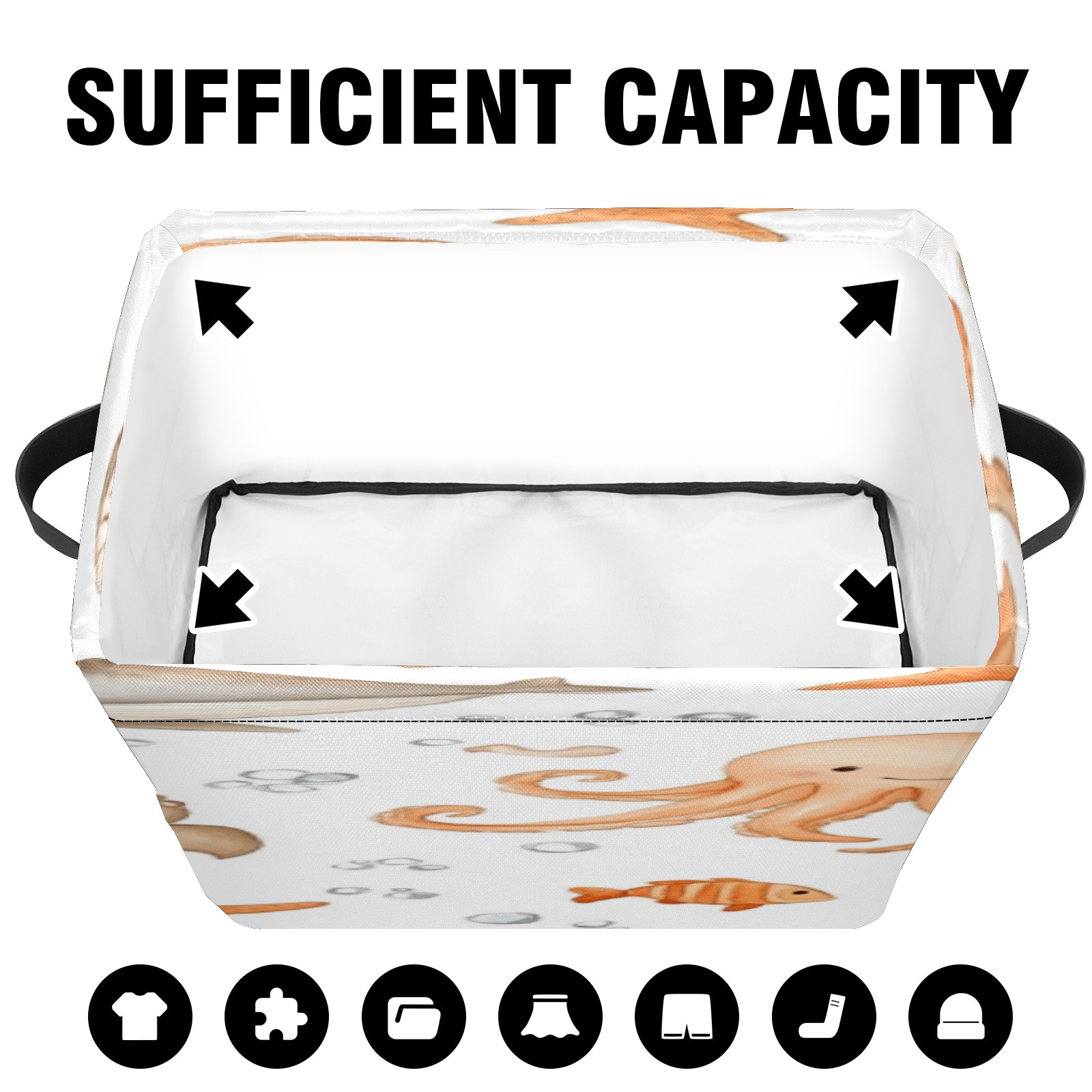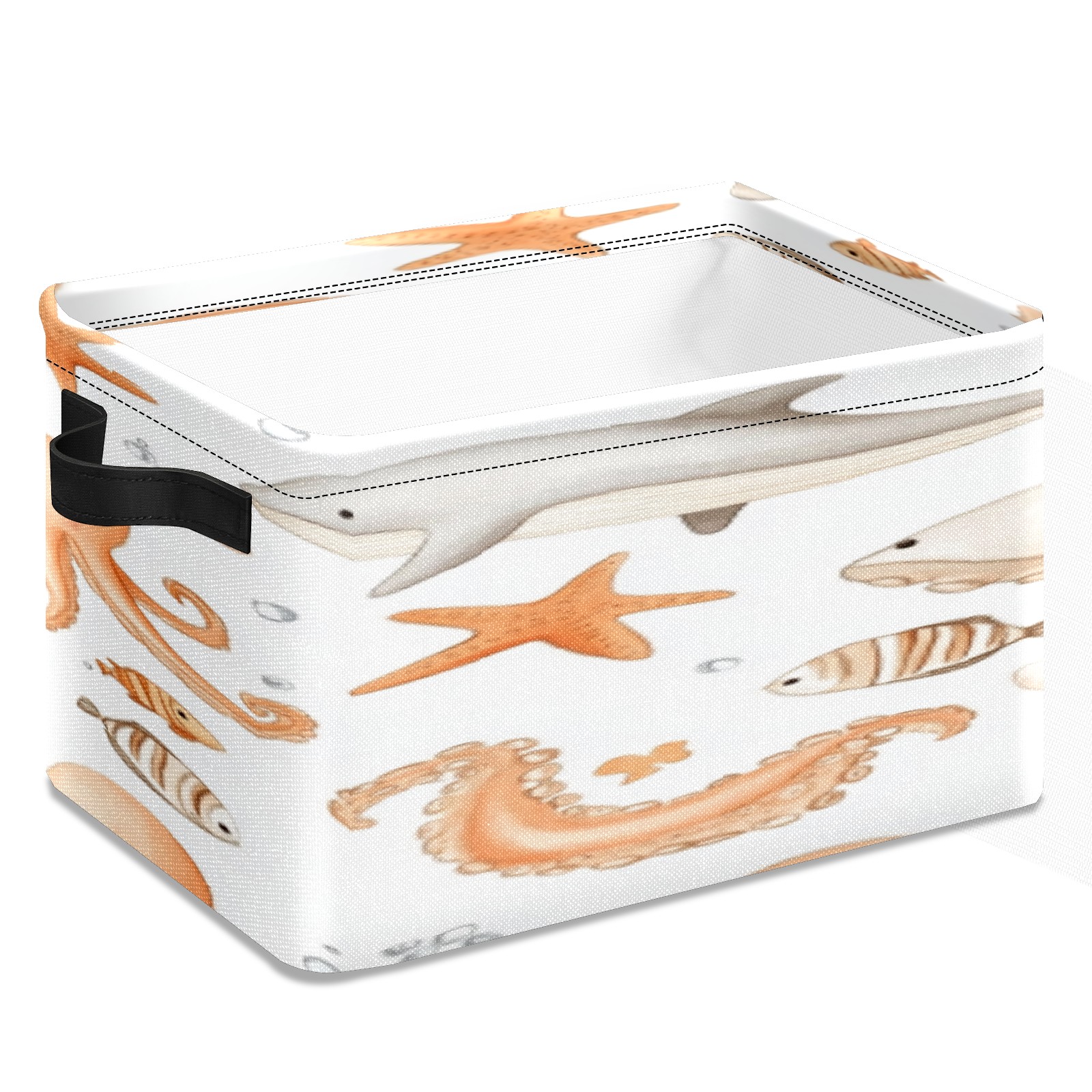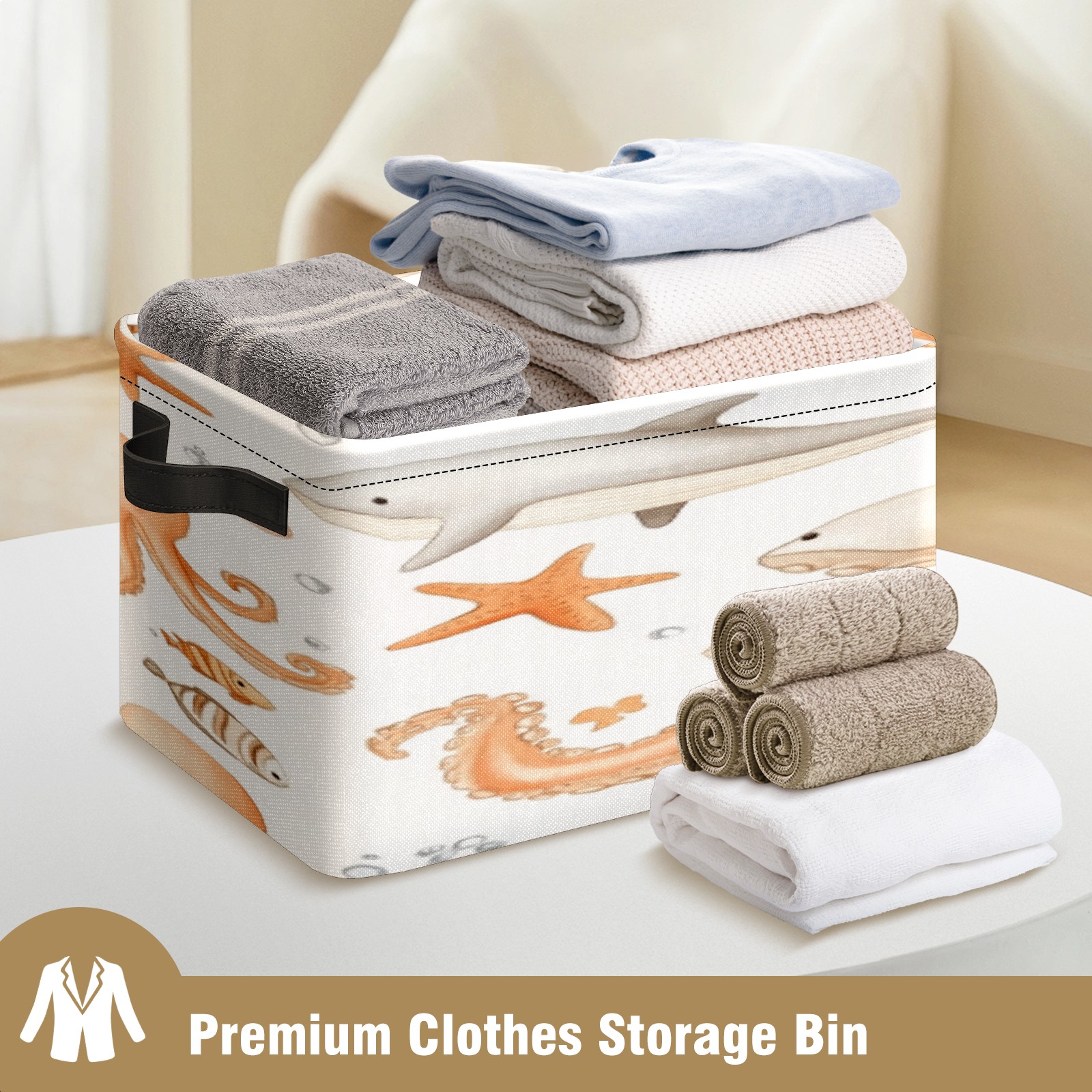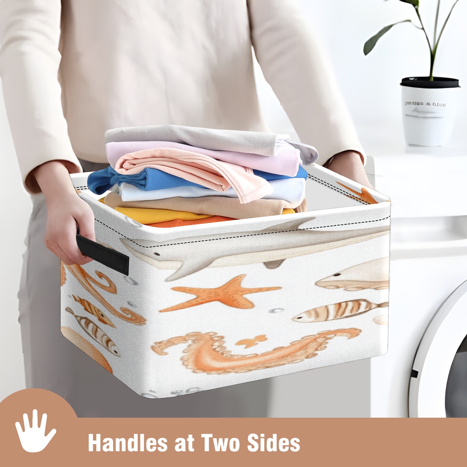 Foldable and Stackable Fabric Storage Basket for Home Organization with Handles, Decorative Closet Bins for Shelves, Laundry, and Toy Storage( Whale And Starfish)