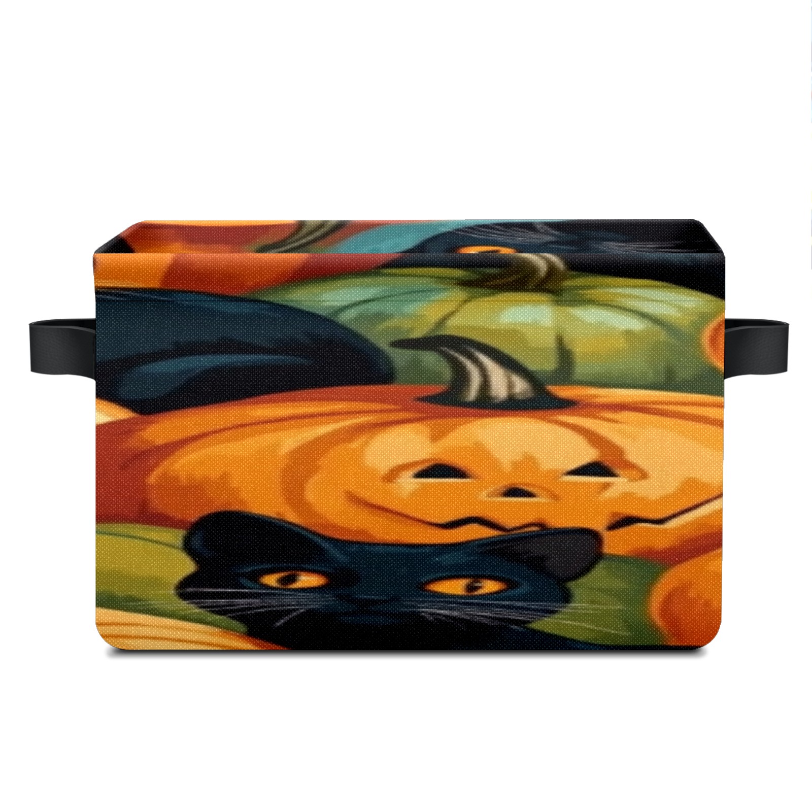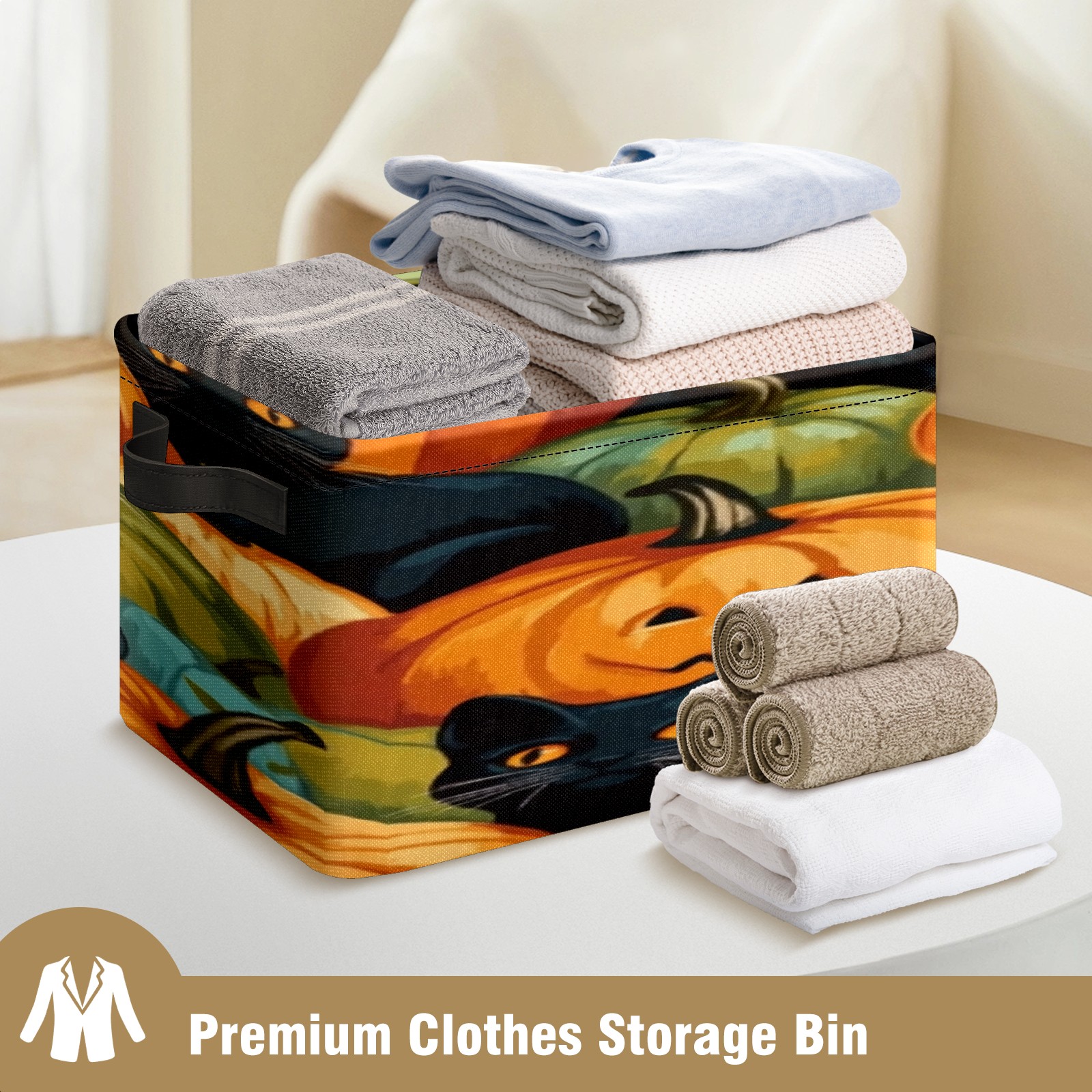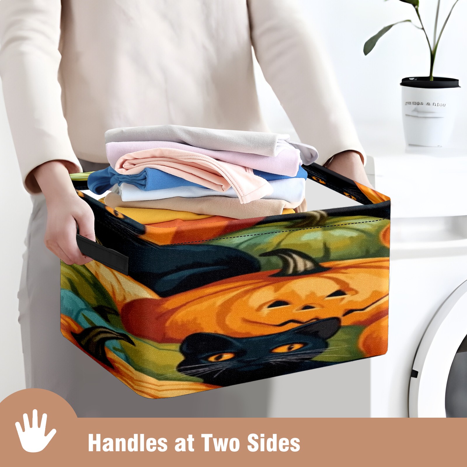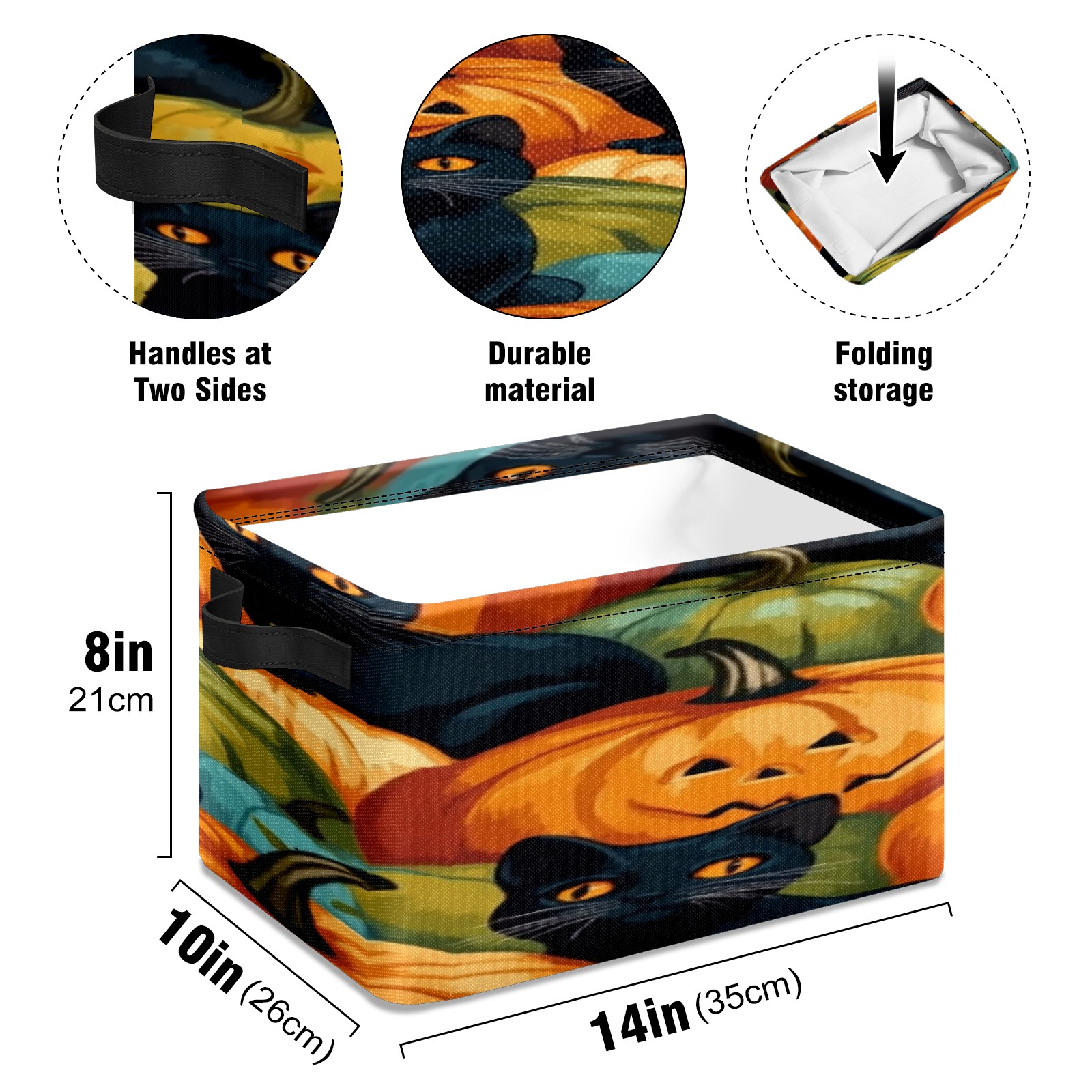 Foldable and Stackable Fabric Storage Basket for Home Organization with Handles, Decorative Closet Bins for Shelves, Laundry, and Toy Storage( Pumpkins And Cats)
