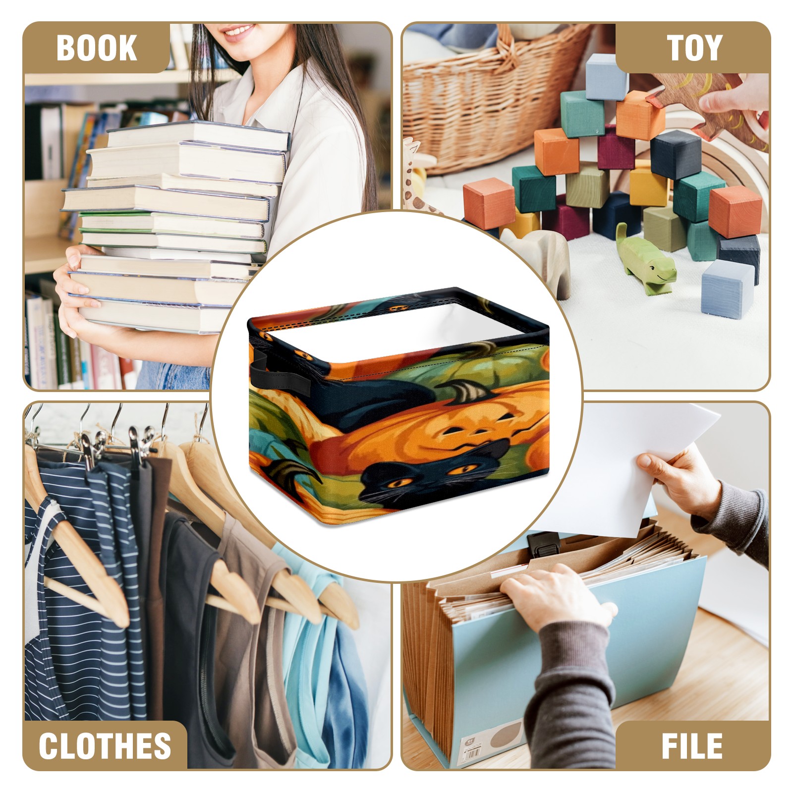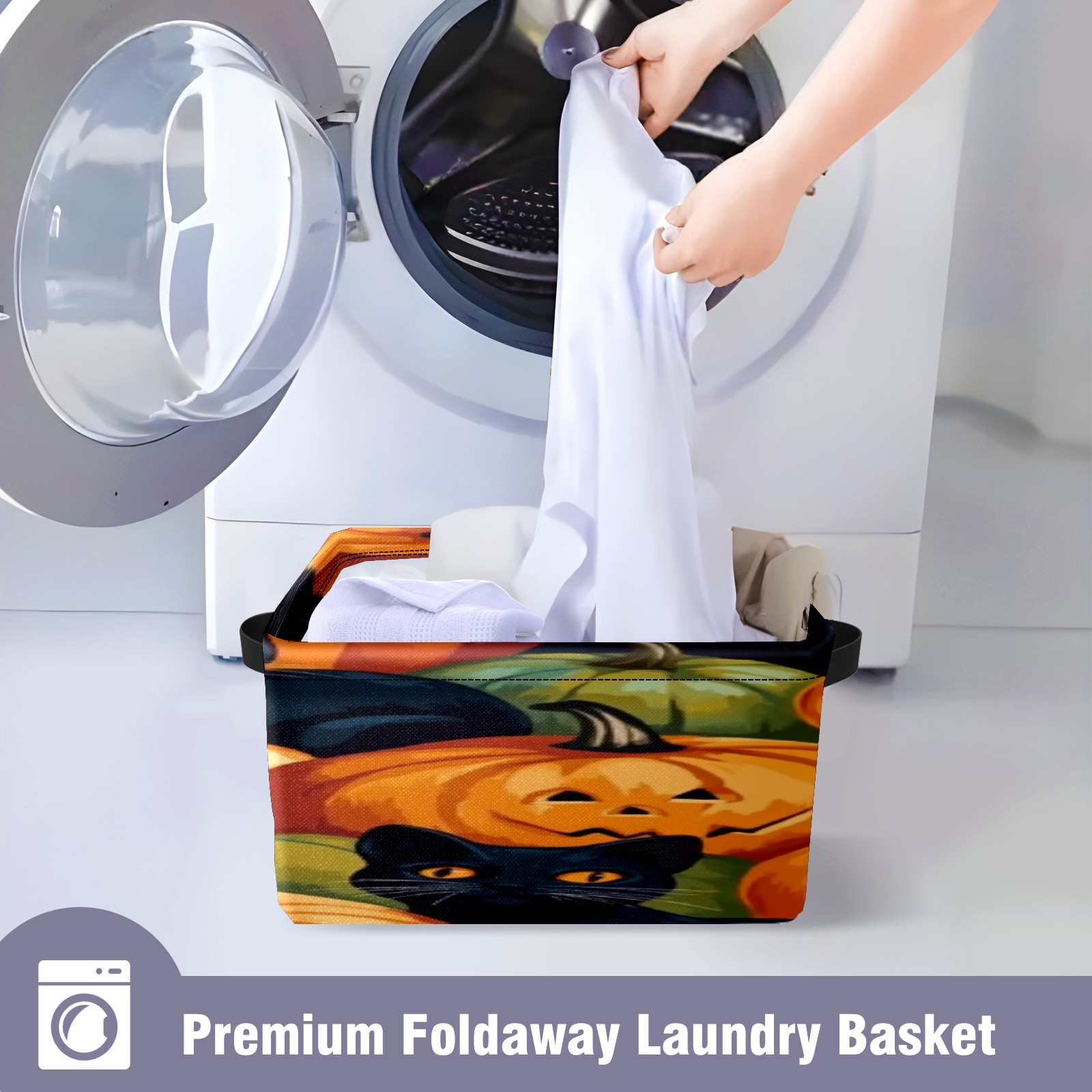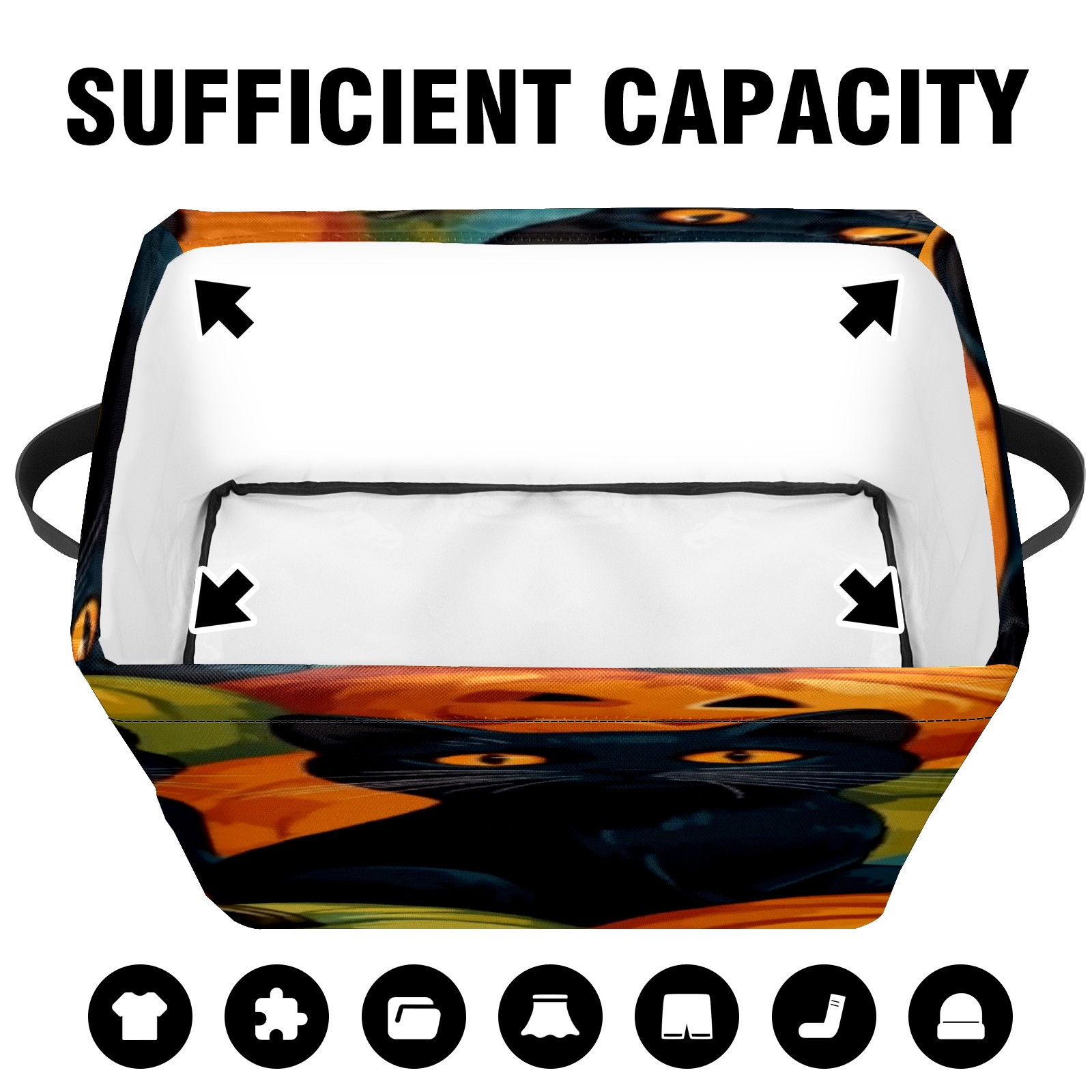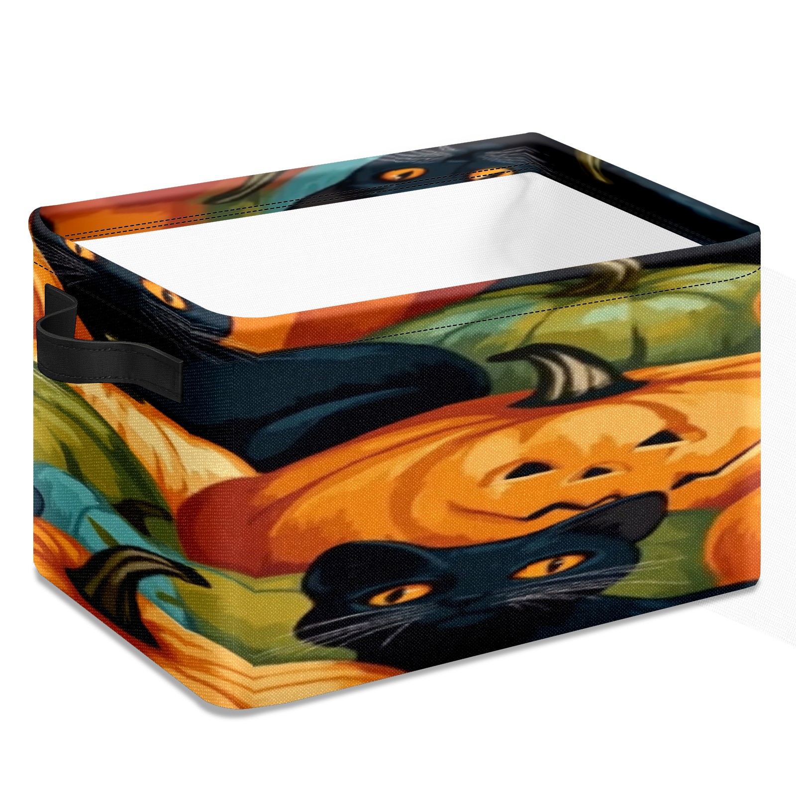 Foldable and Stackable Fabric Storage Basket for Home Organization with Handles, Decorative Closet Bins for Shelves, Laundry, and Toy Storage( Pumpkins And Cats)