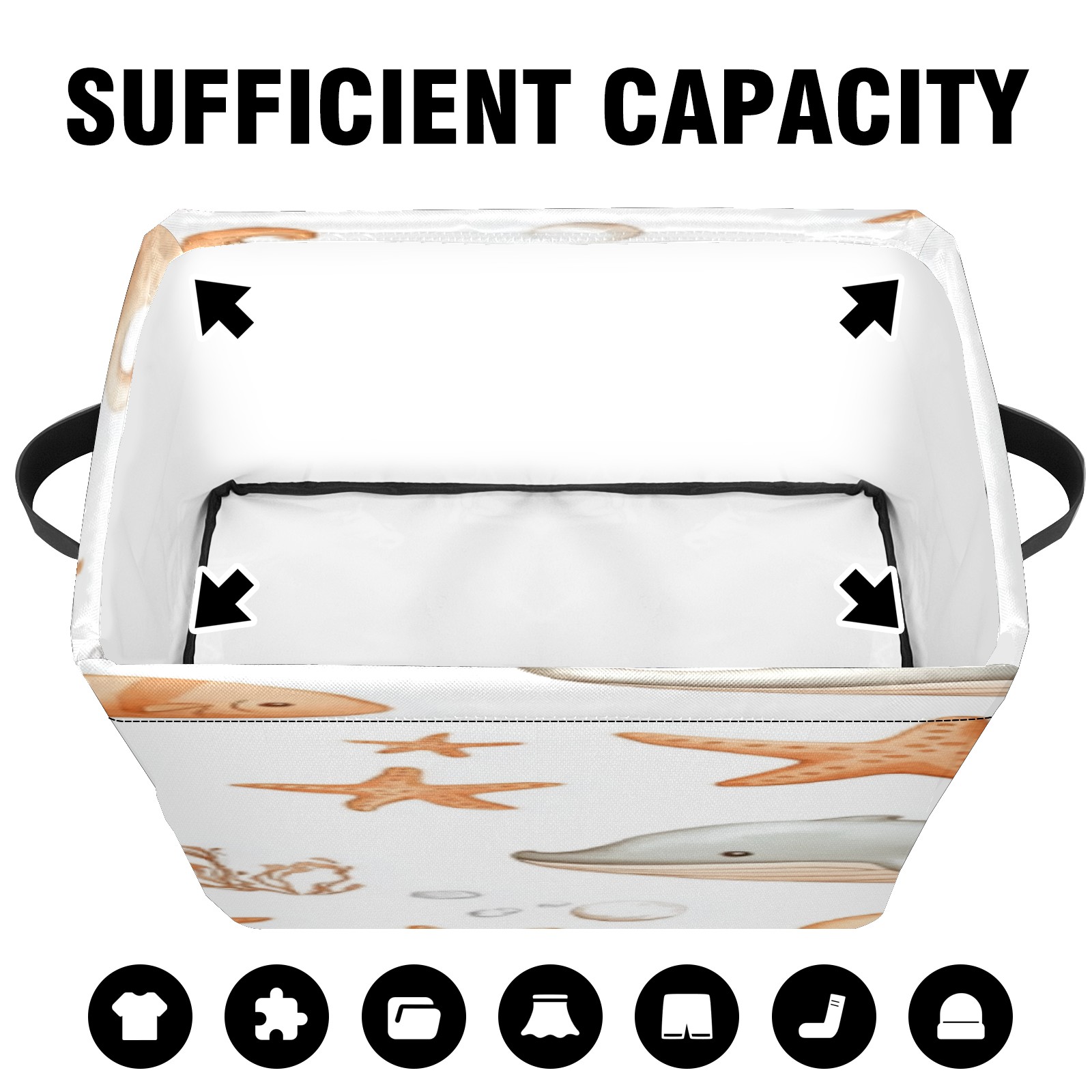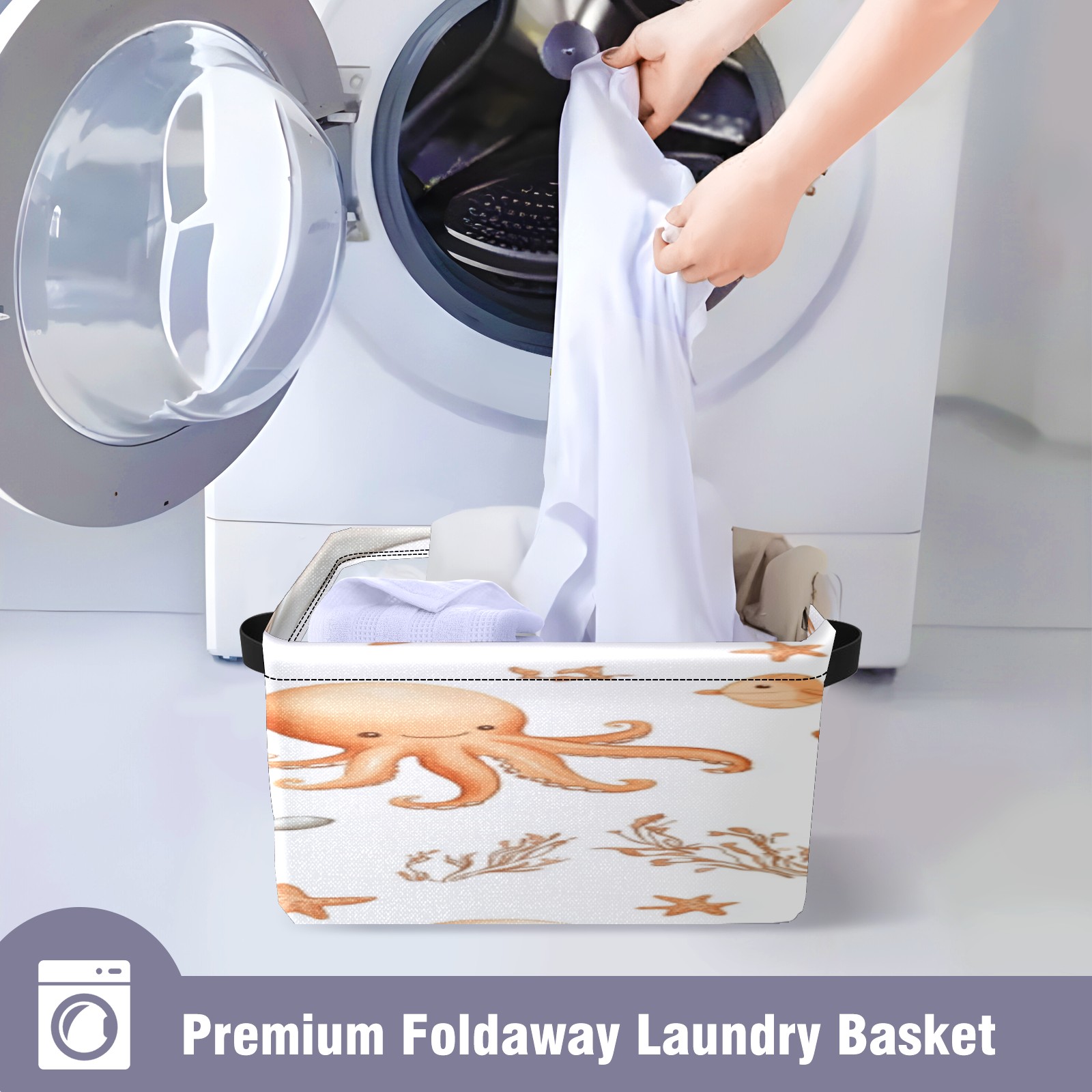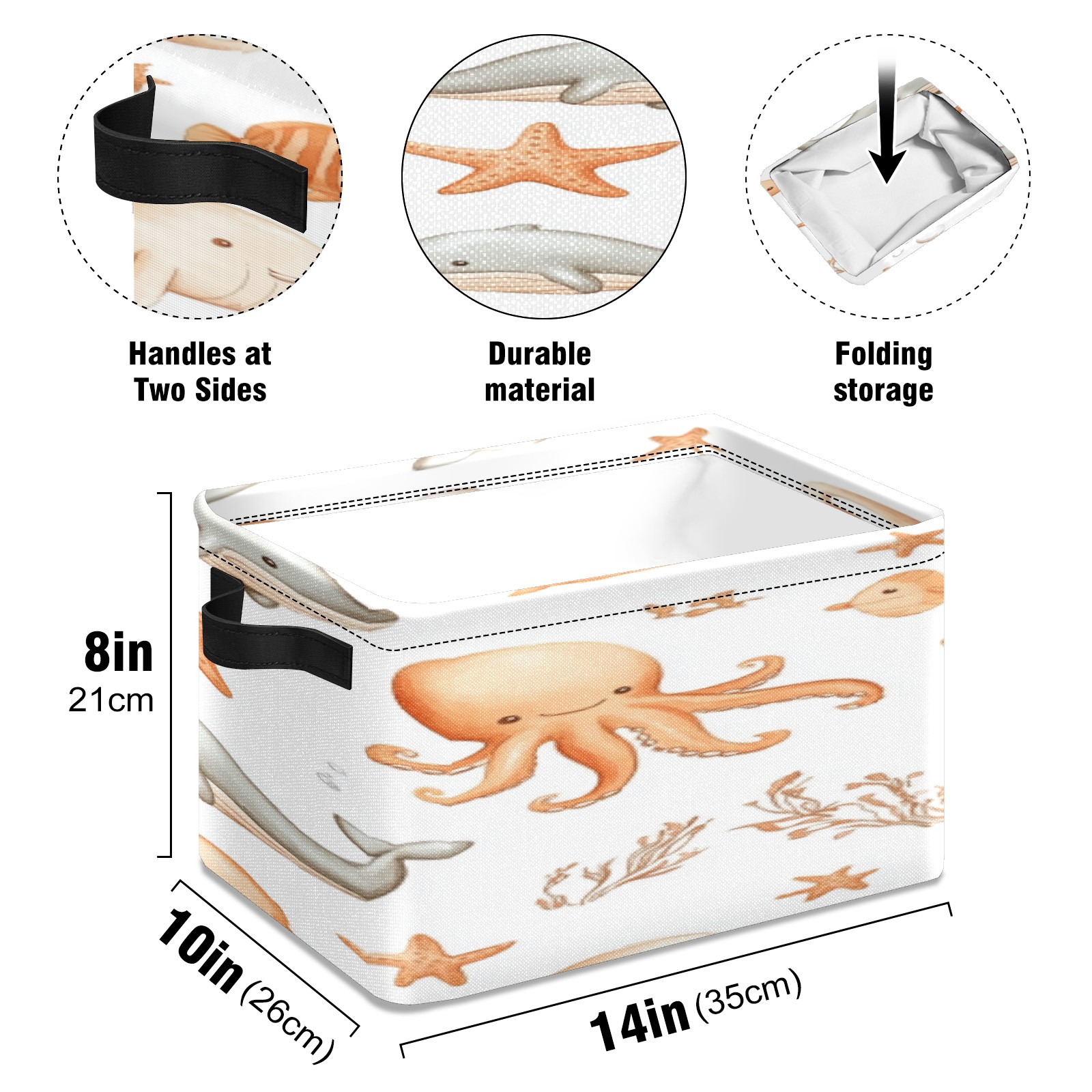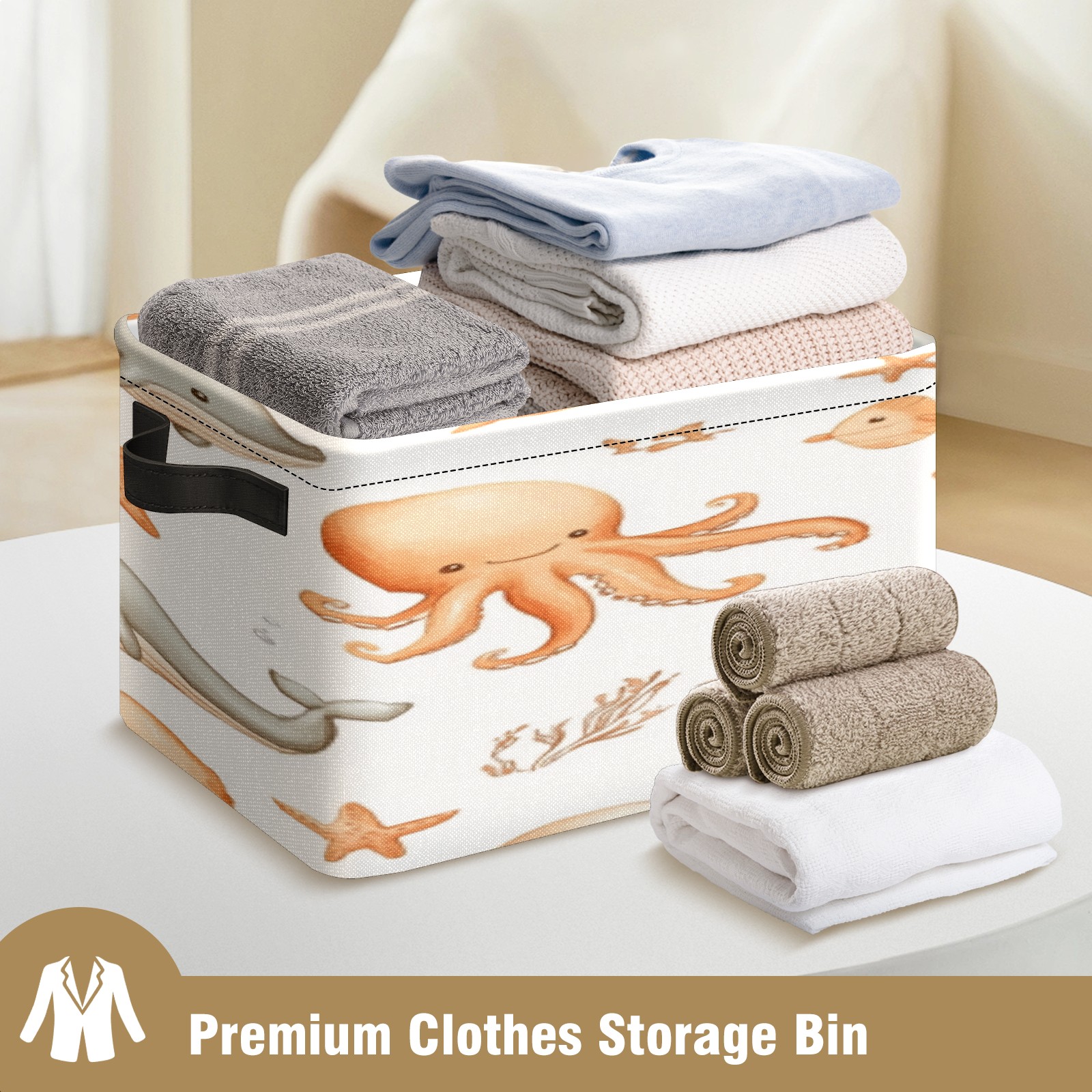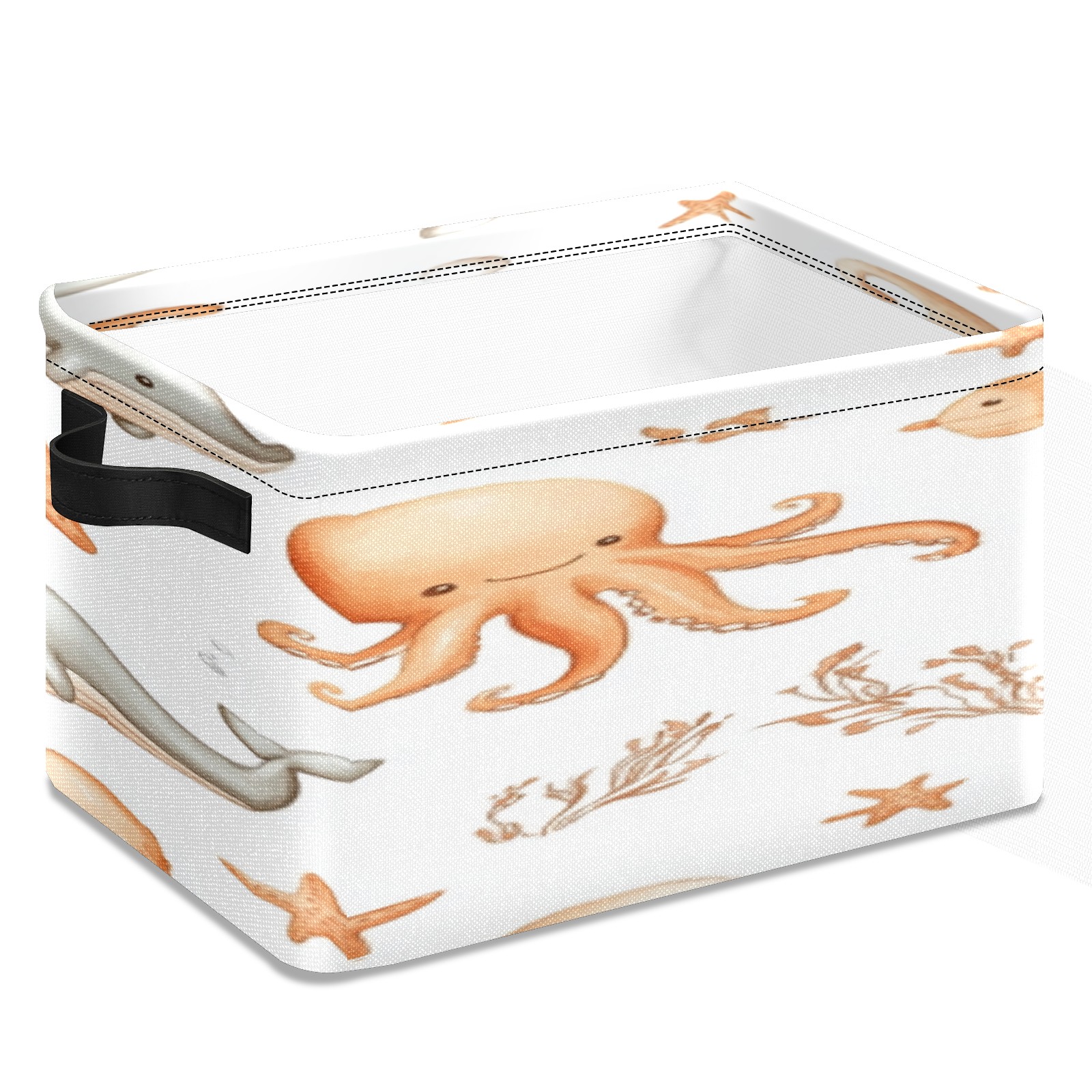 Foldable and Stackable Fabric Storage Basket for Home Organization with Handles, Decorative Closet Bins for Shelves, Laundry, and Toy Storage( Whale And Octopus)