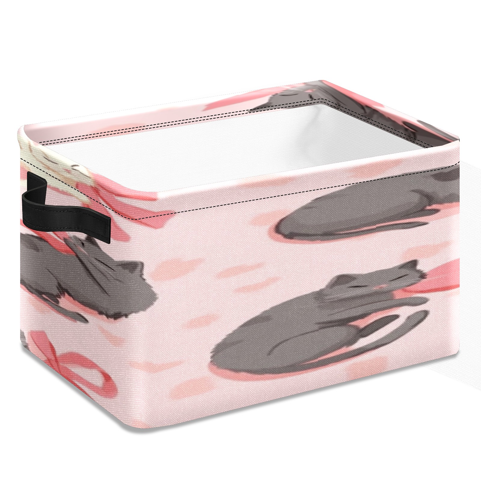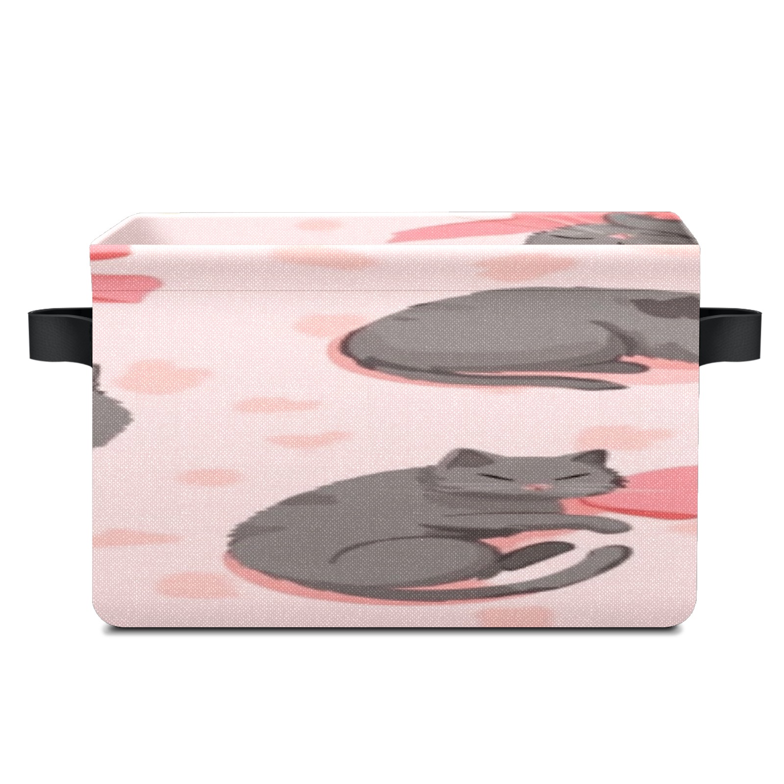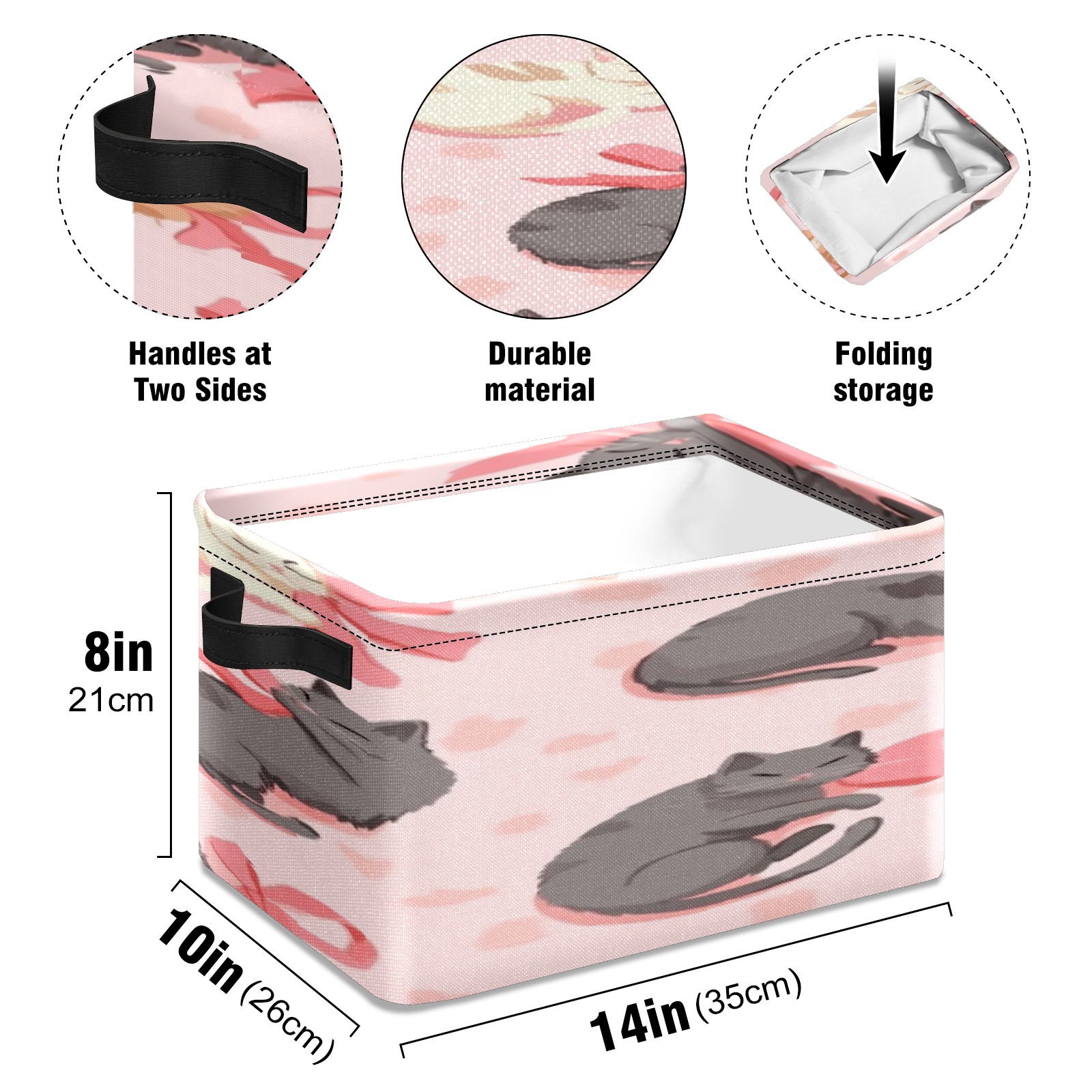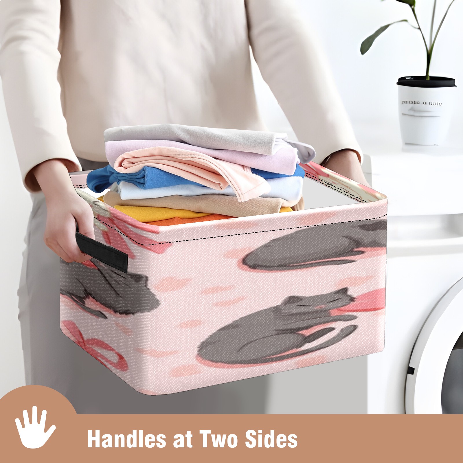 Foldable and Stackable Fabric Storage Basket for Home Organization with Handles, Decorative Closet Bins for Shelves, Laundry, and Toy Storage( Playful Cat)