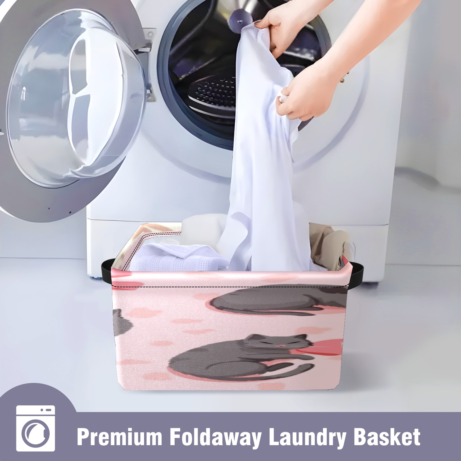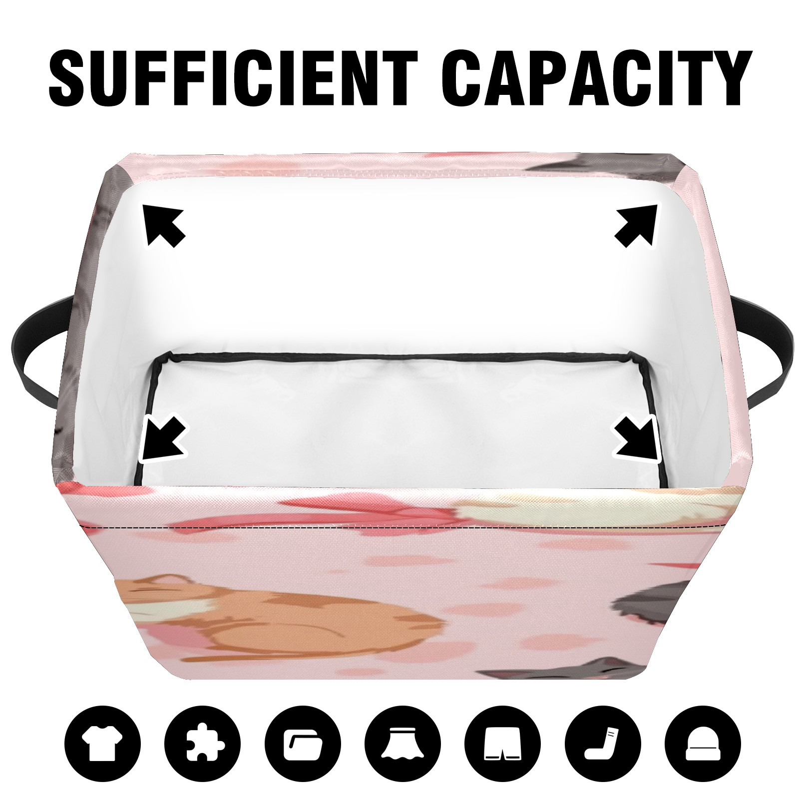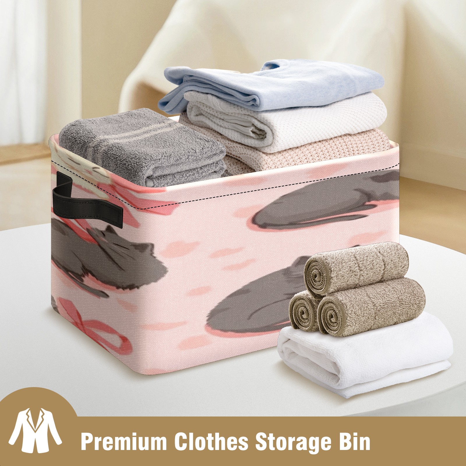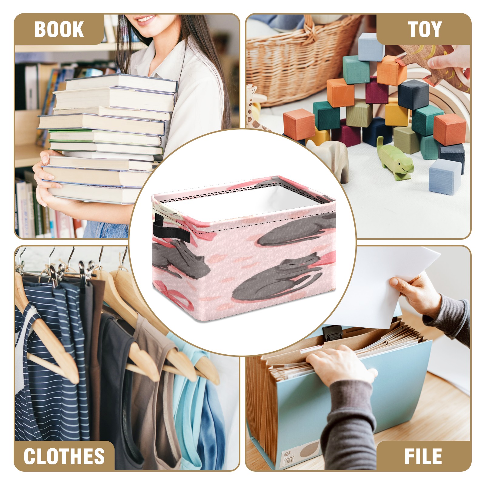Foldable and Stackable Fabric Storage Basket for Home Organization with Handles, Decorative Closet Bins for Shelves, Laundry, and Toy Storage( Playful Cat)