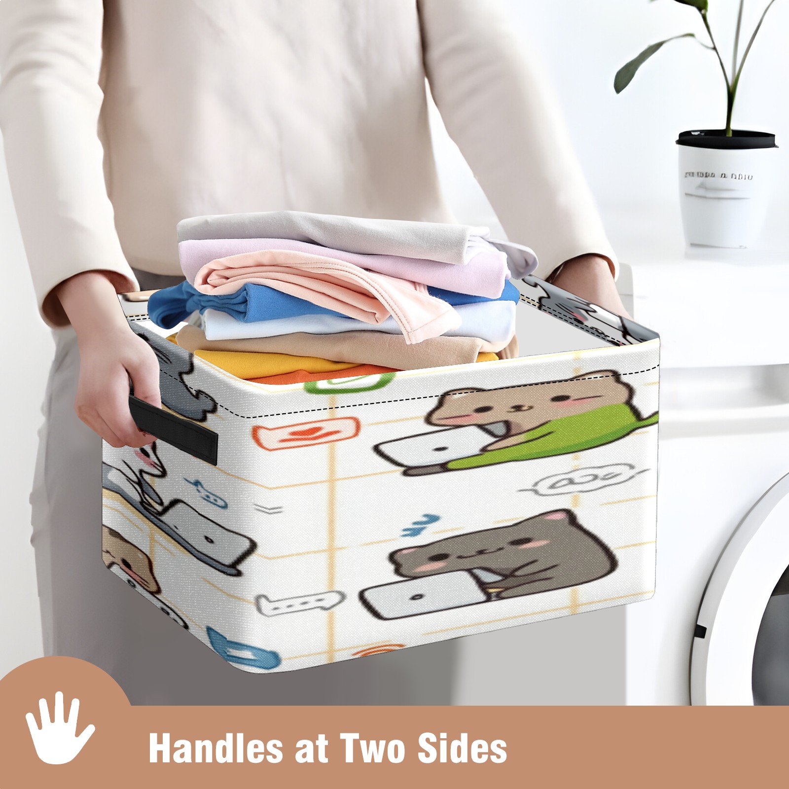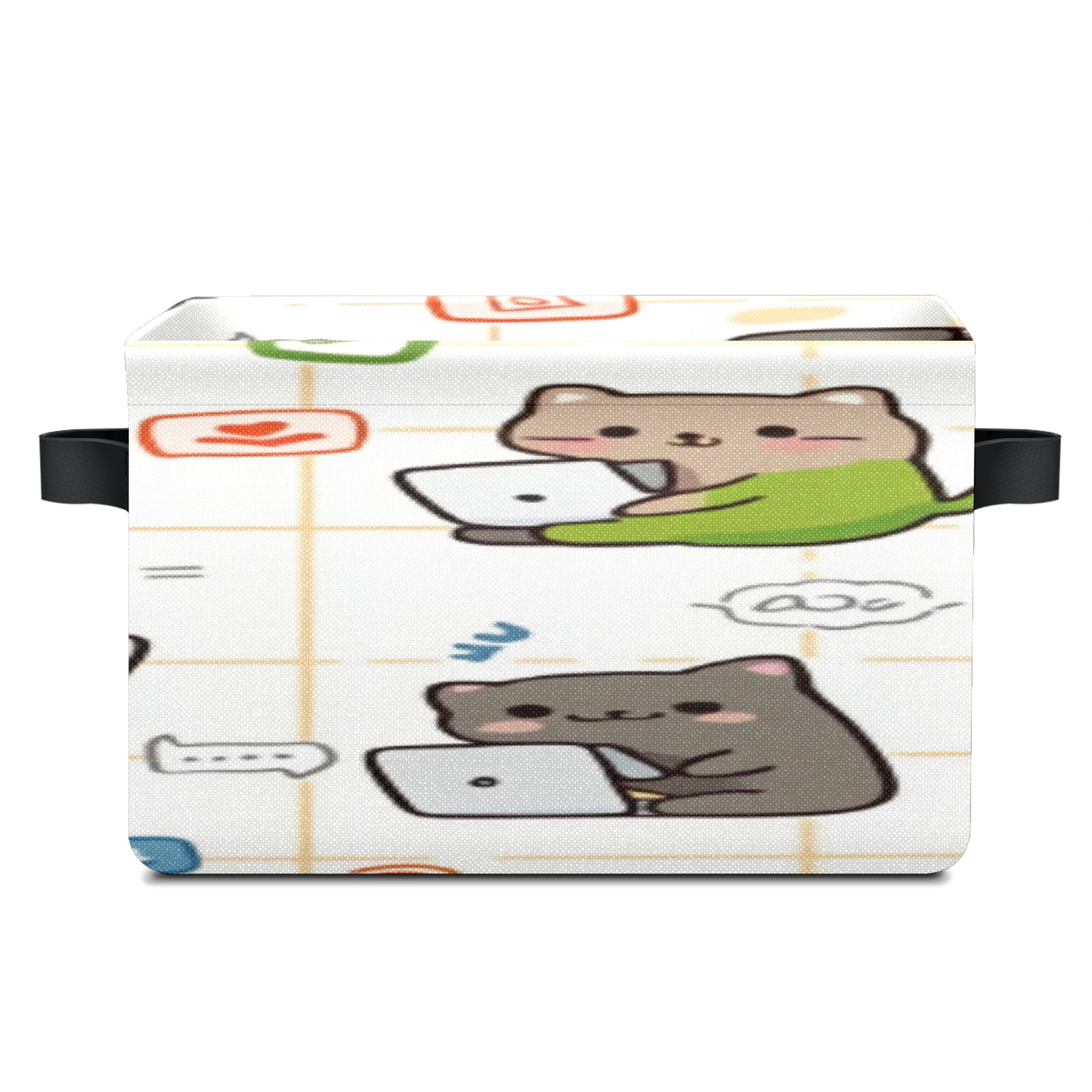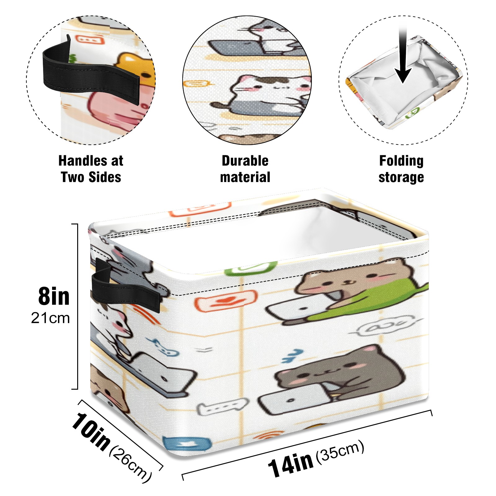 Foldable and Stackable Fabric Storage Basket for Home Organization with Handles, Decorative Closet Bins for Shelves, Laundry, and Toy Storage( Cats Working On Laptops)