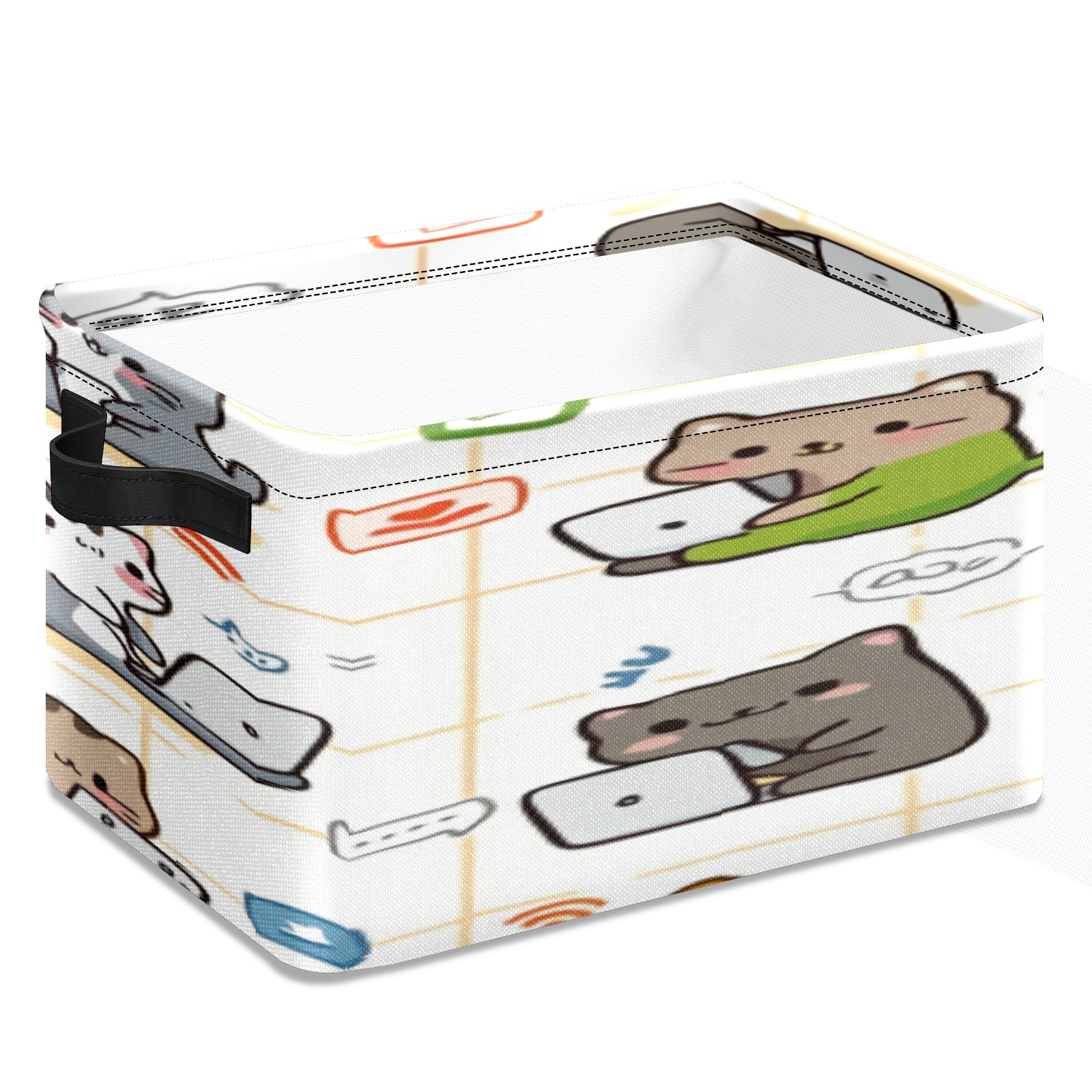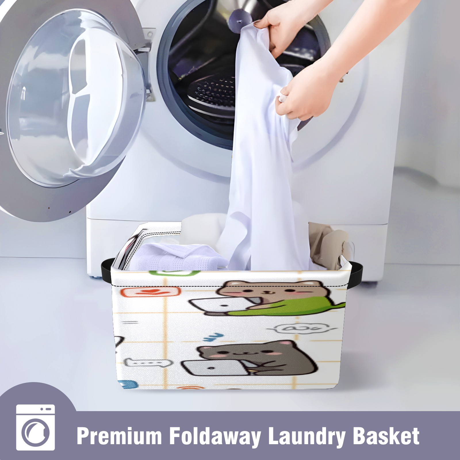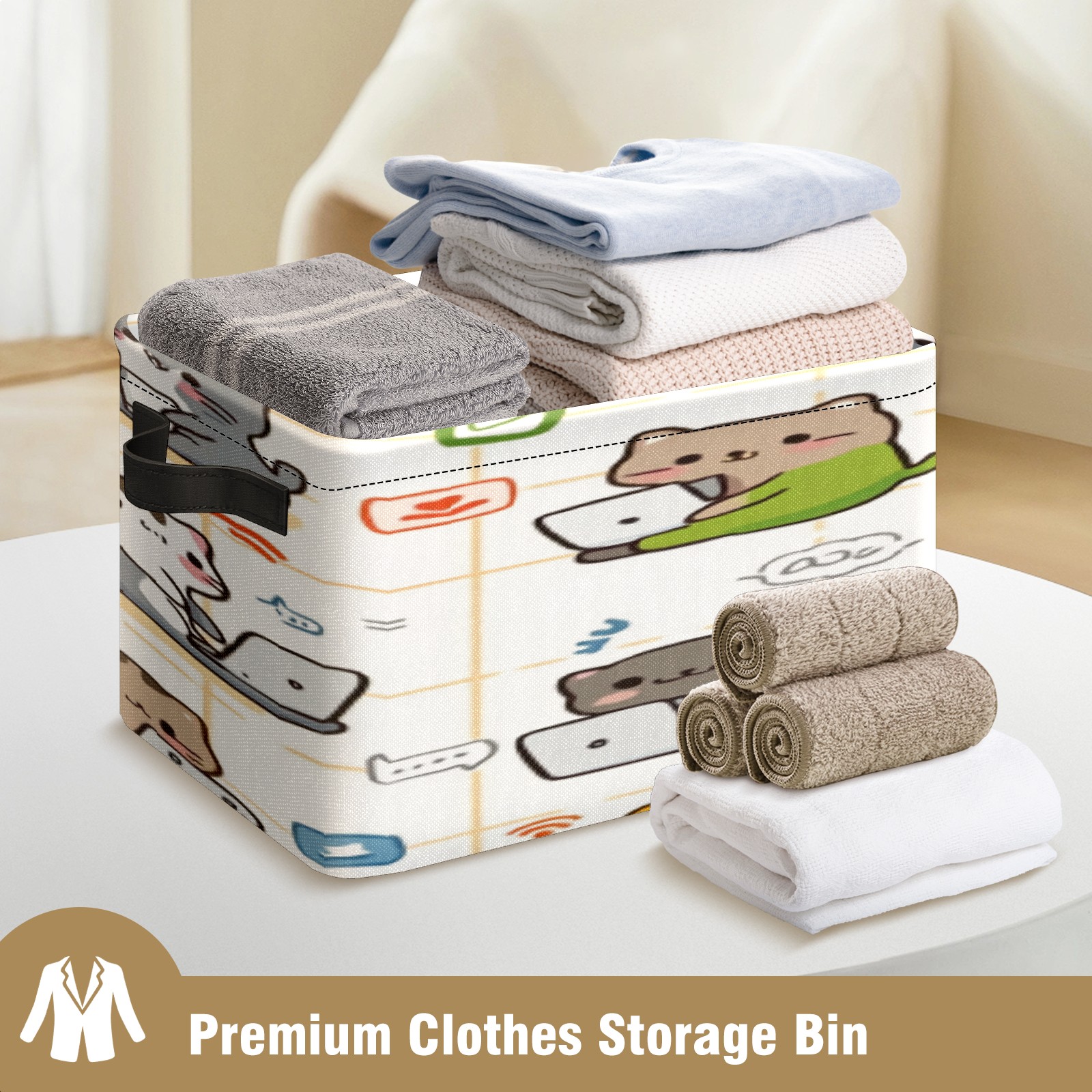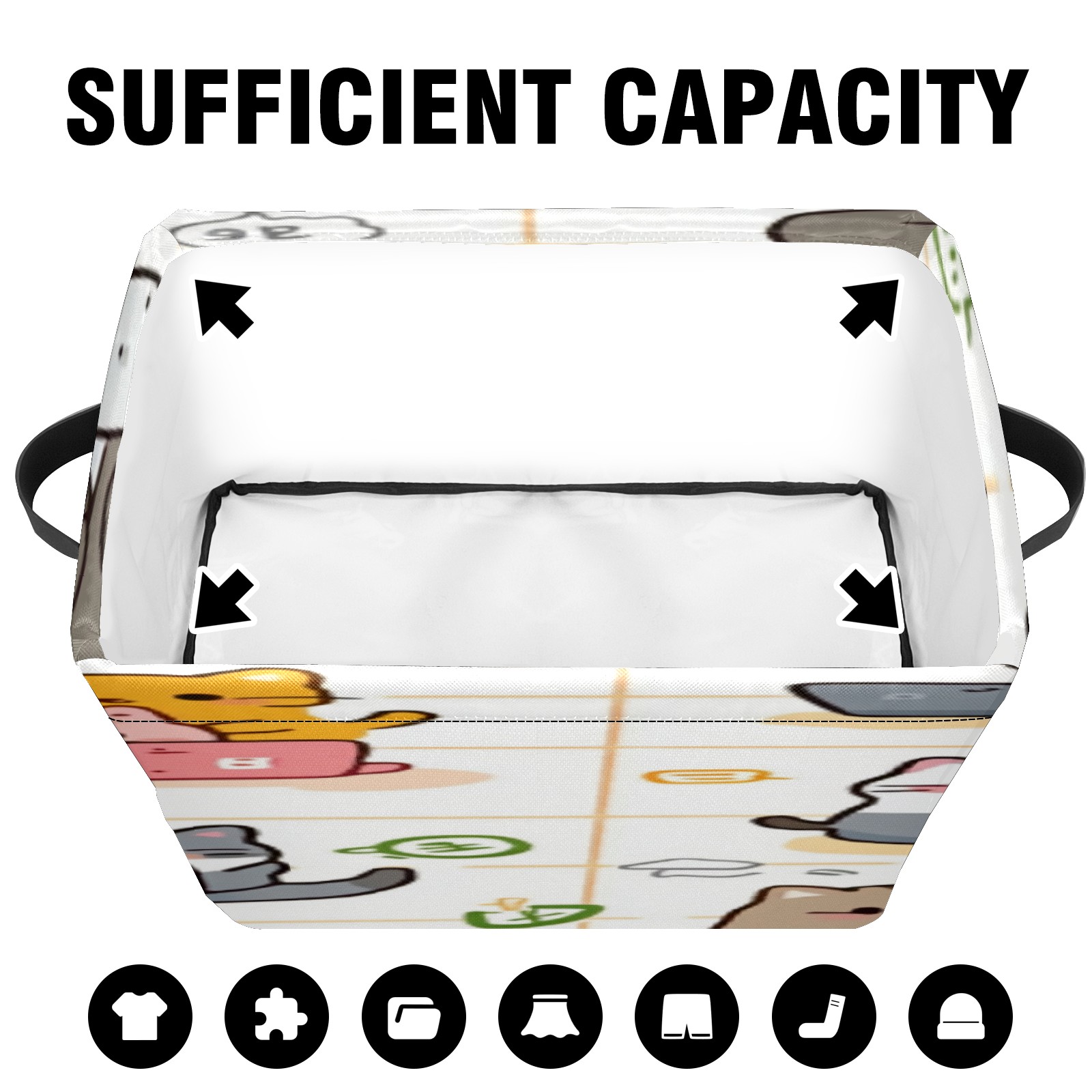 Foldable and Stackable Fabric Storage Basket for Home Organization with Handles, Decorative Closet Bins for Shelves, Laundry, and Toy Storage( Cats Working On Laptops)