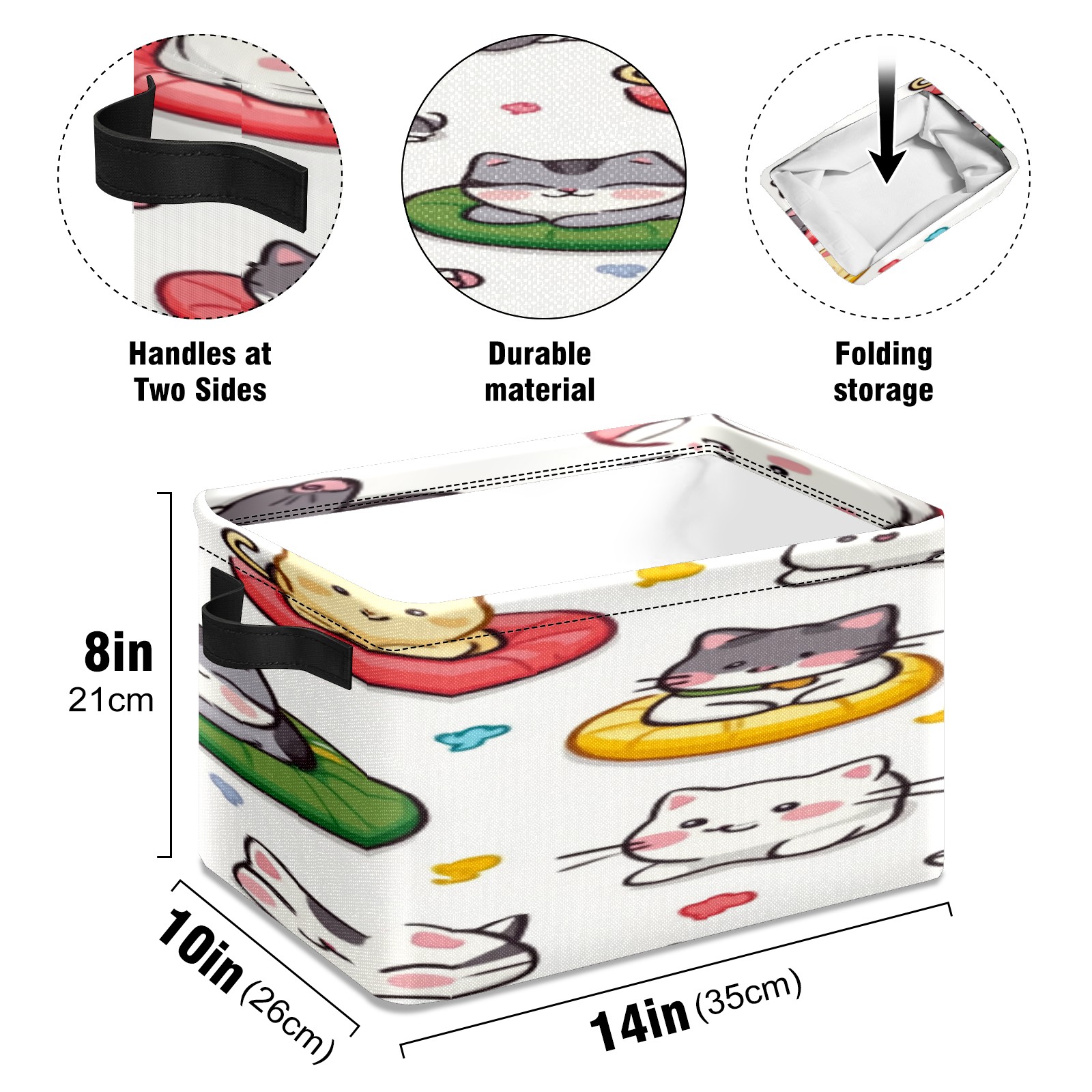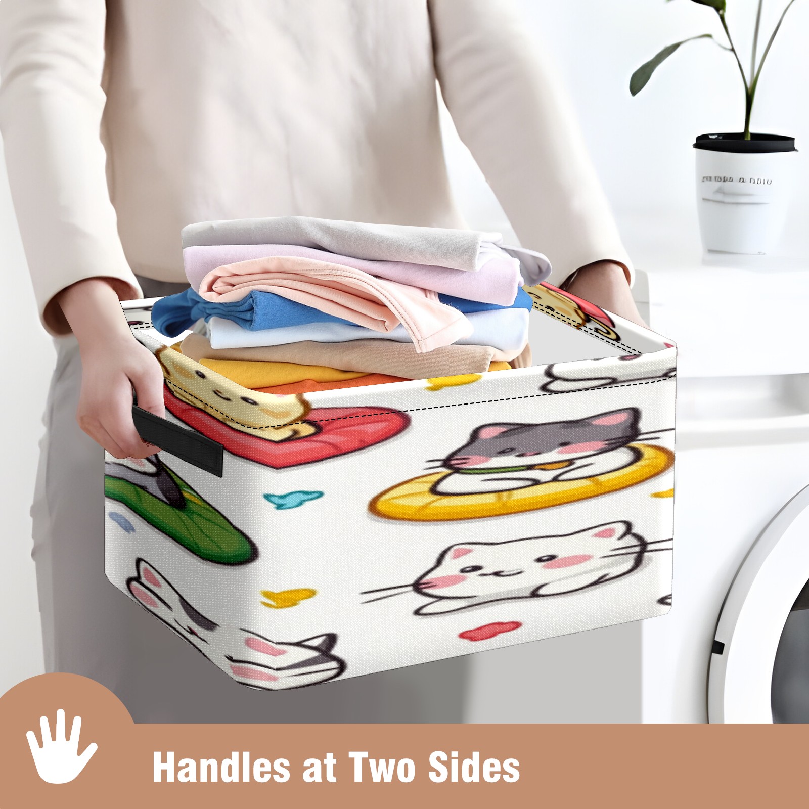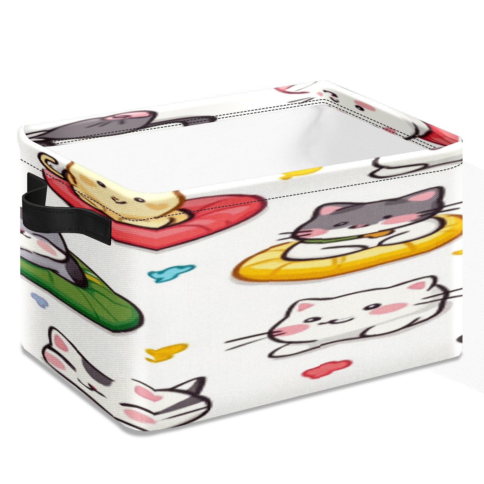 Foldable and Stackable Fabric Storage Basket for Home Organization with Handles, Decorative Closet Bins for Shelves, Laundry, and Toy Storage( Cats Playing)