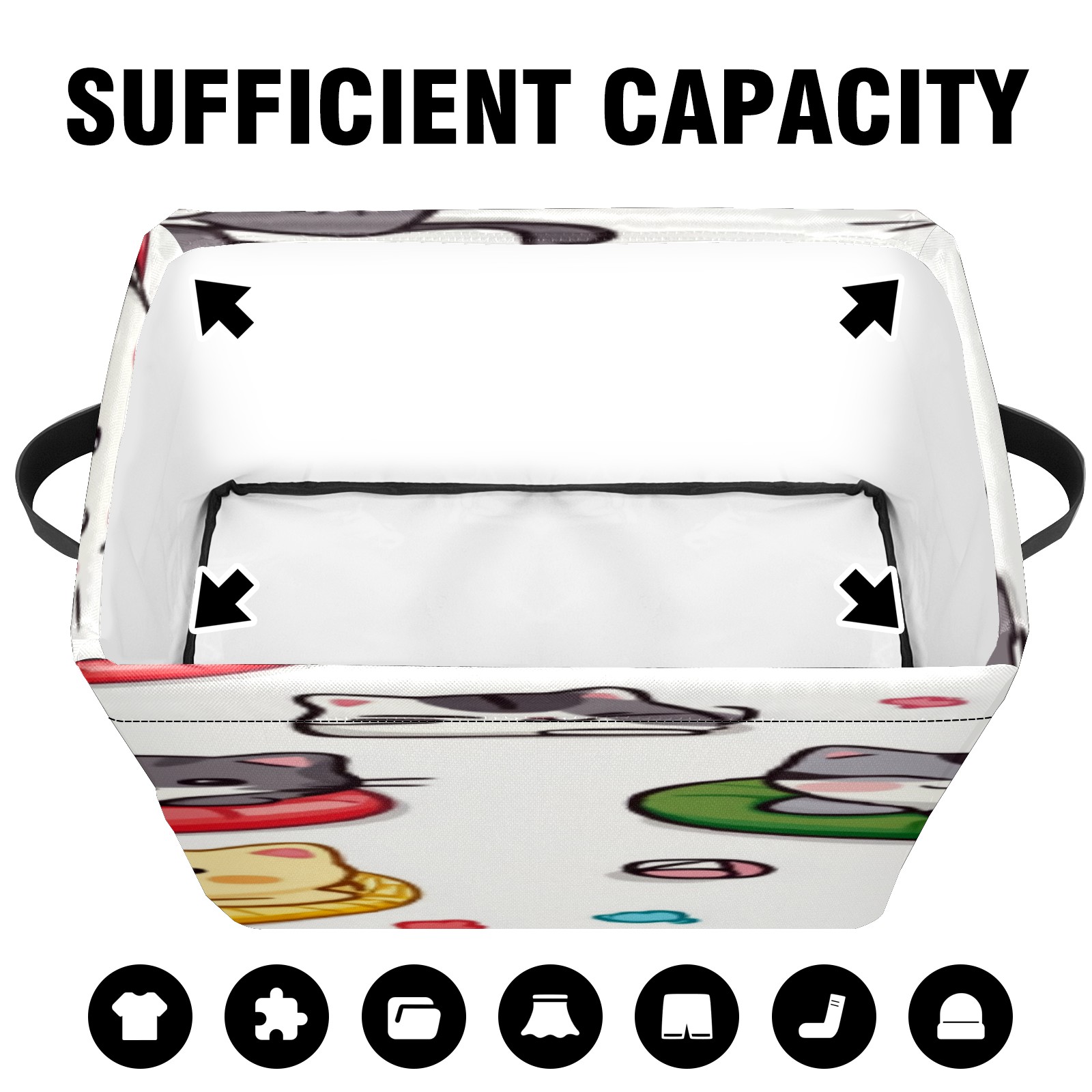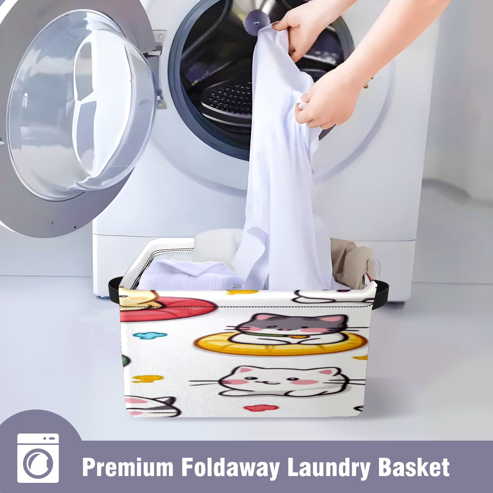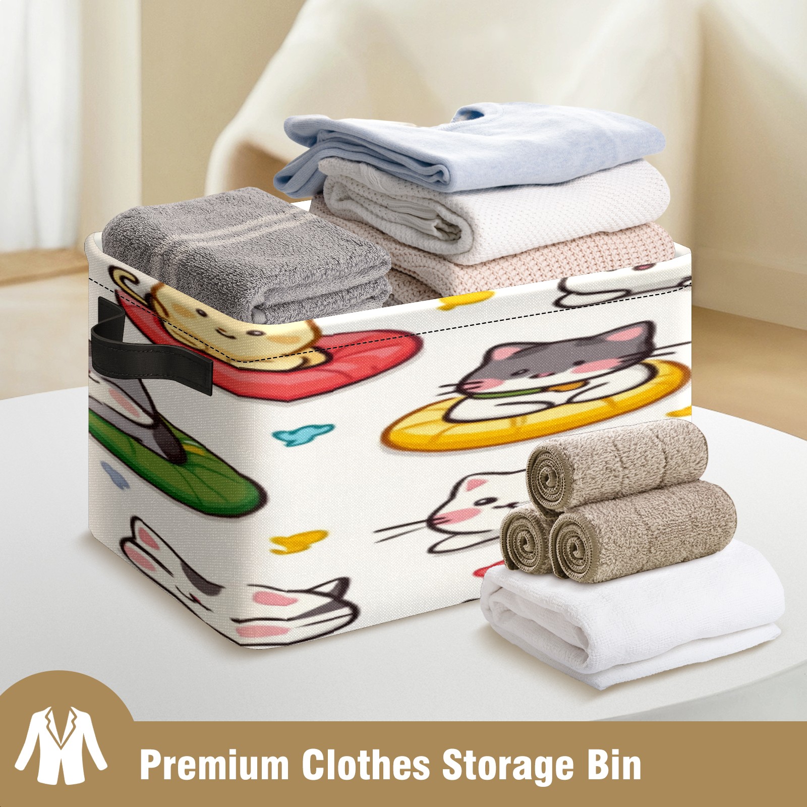 Foldable and Stackable Fabric Storage Basket for Home Organization with Handles, Decorative Closet Bins for Shelves, Laundry, and Toy Storage( Cats Playing)