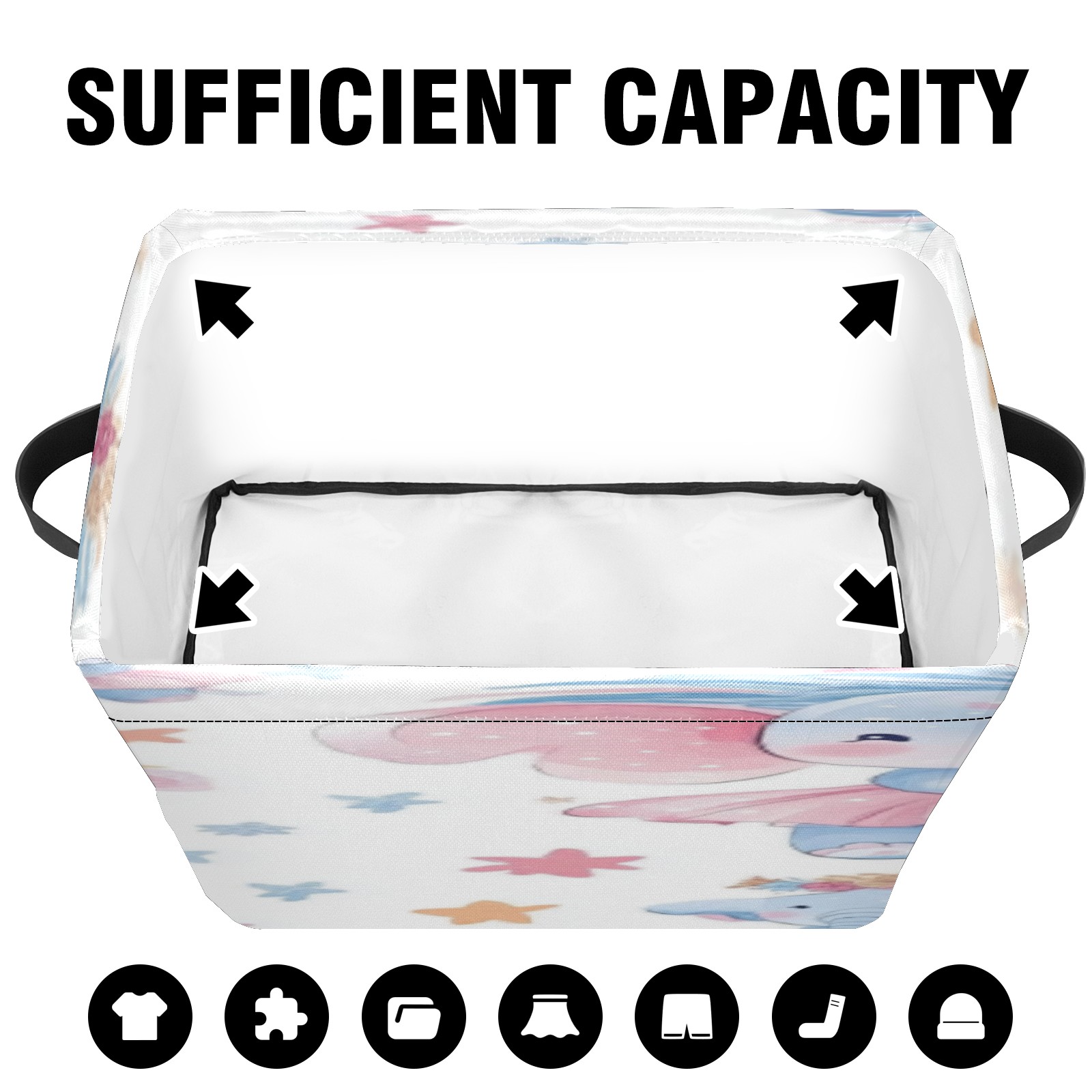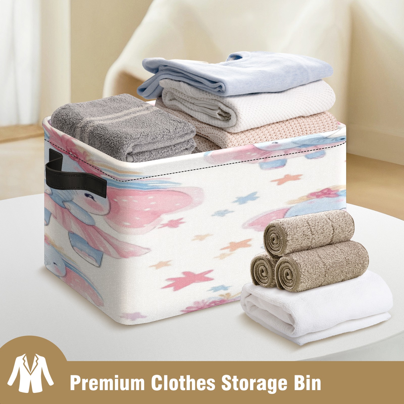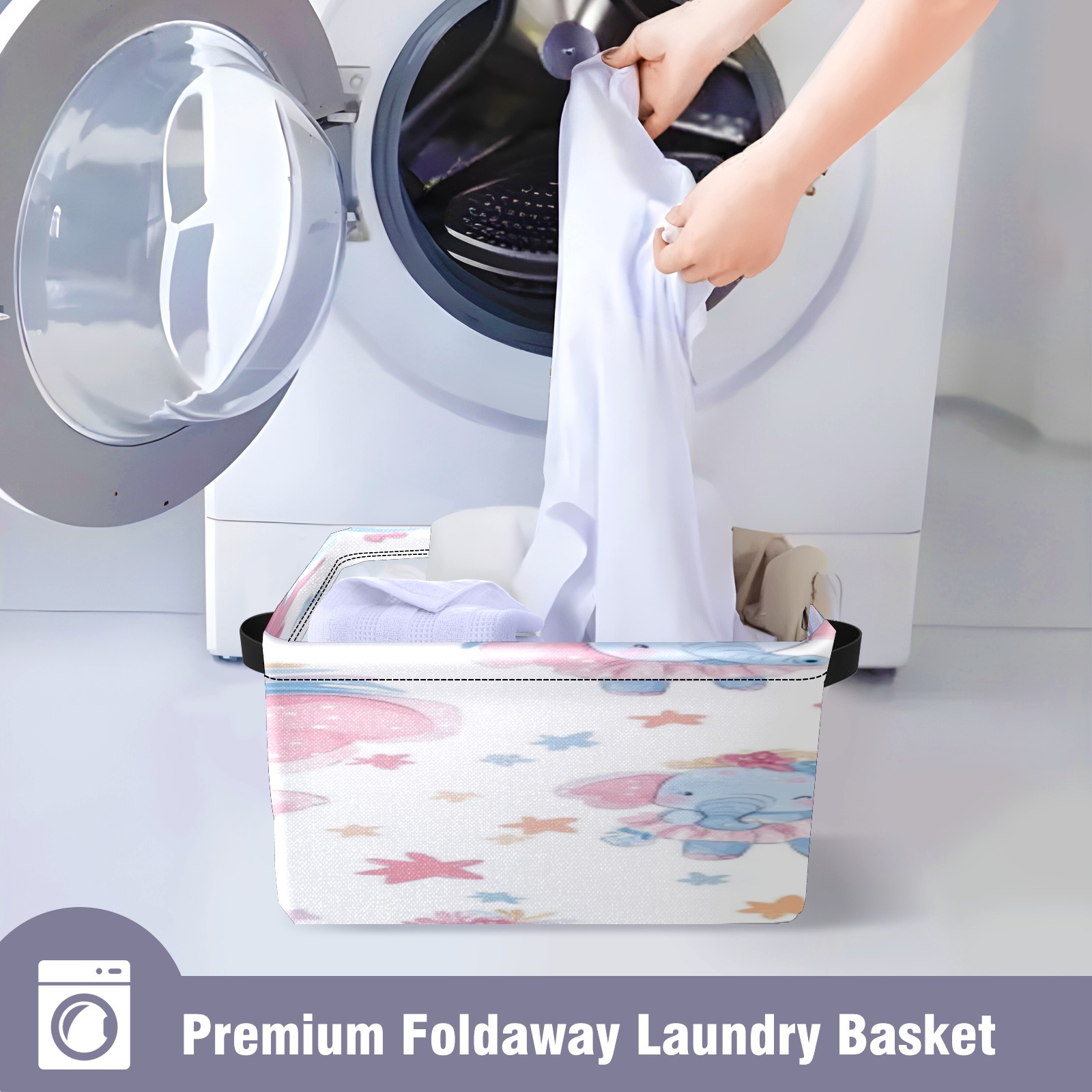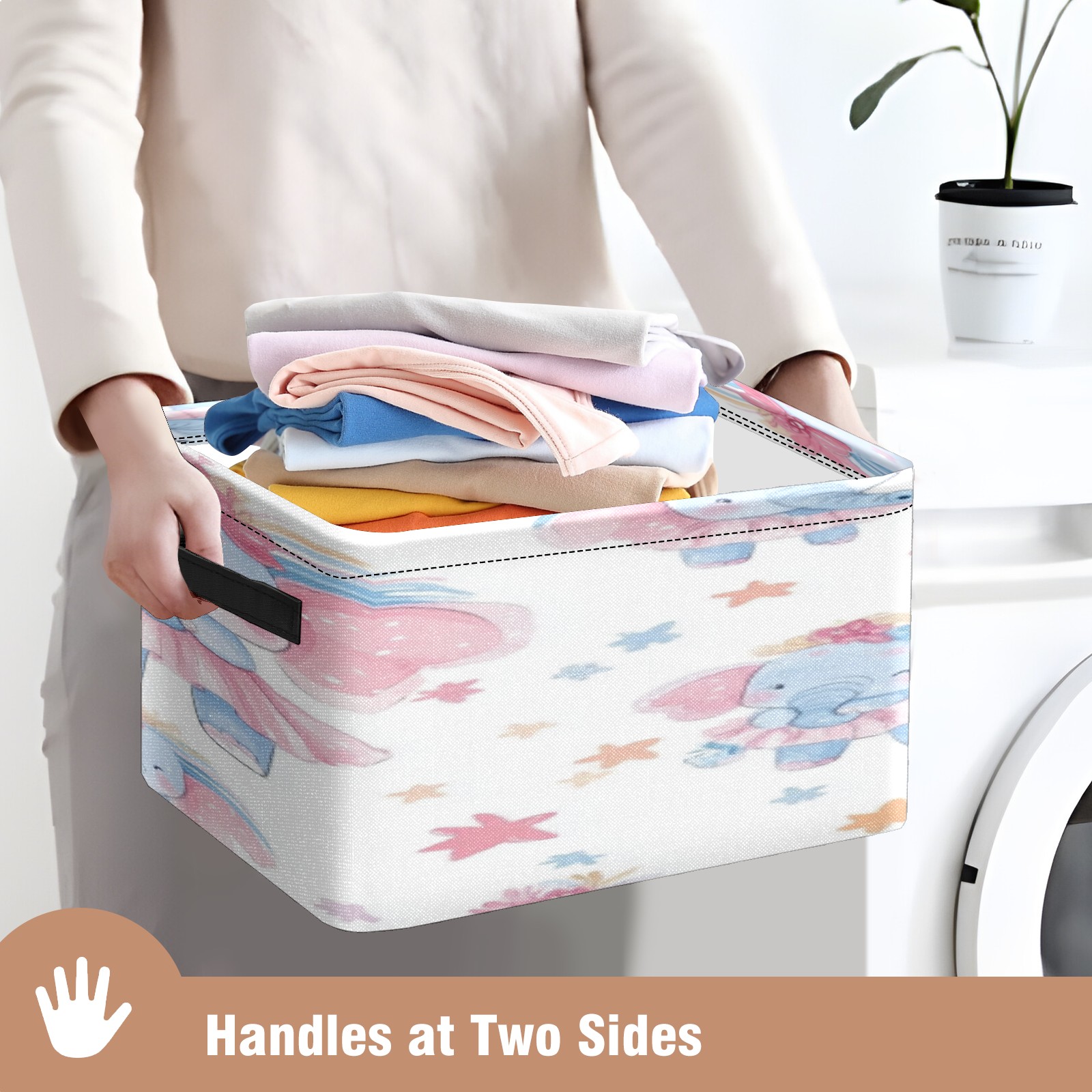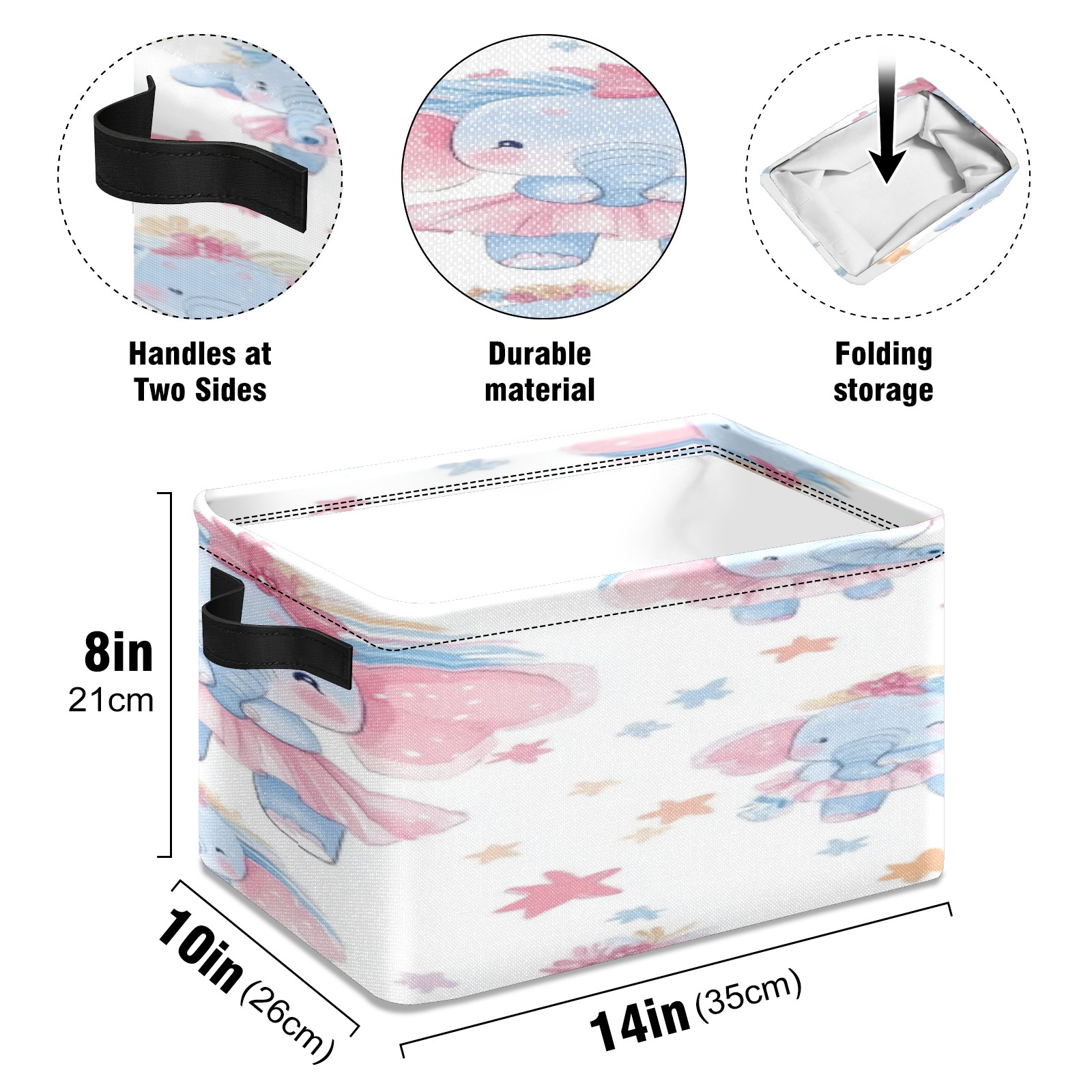 Foldable and Stackable Fabric Storage Basket for Home Organization with Handles, Decorative Closet Bins for Shelves, Laundry, and Toy Storage( Baby Elephant)