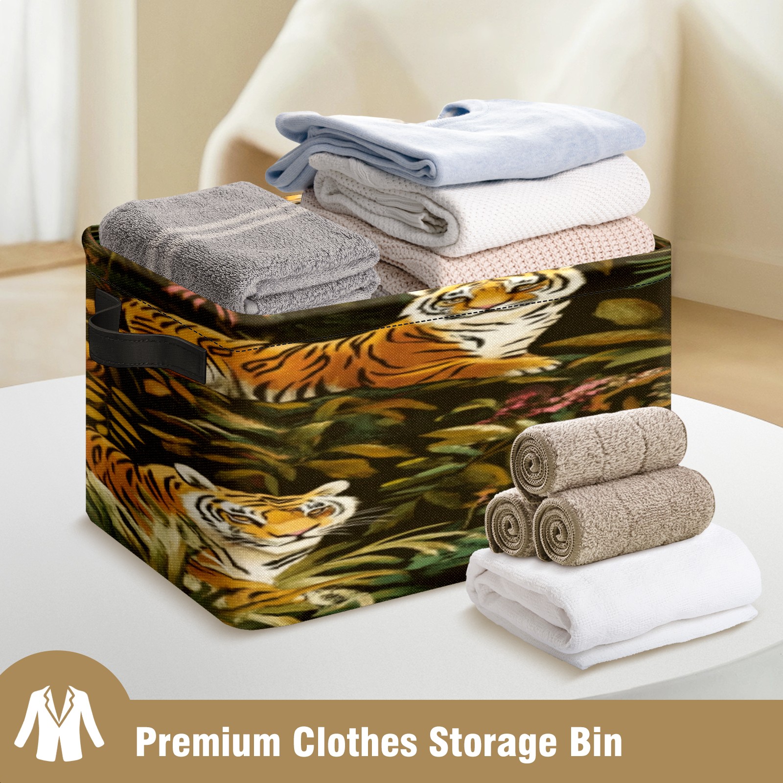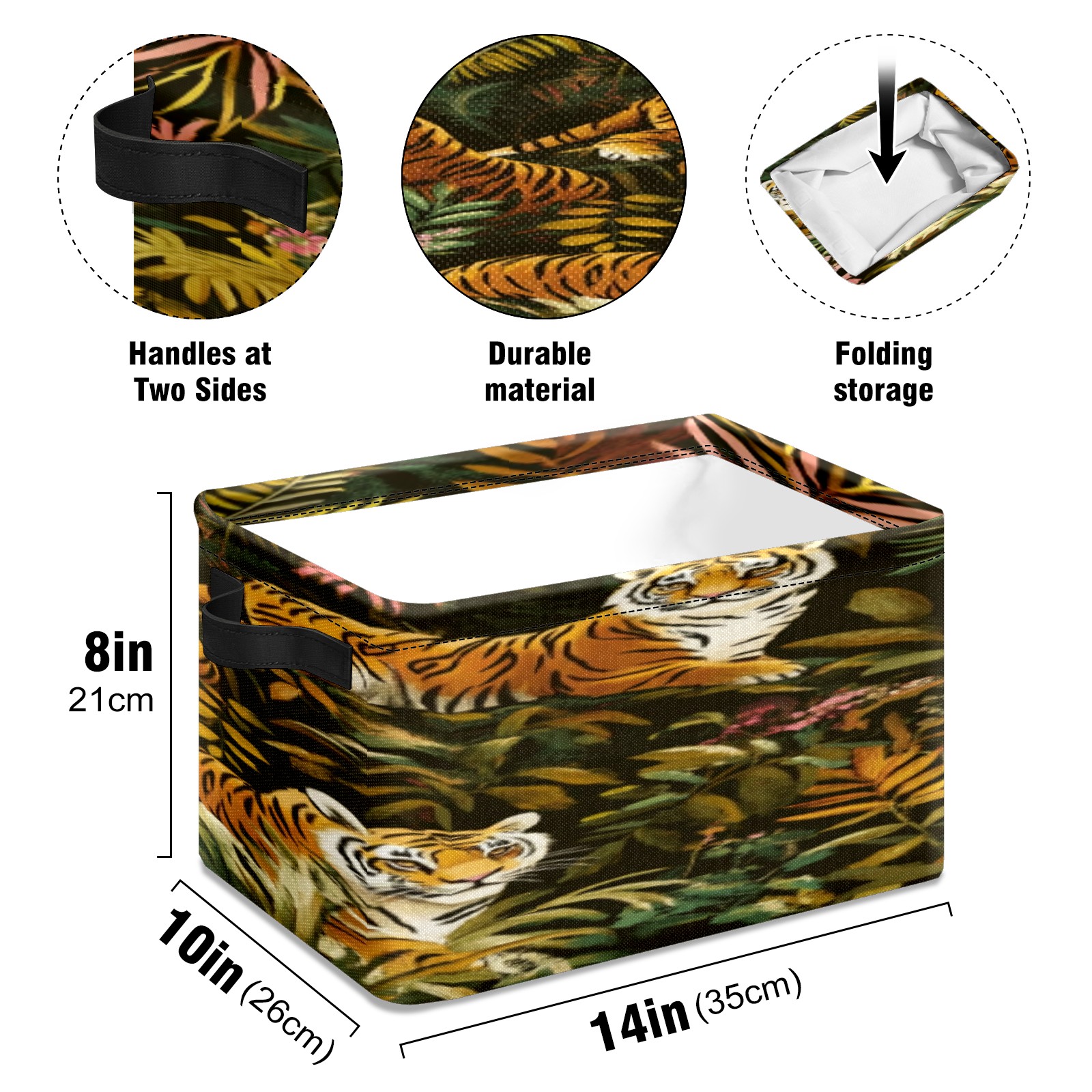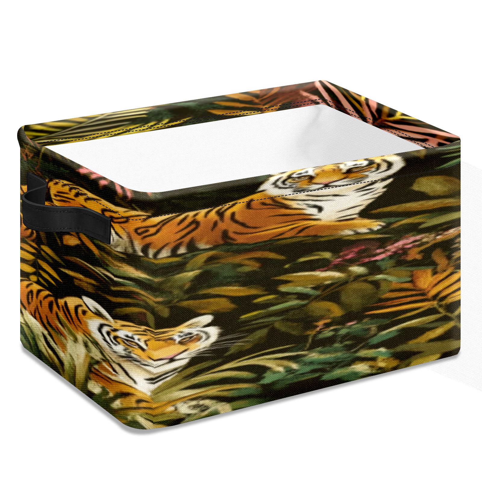 Foldable and Stackable Fabric Storage Basket for Home Organization with Handles, Decorative Closet Bins for Shelves, Laundry, and Toy Storage( Tigers And Leopards)