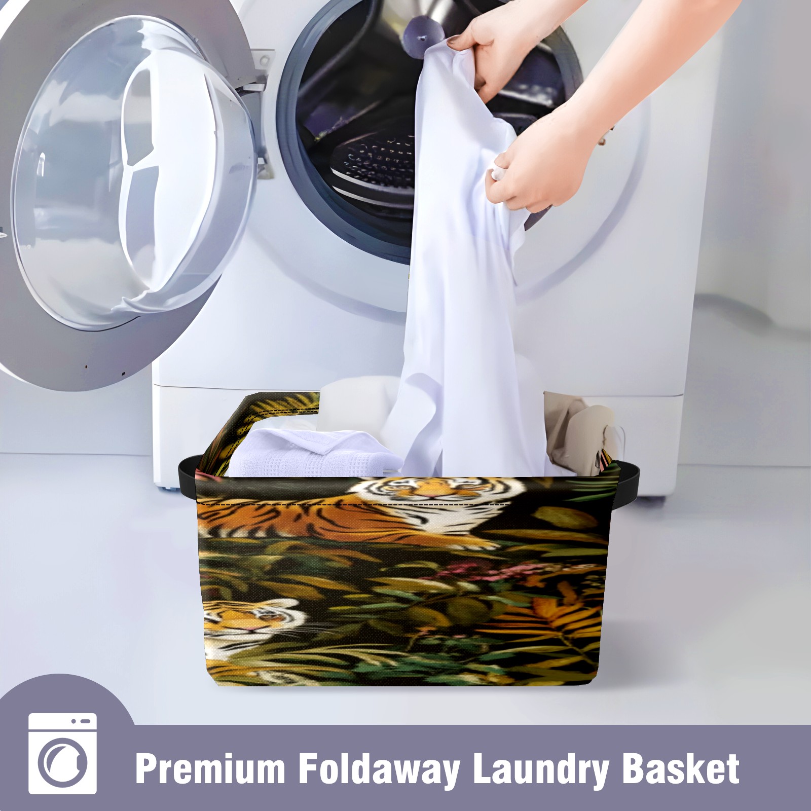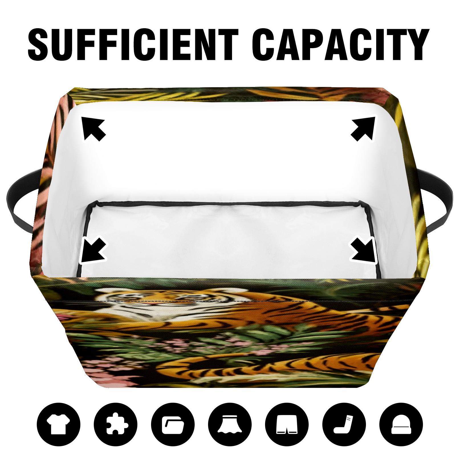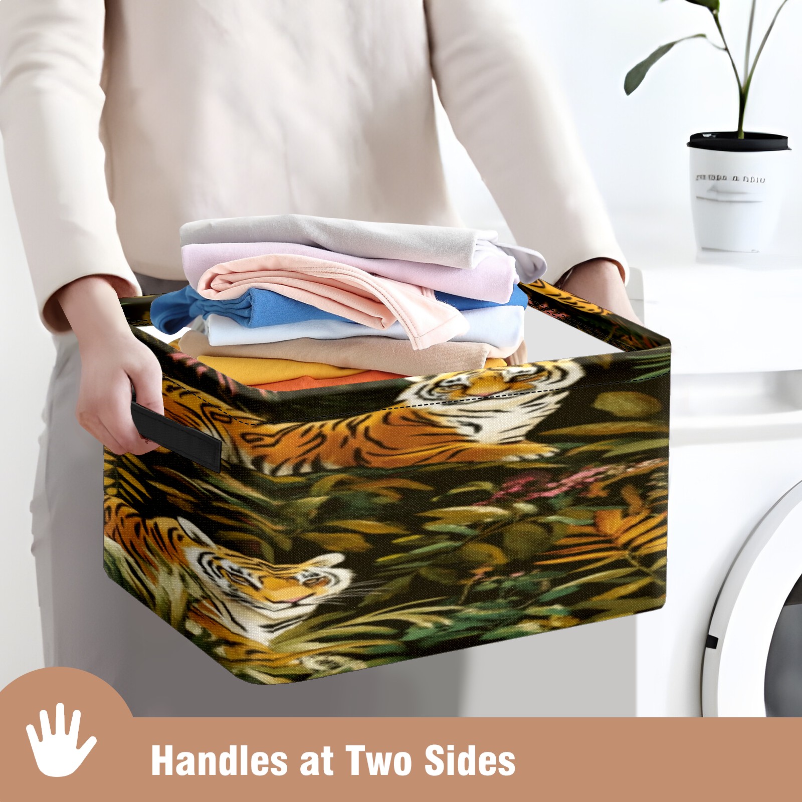 Foldable and Stackable Fabric Storage Basket for Home Organization with Handles, Decorative Closet Bins for Shelves, Laundry, and Toy Storage( Tigers And Leopards)