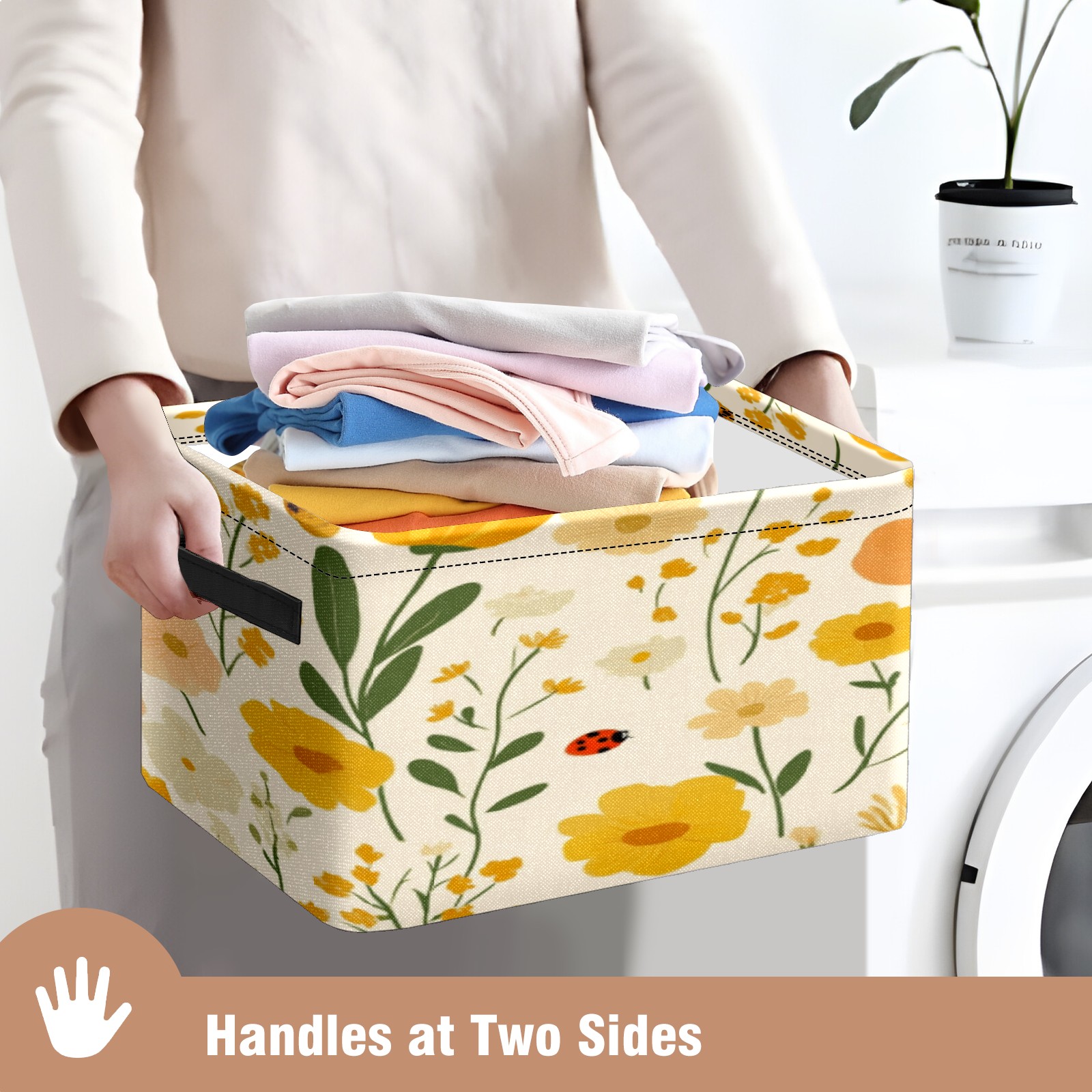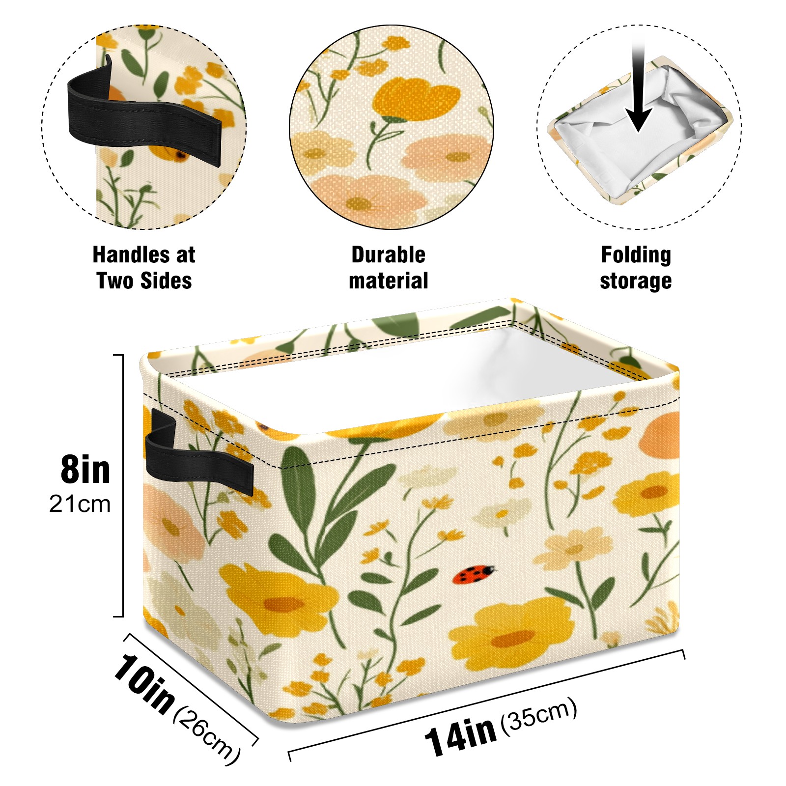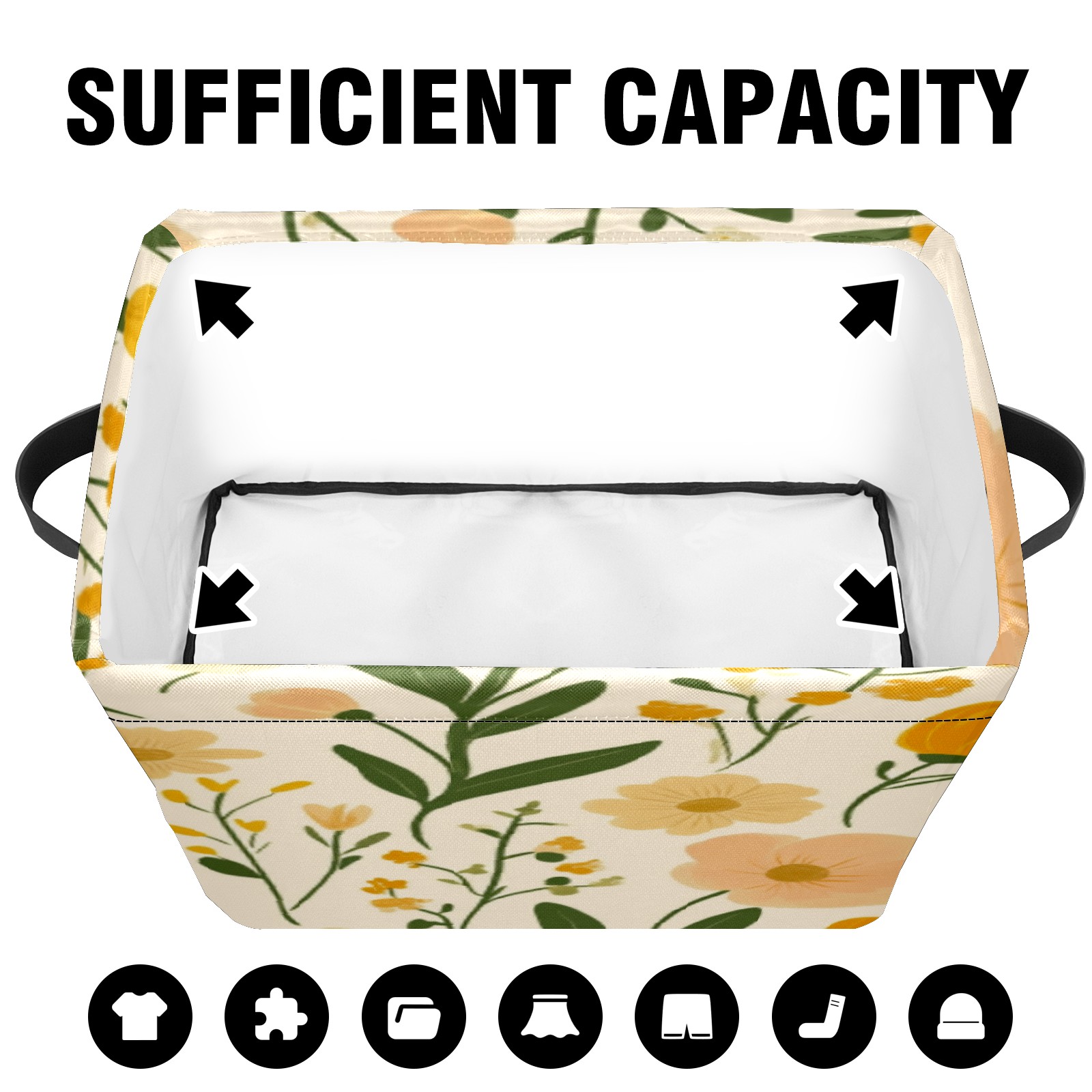 Foldable and Stackable Fabric Storage Basket for Home Organization with Handles, Decorative Closet Bins for Shelves, Laundry, and Toy Storage( Orange Flowers)