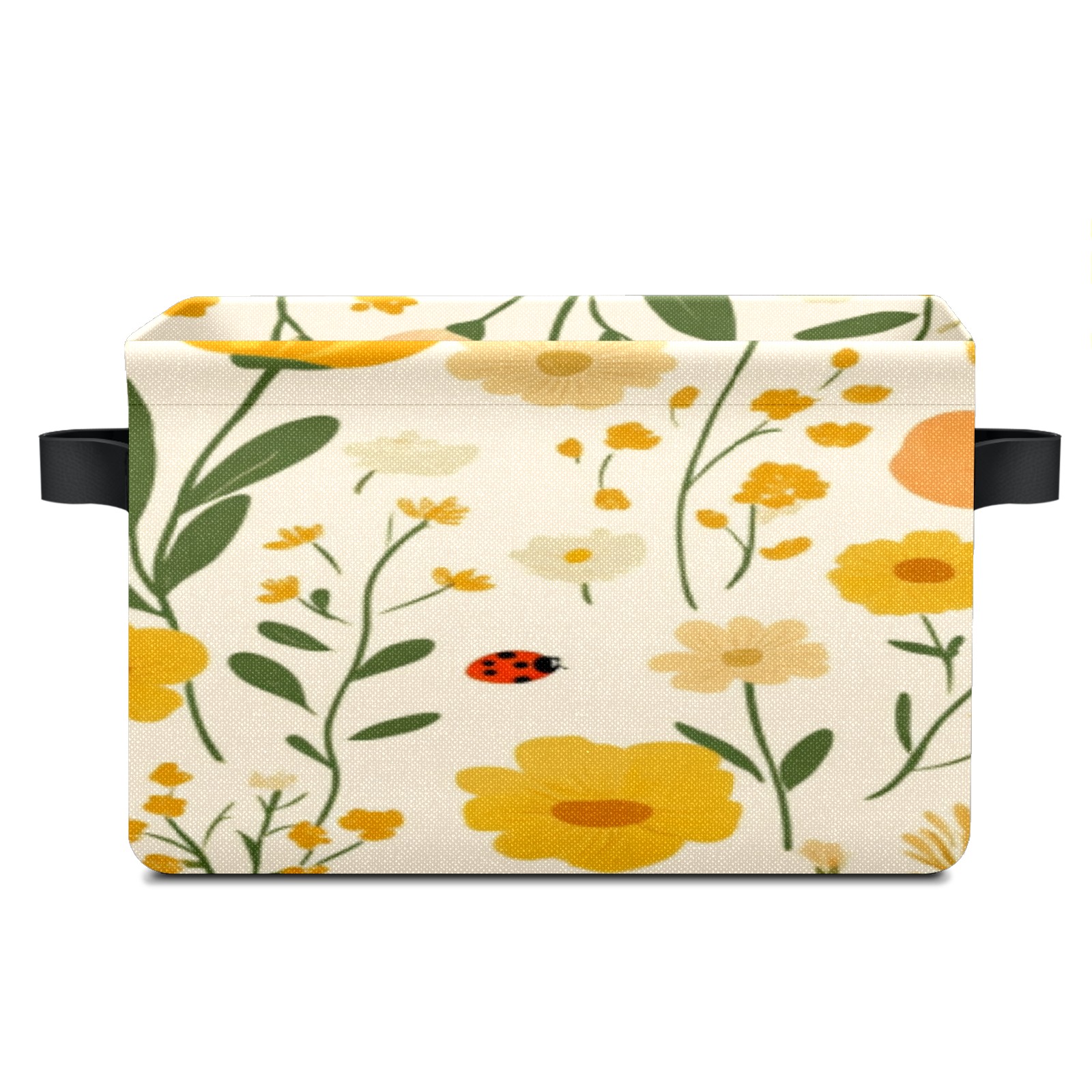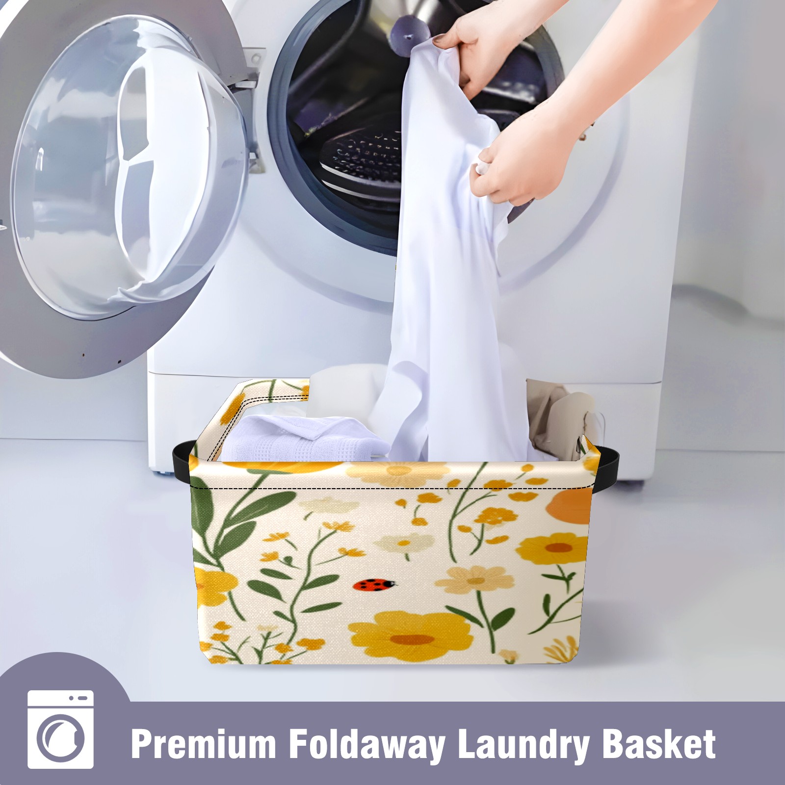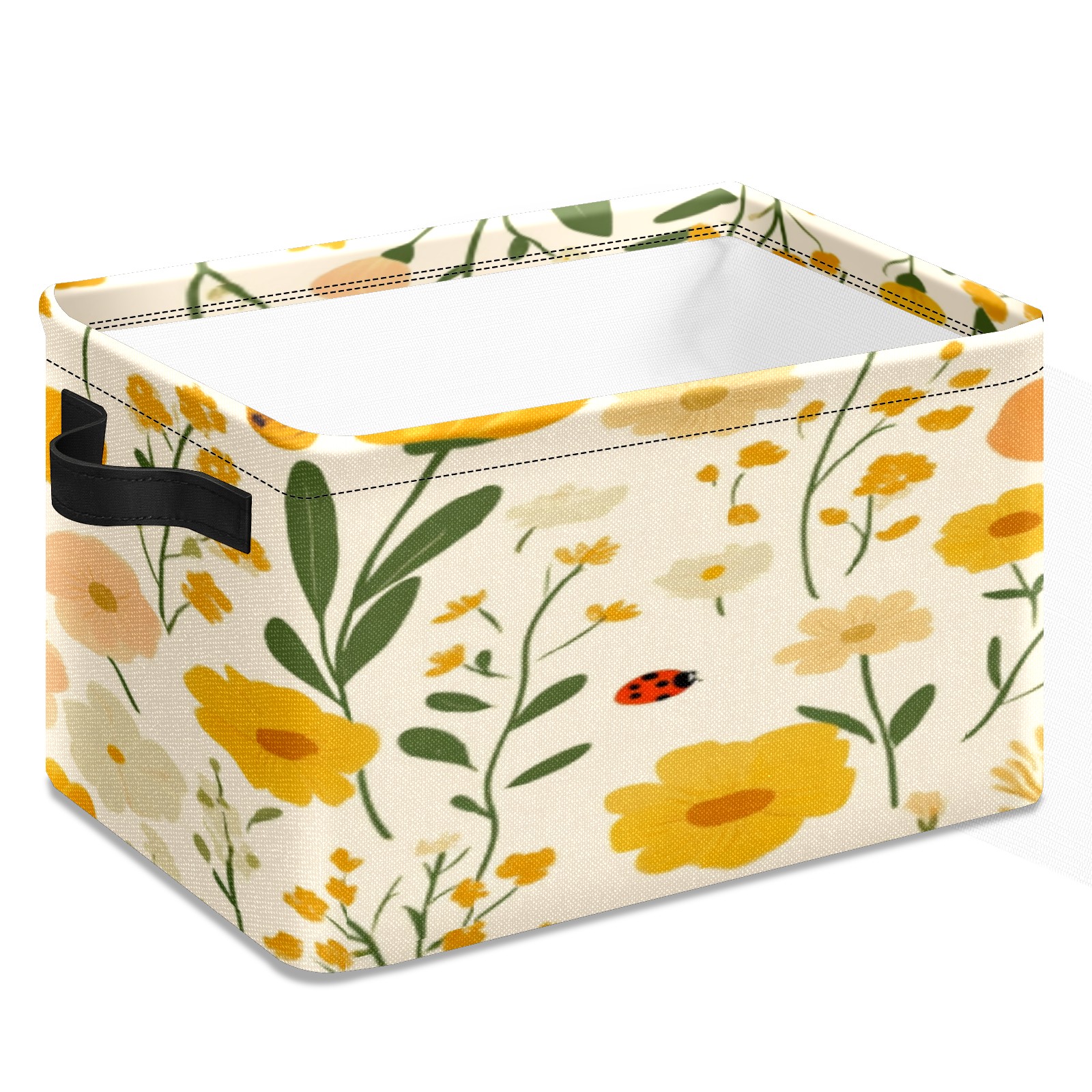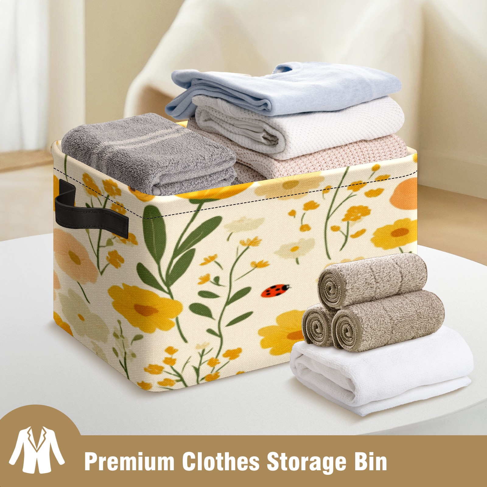 Foldable and Stackable Fabric Storage Basket for Home Organization with Handles, Decorative Closet Bins for Shelves, Laundry, and Toy Storage( Orange Flowers)