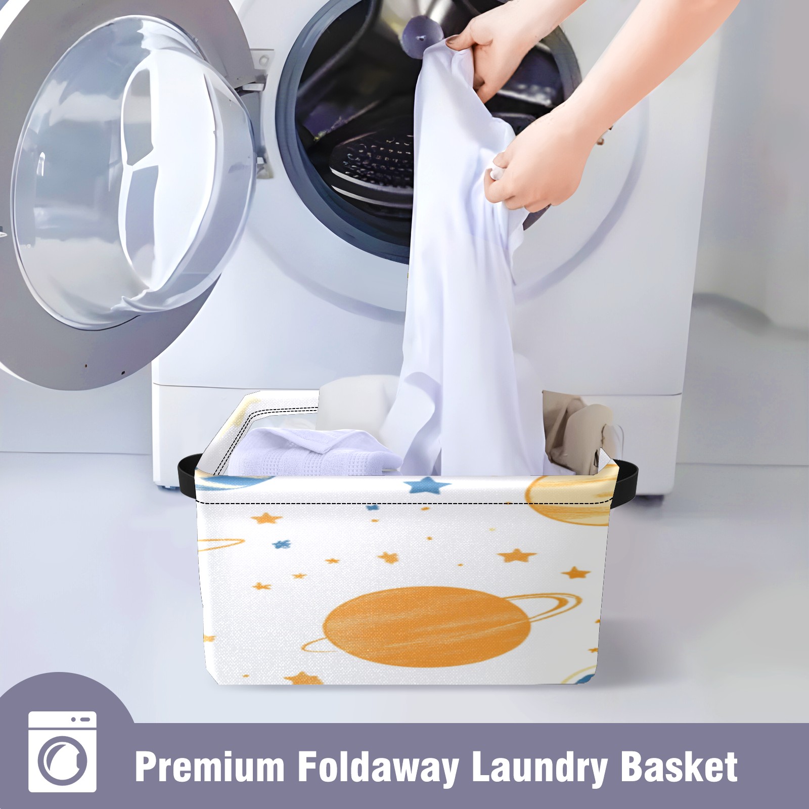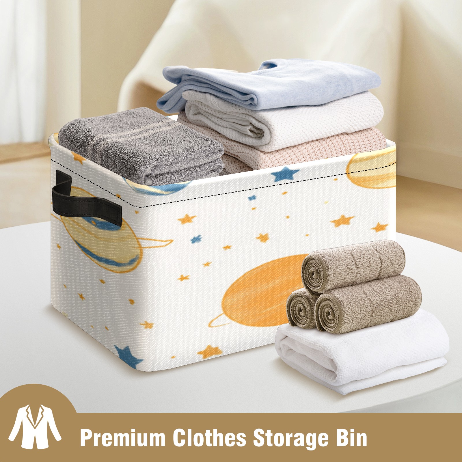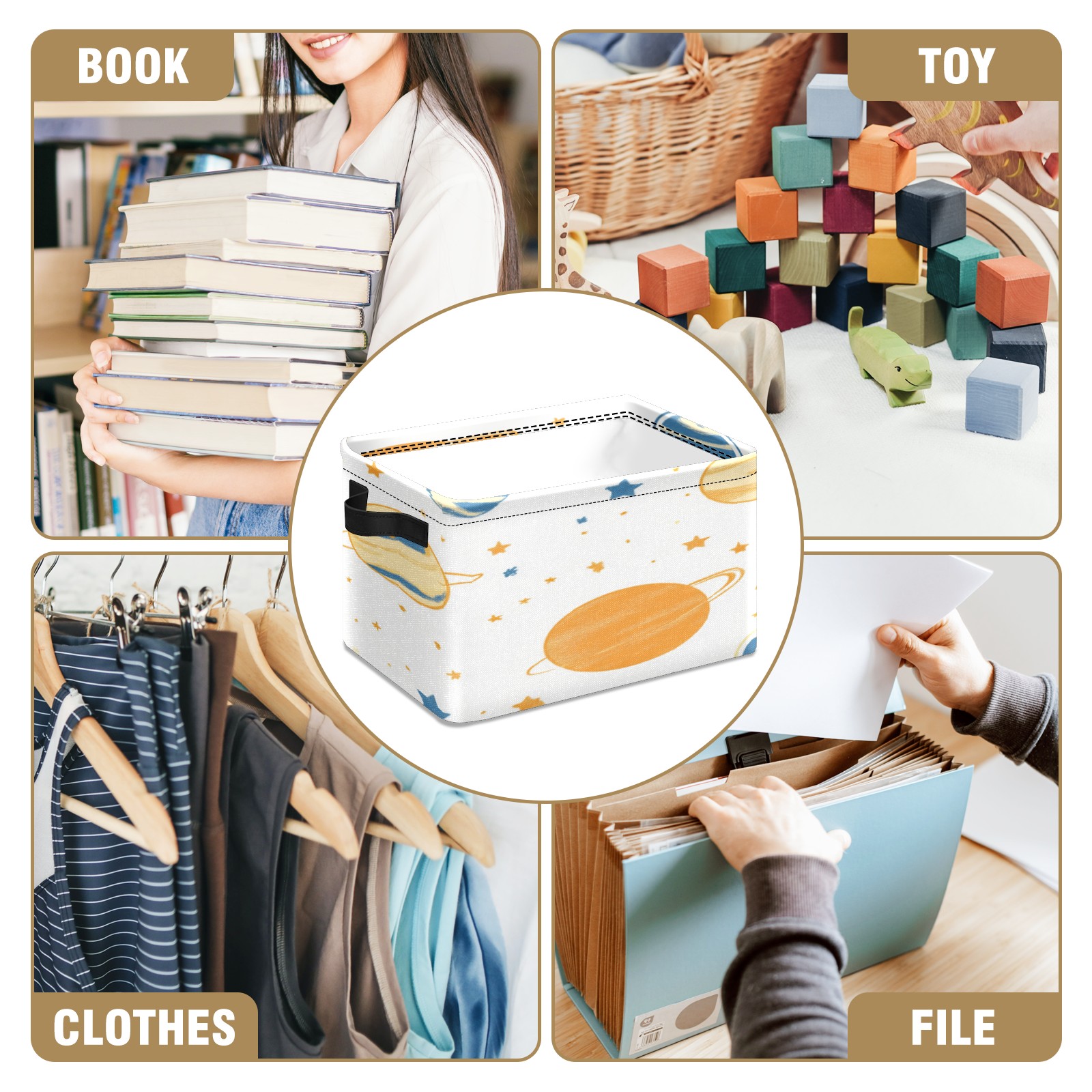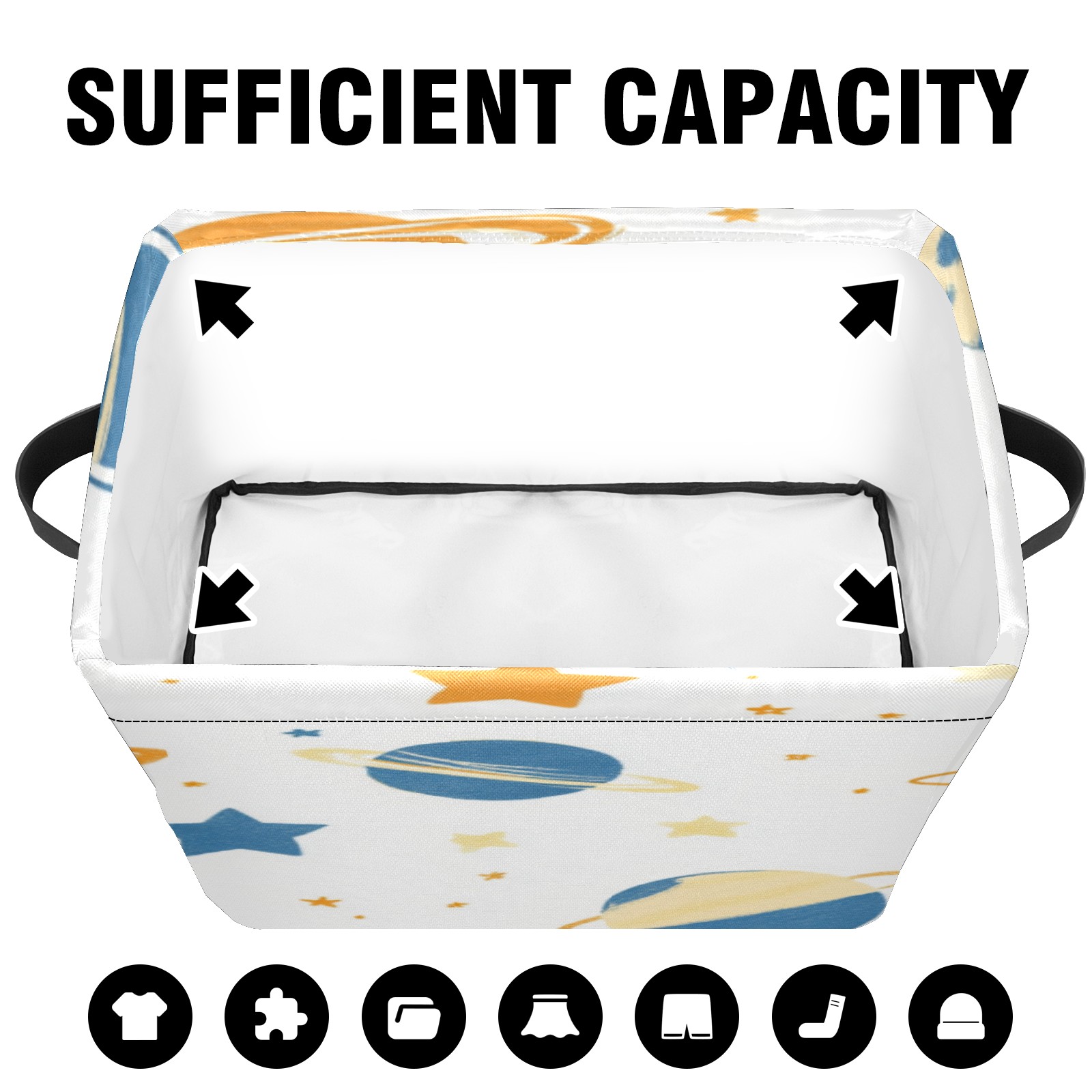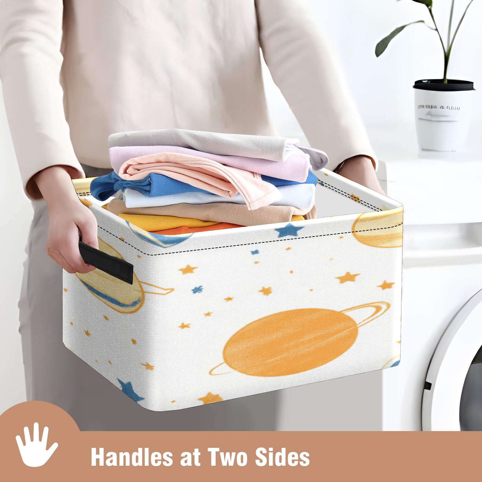 Foldable and Stackable Fabric Storage Basket for Home Organization with Handles, Decorative Closet Bins for Shelves, Laundry, and Toy Storage( Planets And Stars)