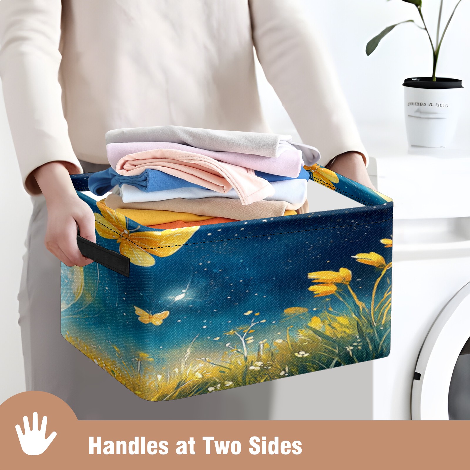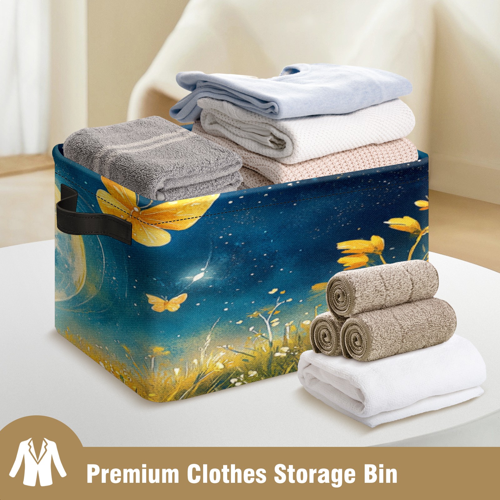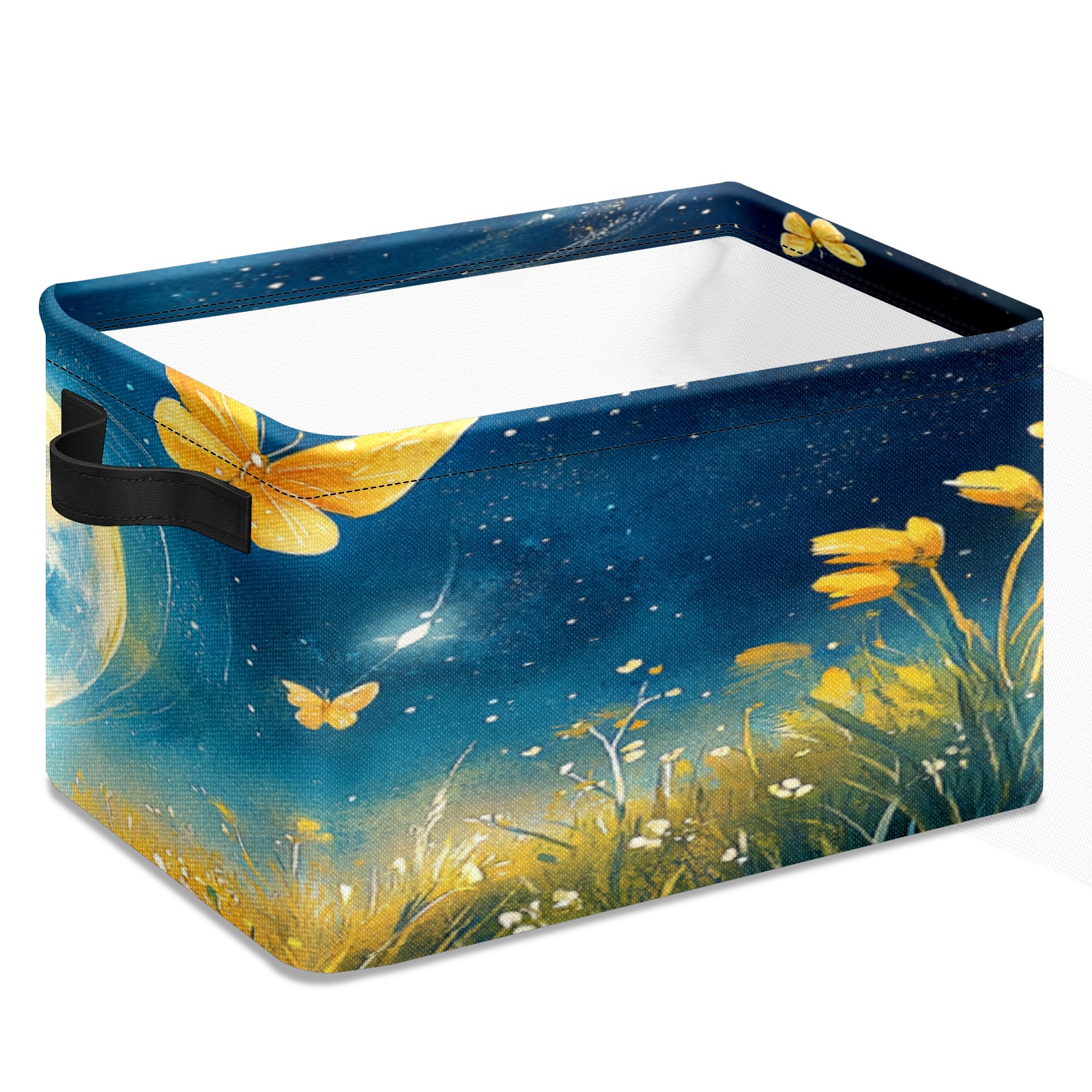 Foldable and Stackable Fabric Storage Basket for Home Organization with Handles, Decorative Closet Bins for Shelves, Laundry, and Toy Storage( Earth Butterflies)