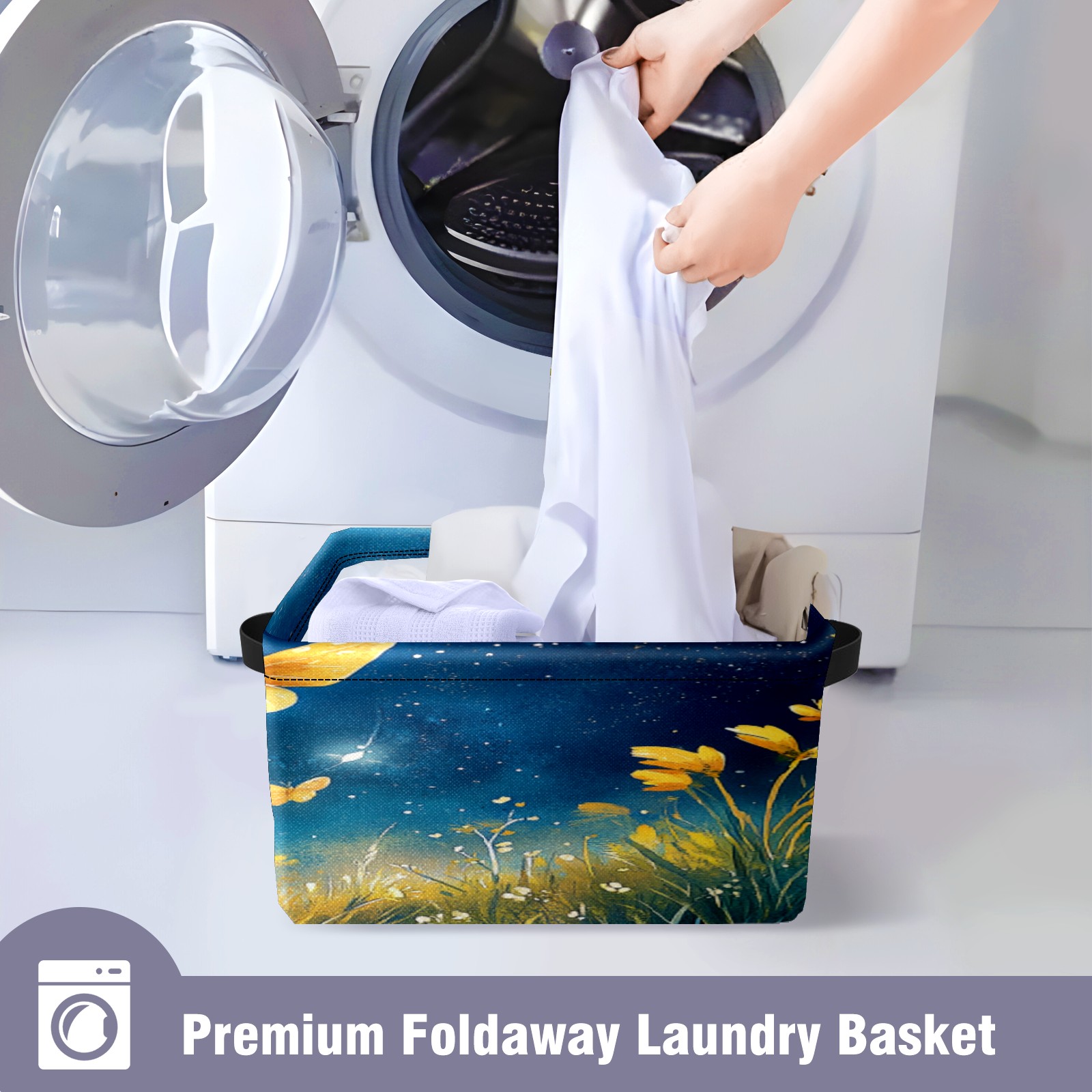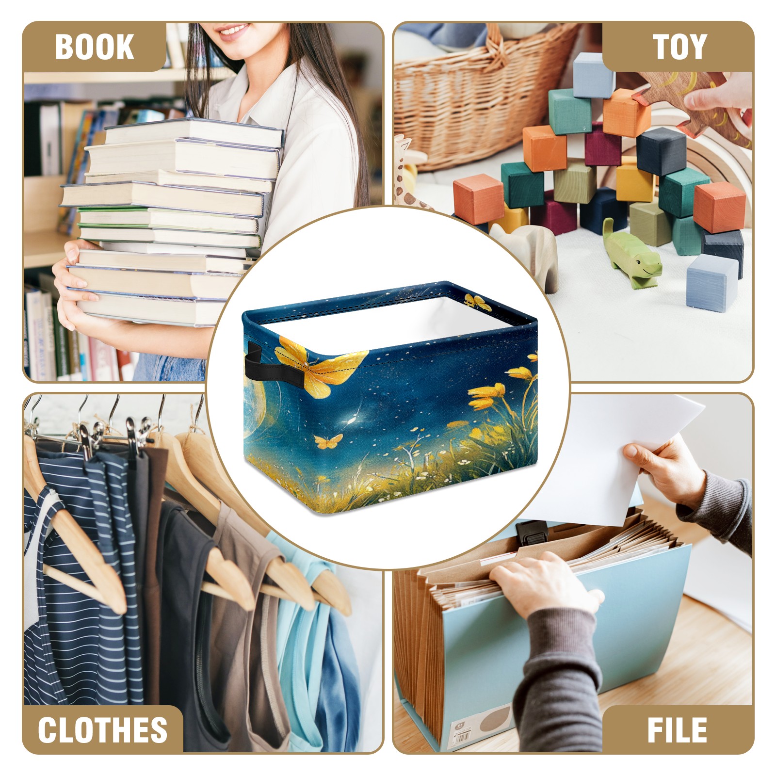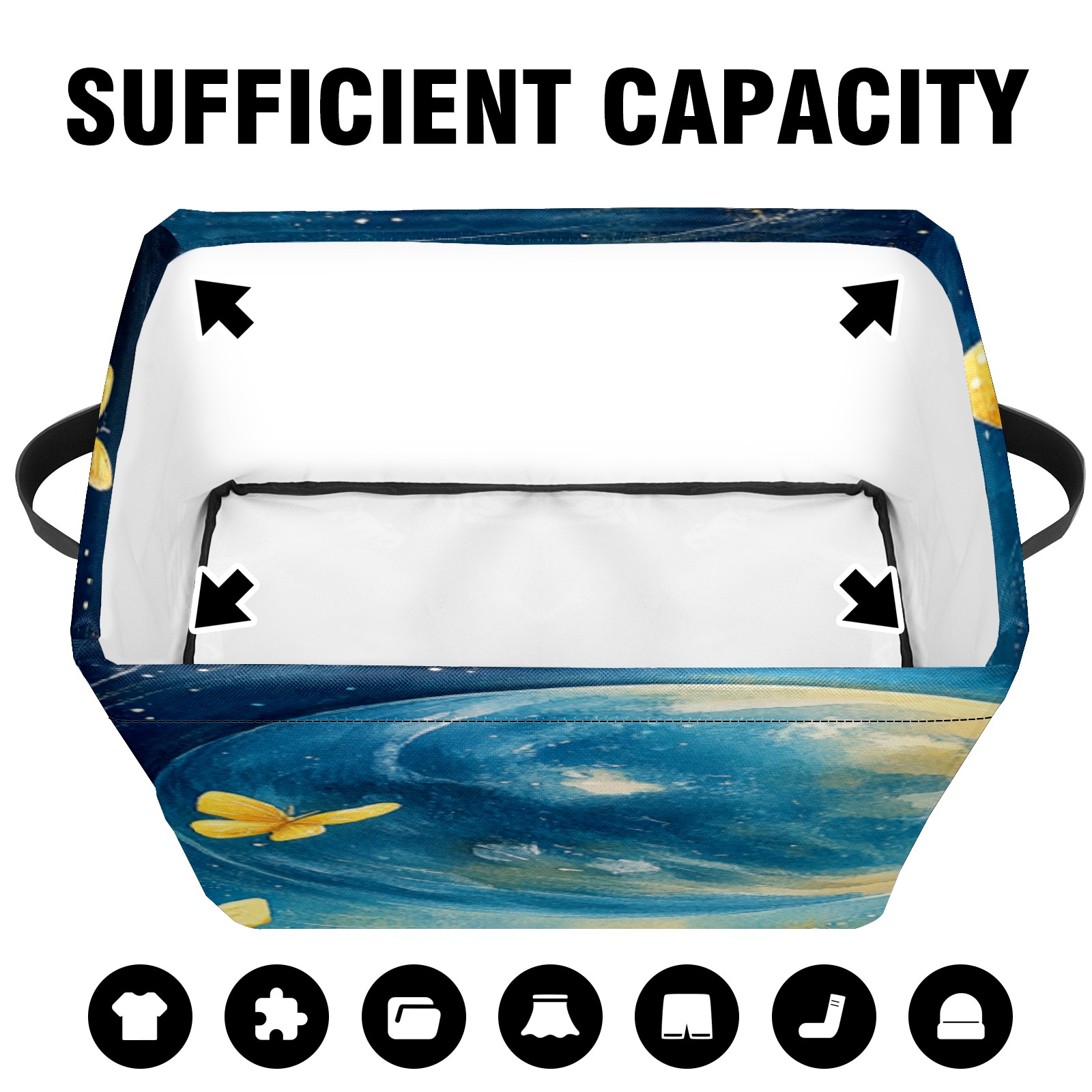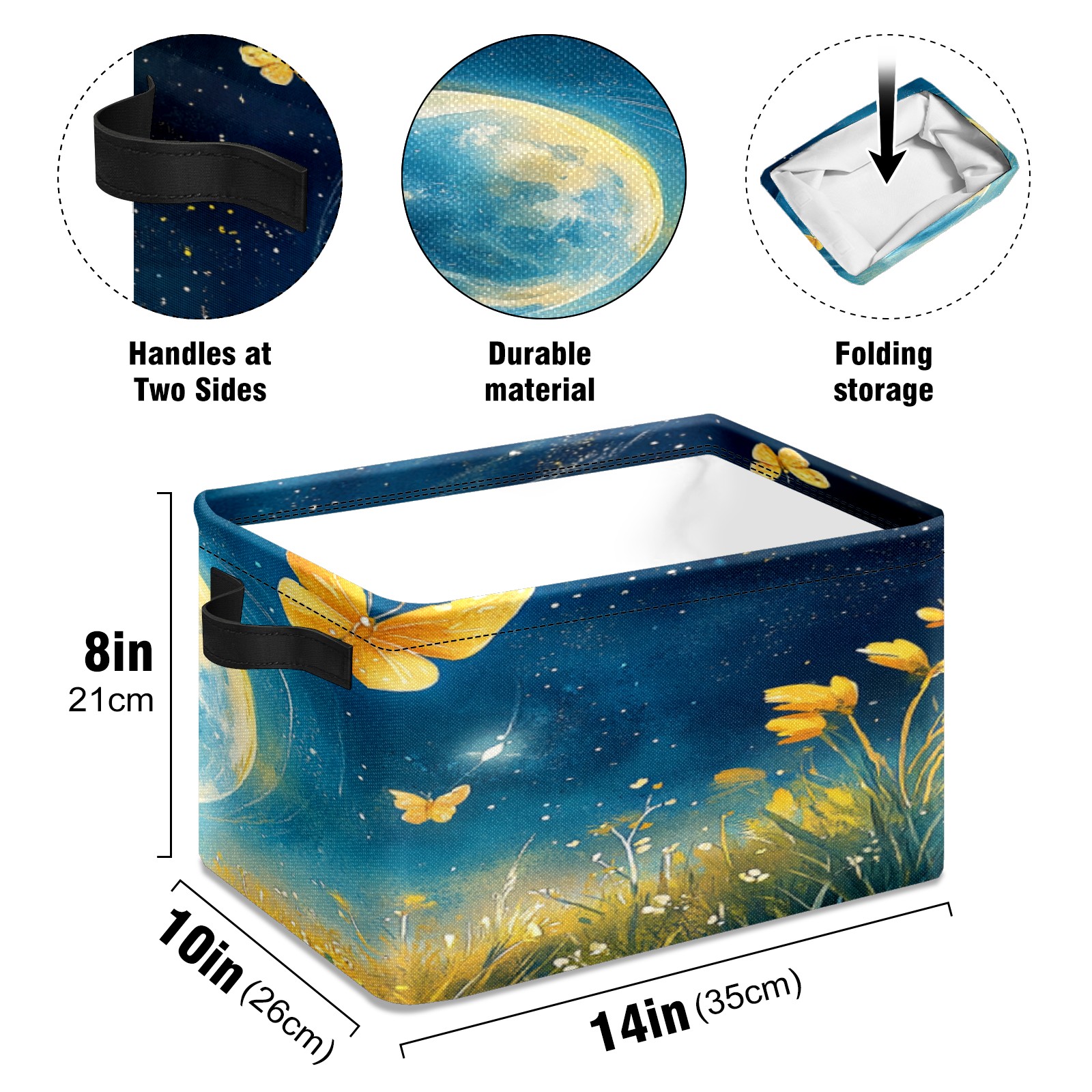 Foldable and Stackable Fabric Storage Basket for Home Organization with Handles, Decorative Closet Bins for Shelves, Laundry, and Toy Storage( Earth Butterflies)