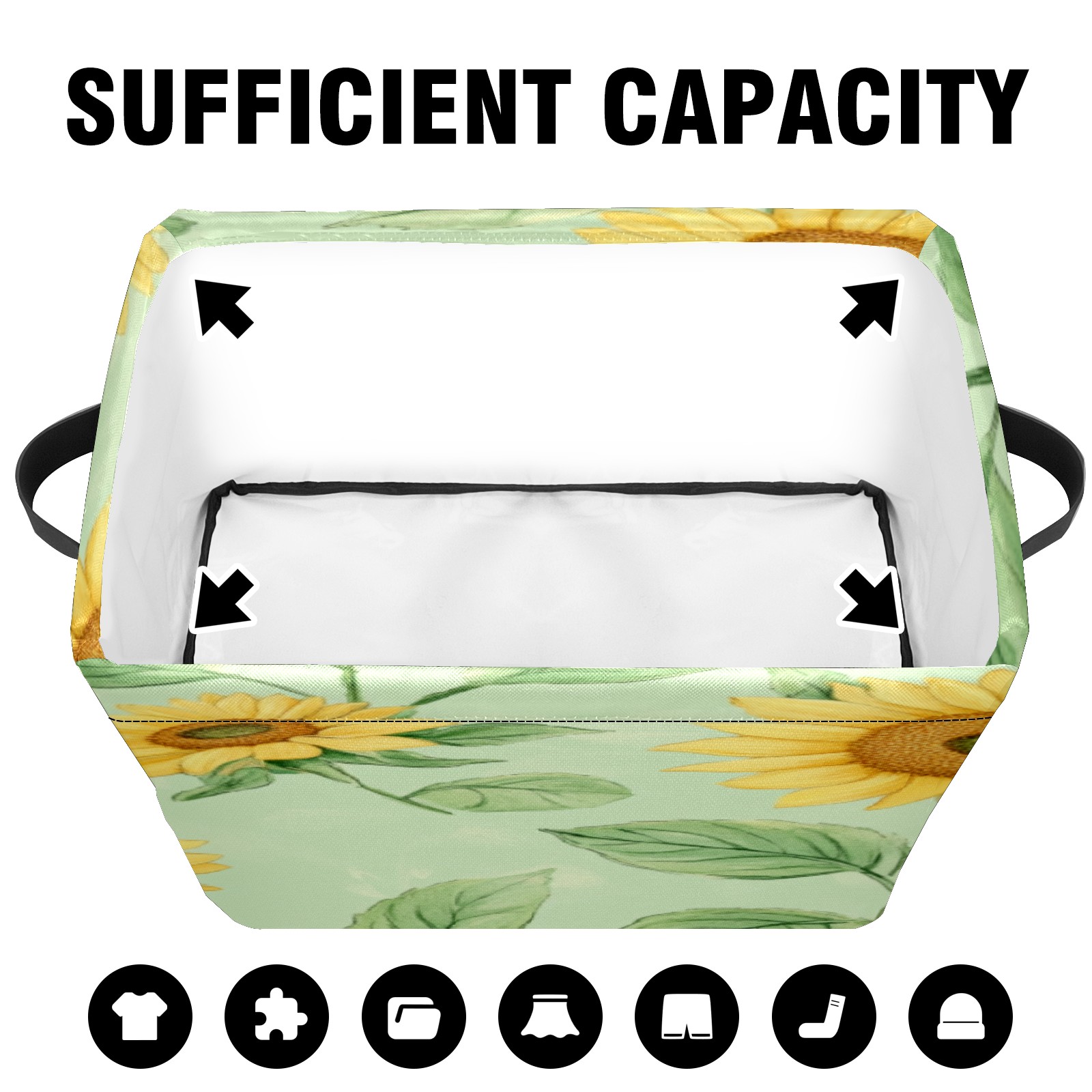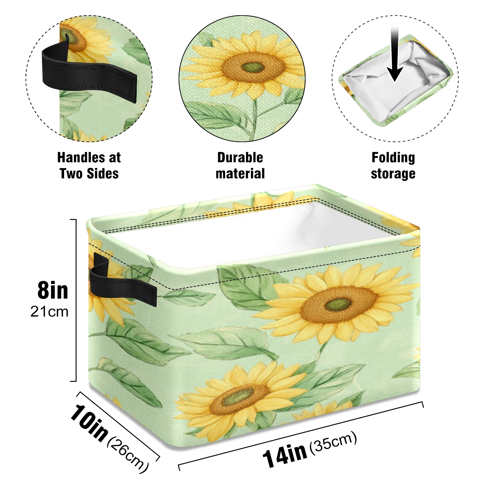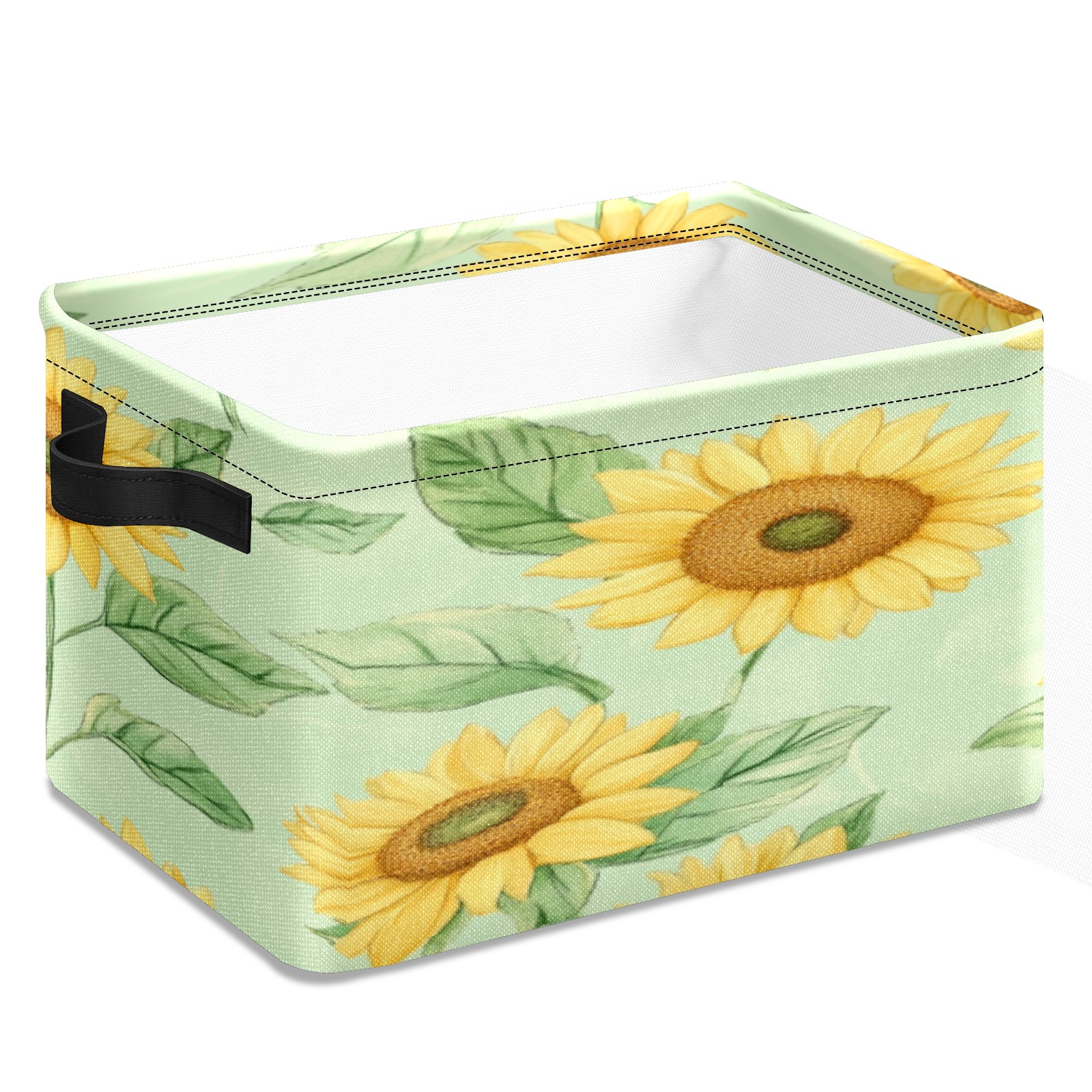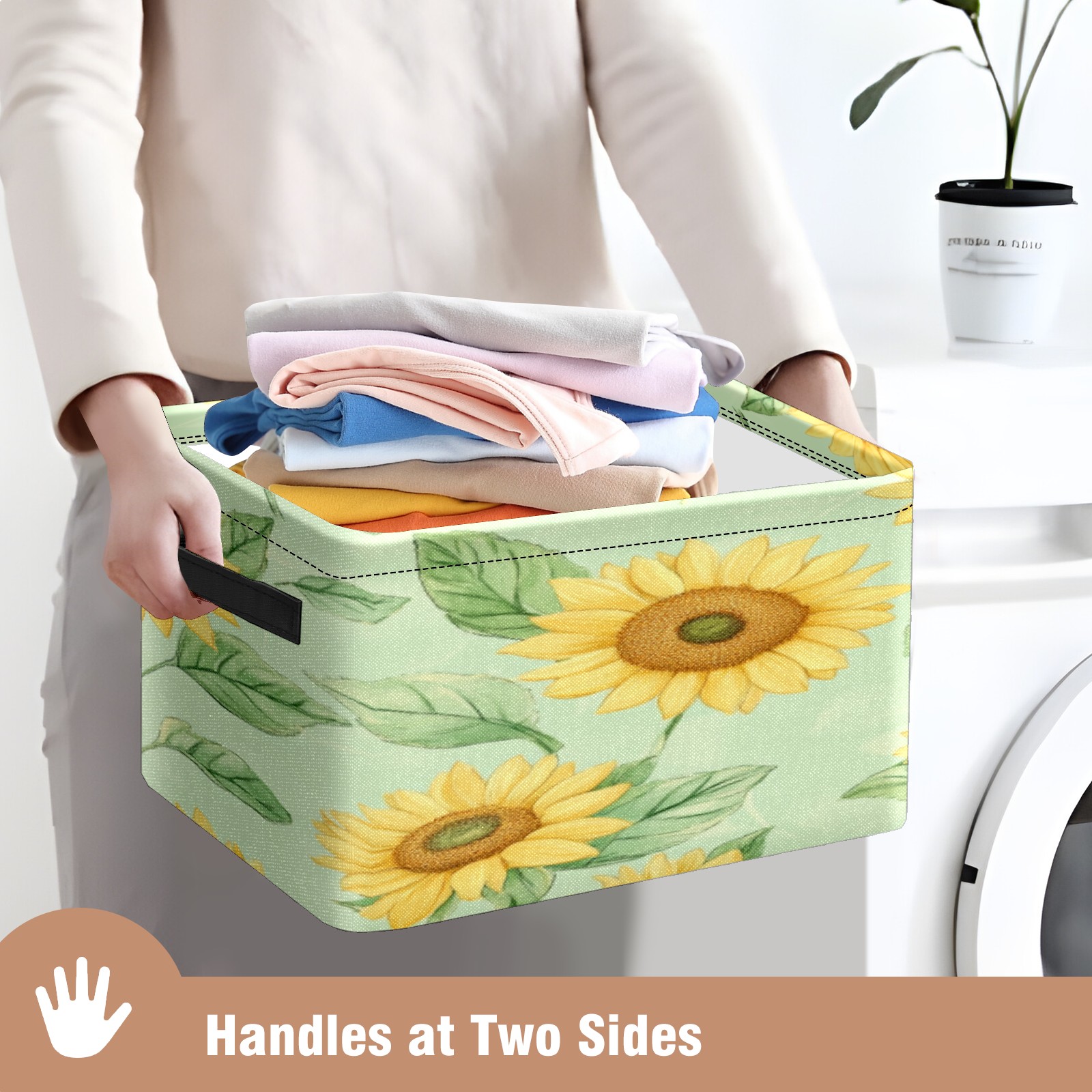 Foldable and Stackable Fabric Storage Basket for Home Organization with Handles, Decorative Closet Bins for Shelves, Laundry, and Toy Storage( Yellow Sunflowers)