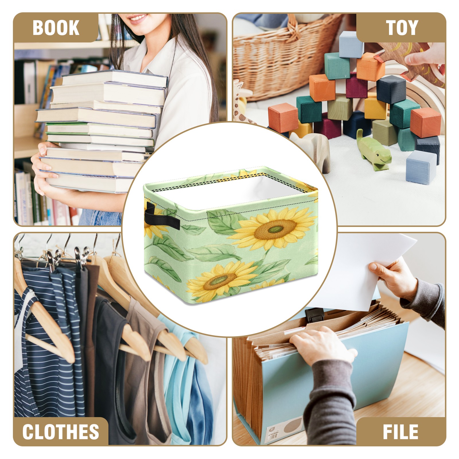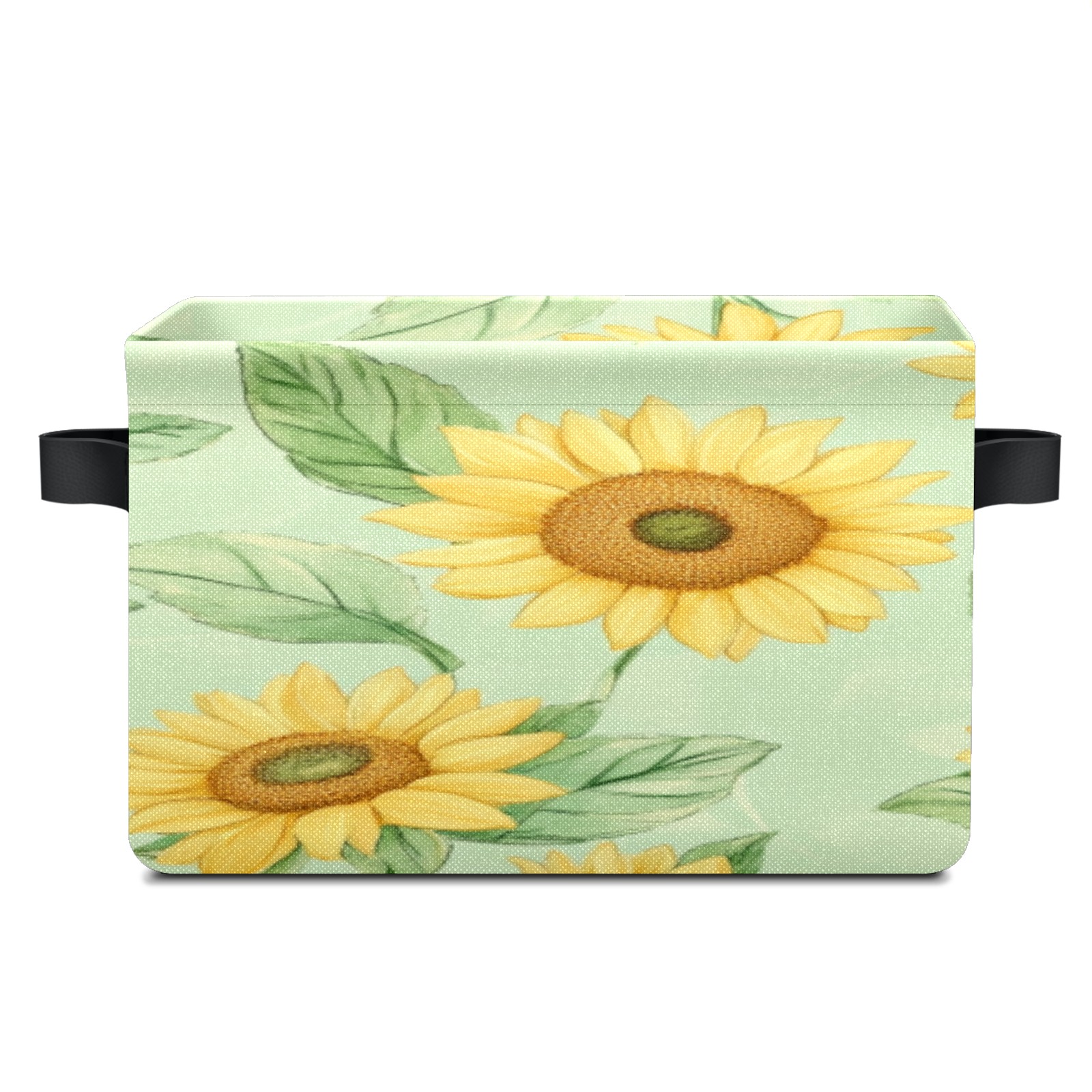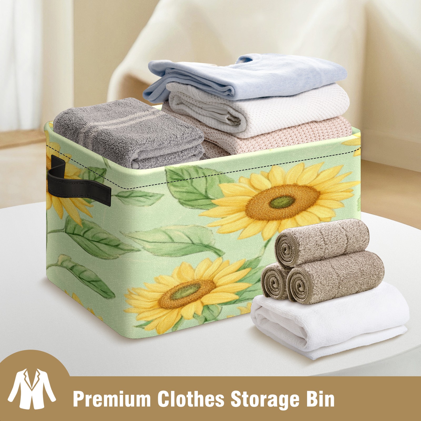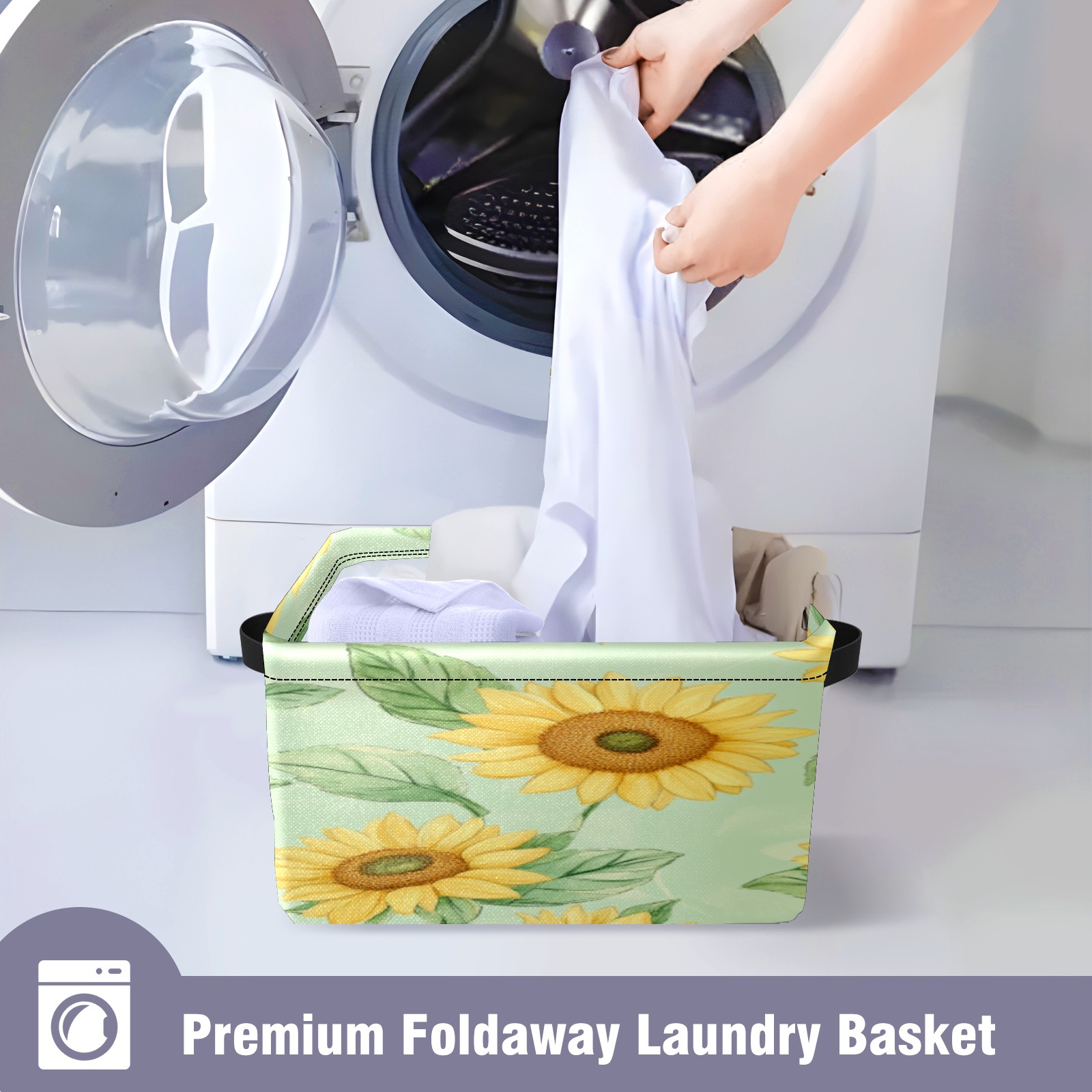 Foldable and Stackable Fabric Storage Basket for Home Organization with Handles, Decorative Closet Bins for Shelves, Laundry, and Toy Storage( Yellow Sunflowers)