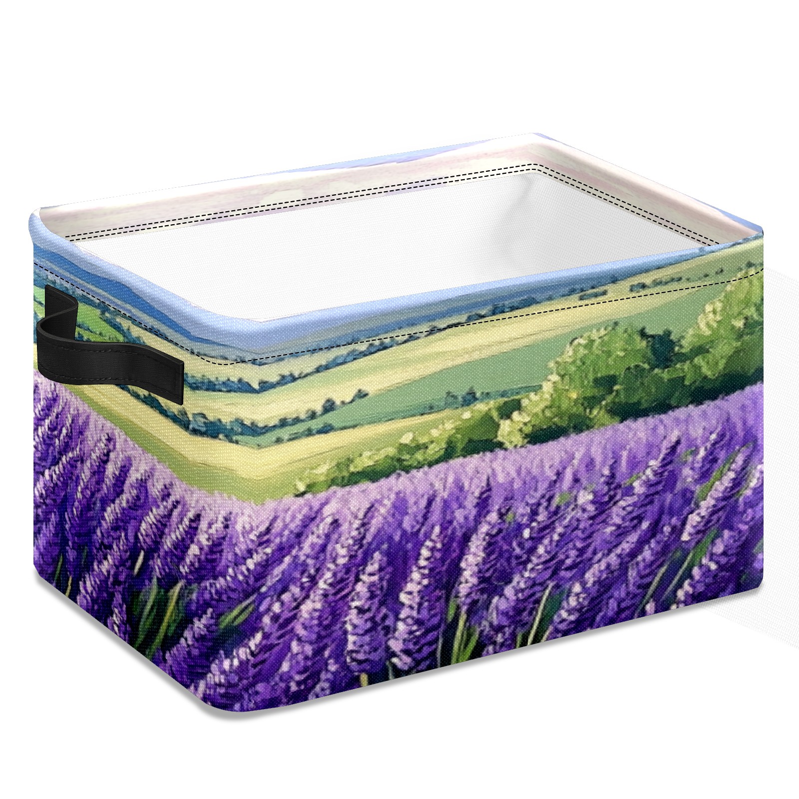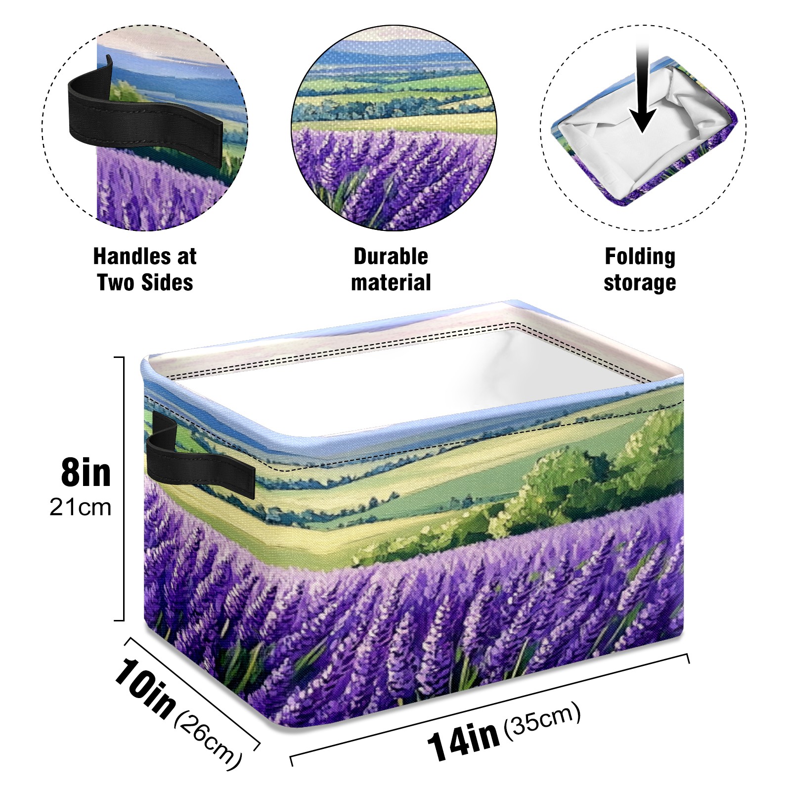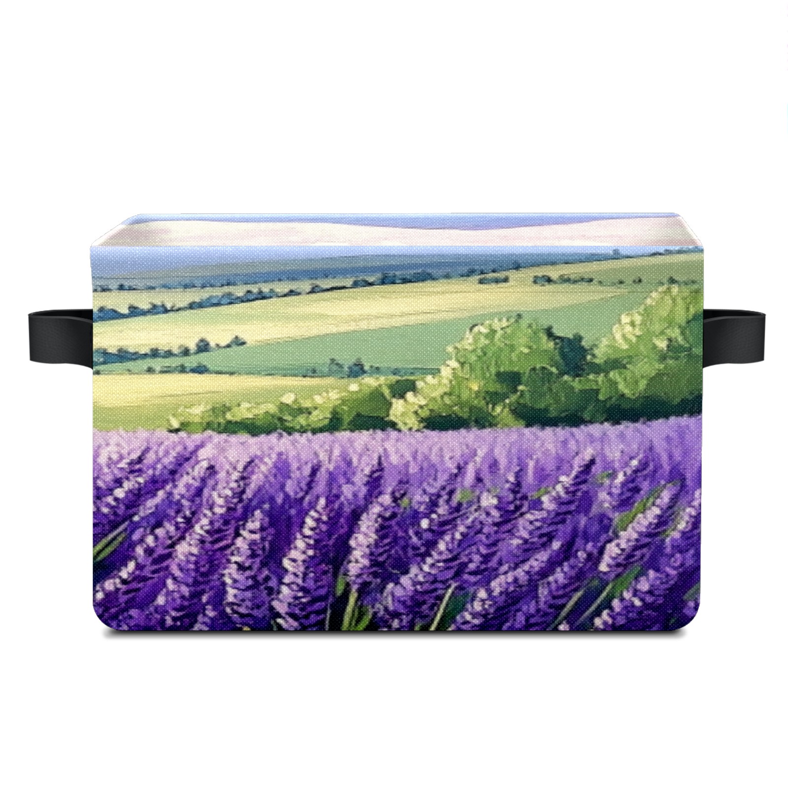 Foldable and Stackable Fabric Storage Basket for Home Organization with Handles, Decorative Closet Bins for Shelves, Laundry, and Toy Storage( Painting Lavender Field)