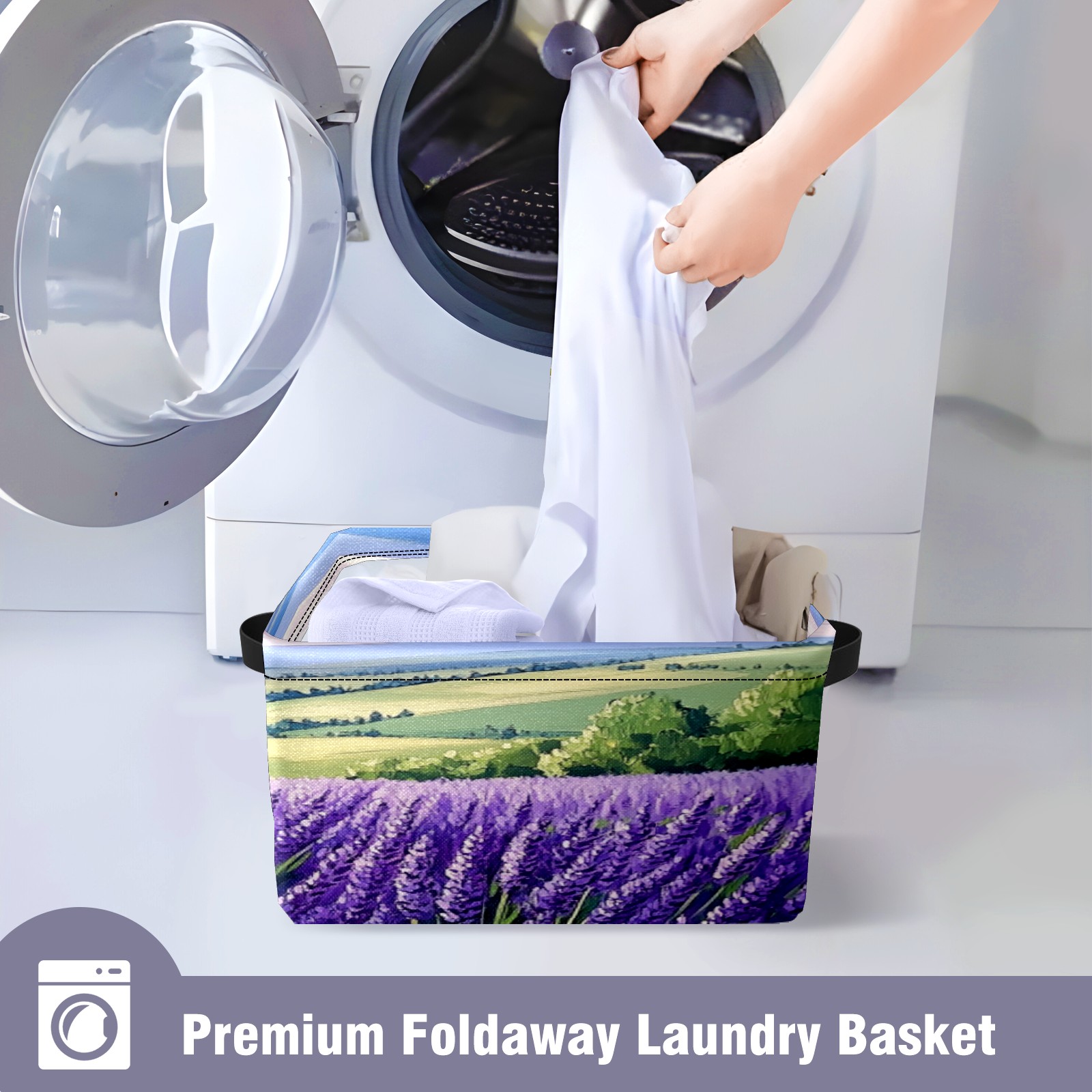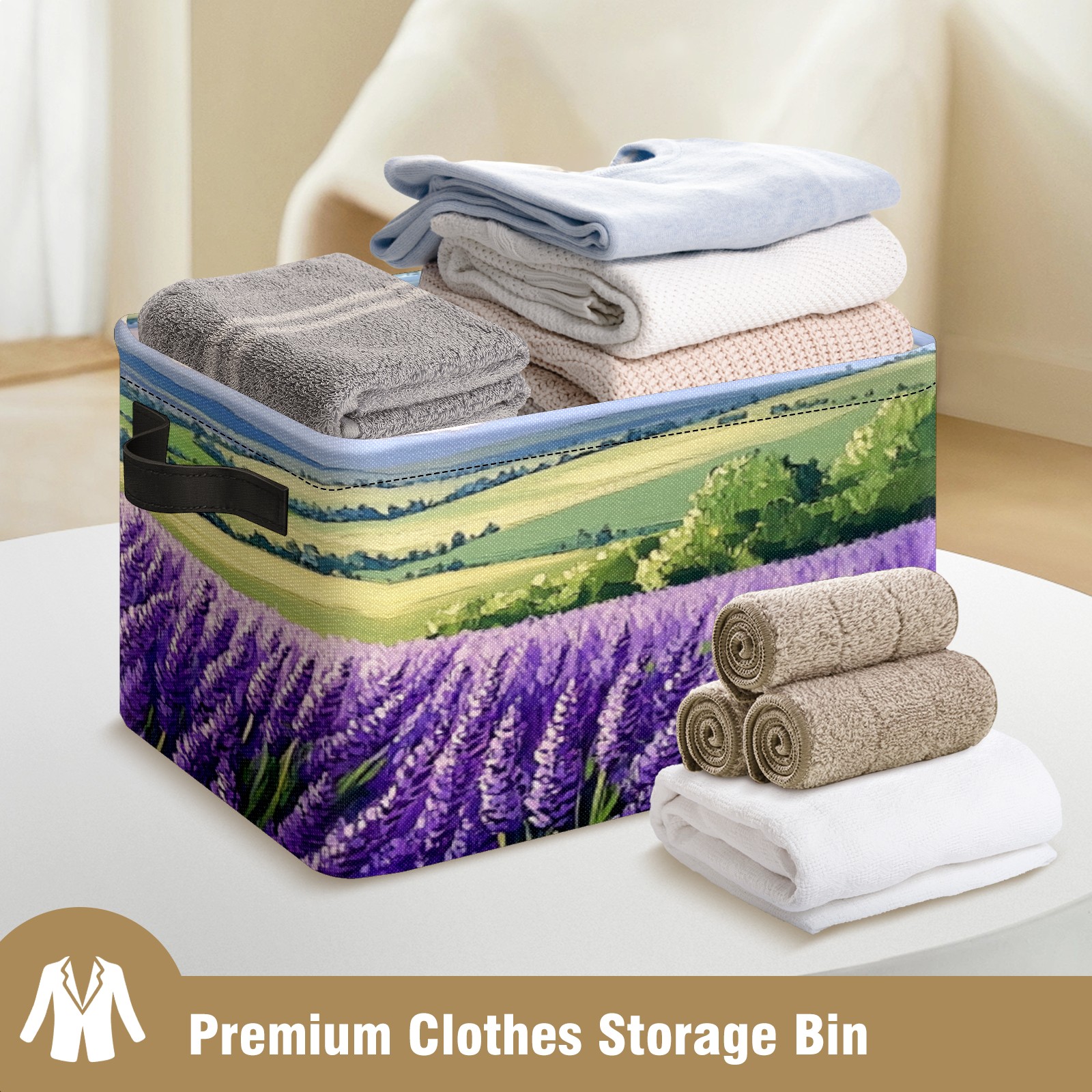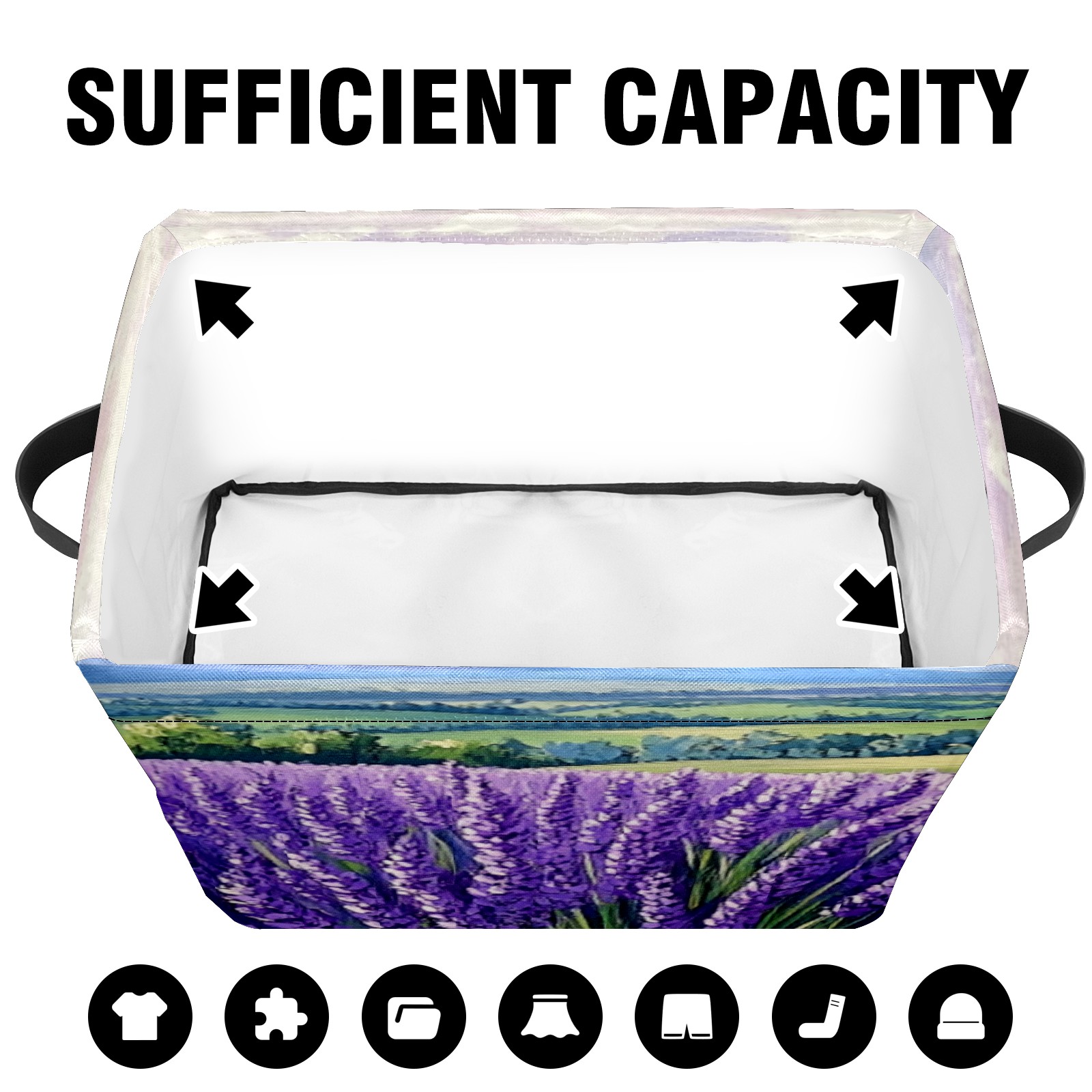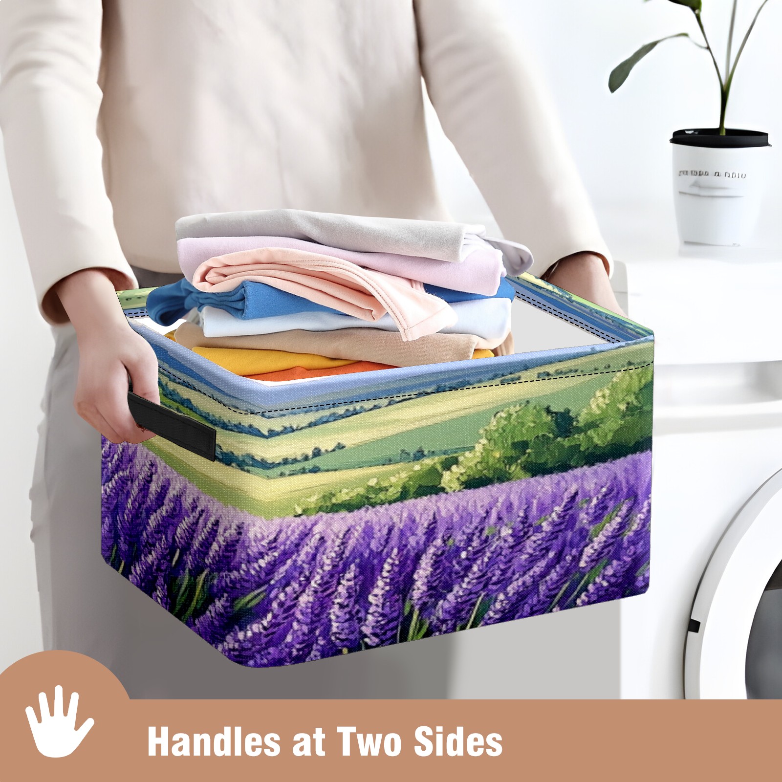 Foldable and Stackable Fabric Storage Basket for Home Organization with Handles, Decorative Closet Bins for Shelves, Laundry, and Toy Storage( Painting Lavender Field)