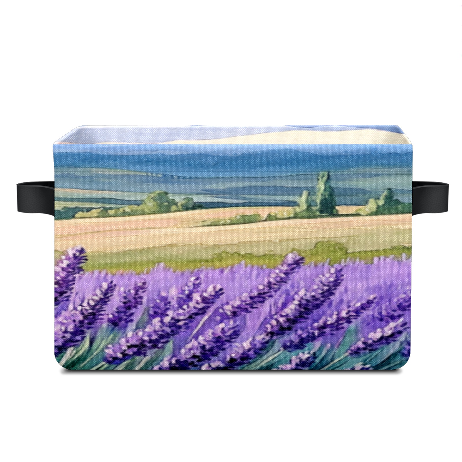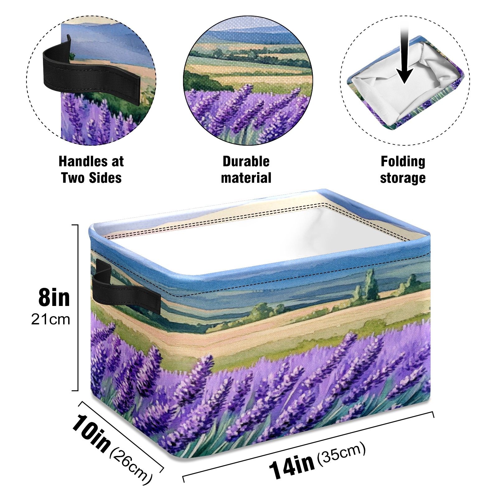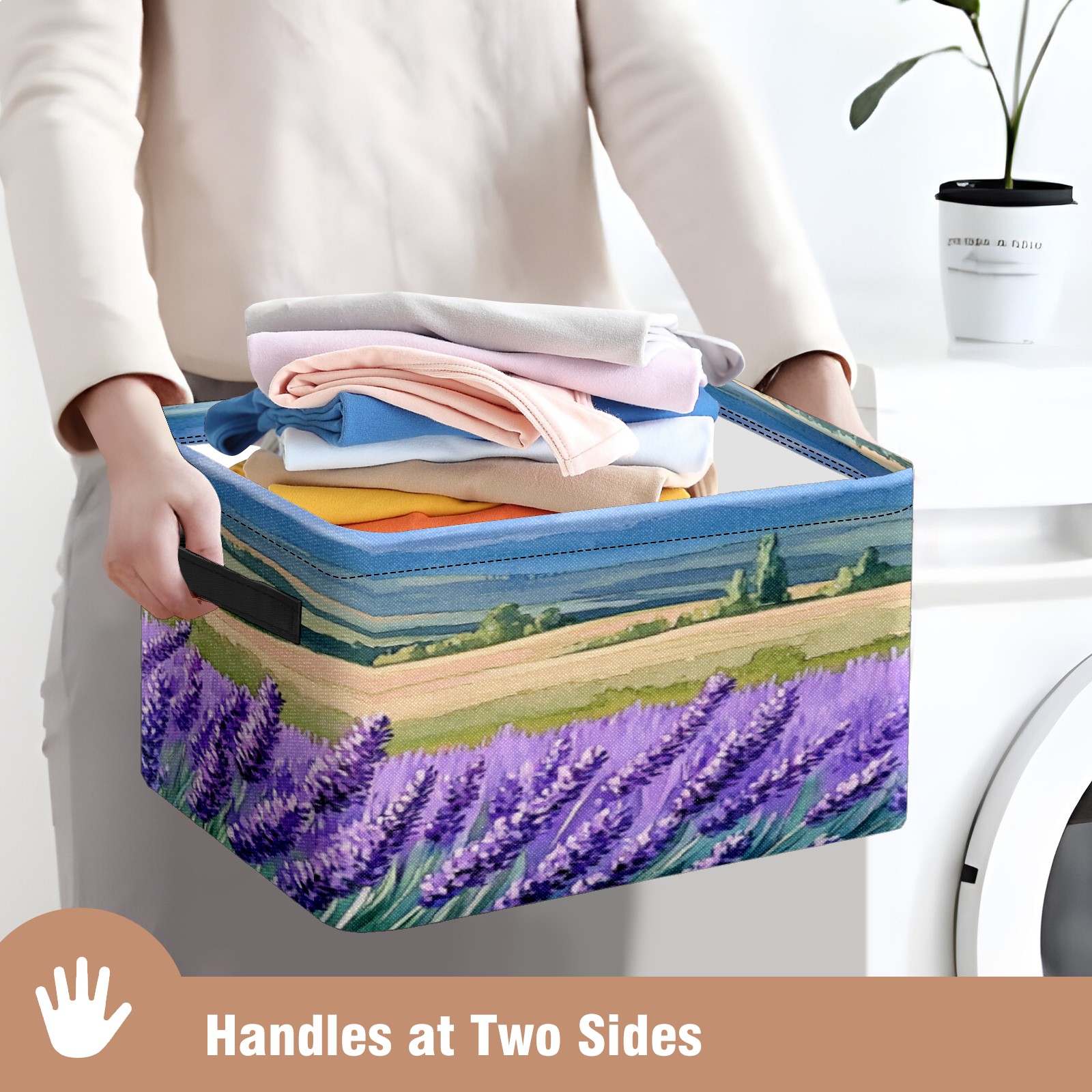 Foldable and Stackable Fabric Storage Basket for Home Organization with Handles, Decorative Closet Bins for Shelves, Laundry, and Toy Storage( Lavender Field Painting)