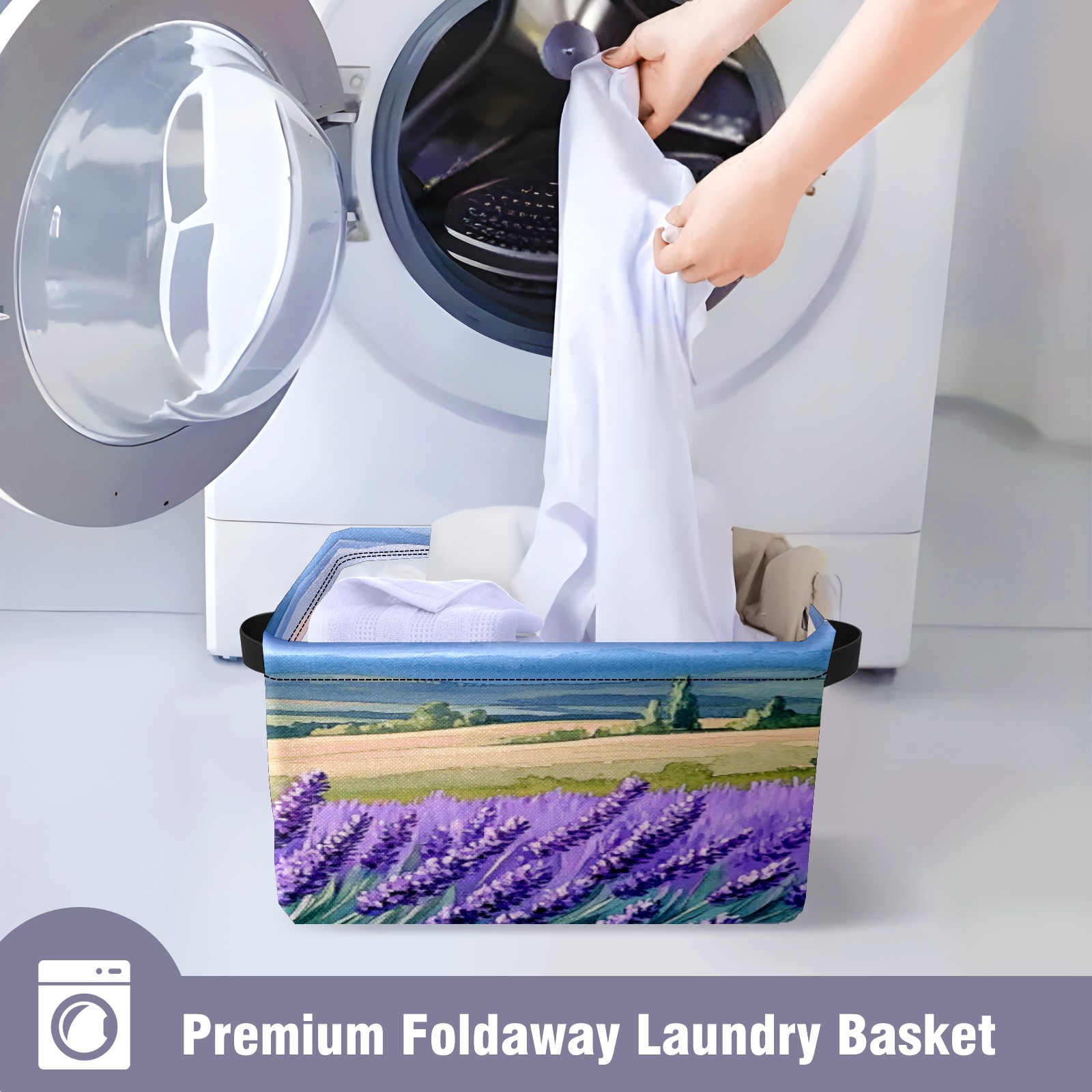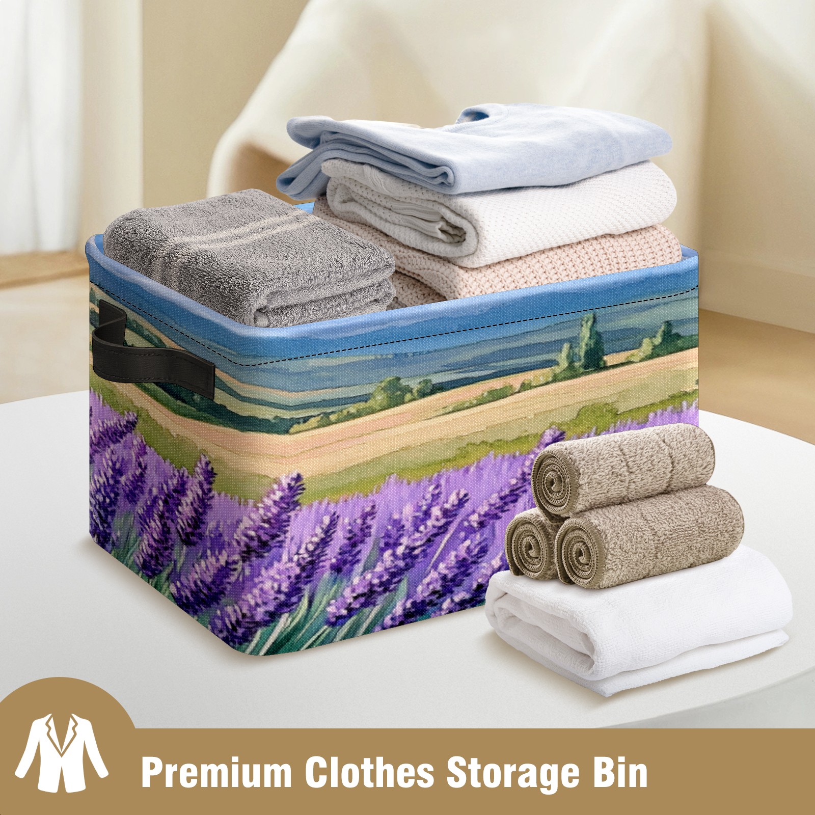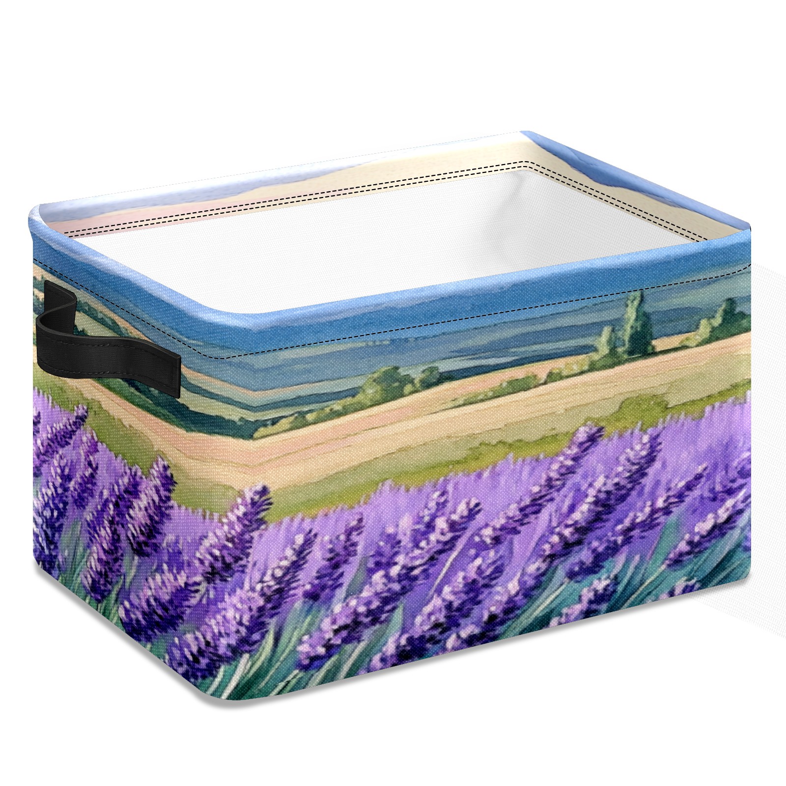 Foldable and Stackable Fabric Storage Basket for Home Organization with Handles, Decorative Closet Bins for Shelves, Laundry, and Toy Storage( Lavender Field Painting)