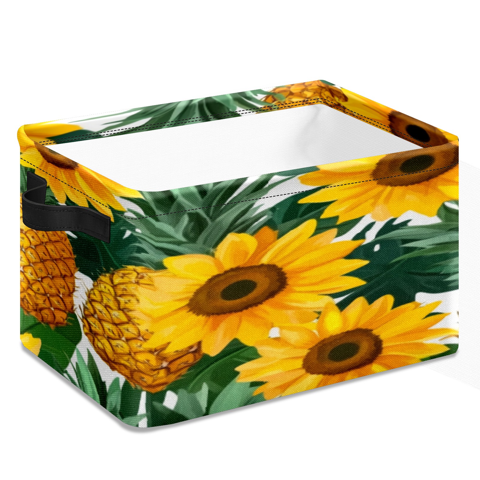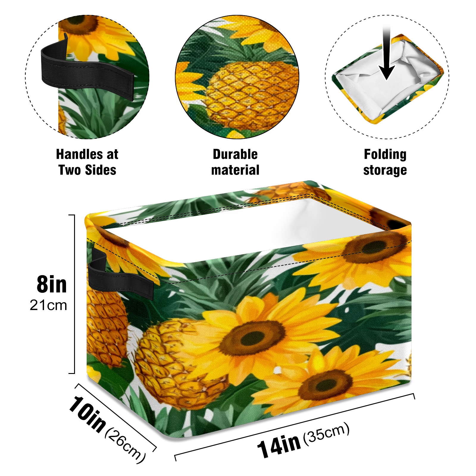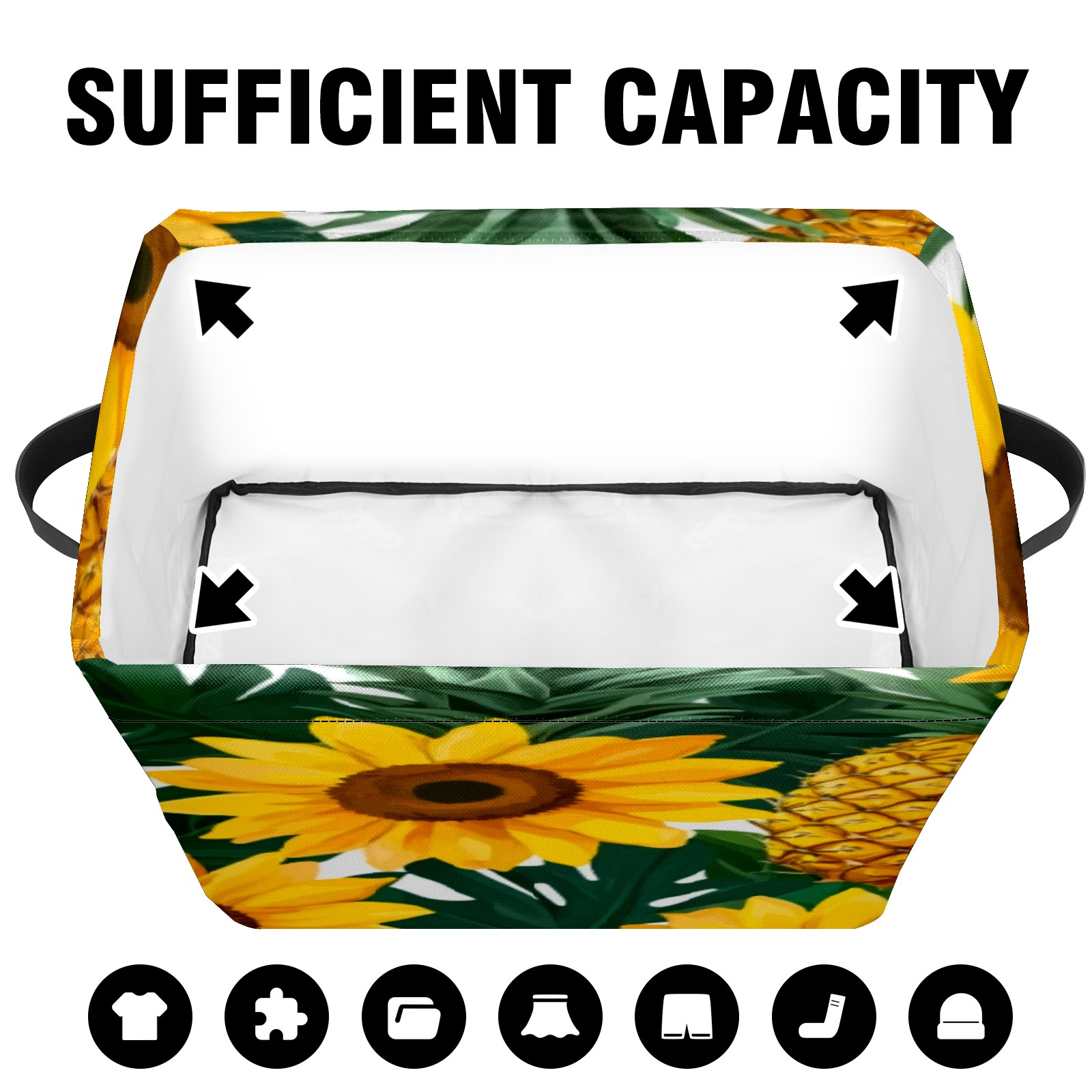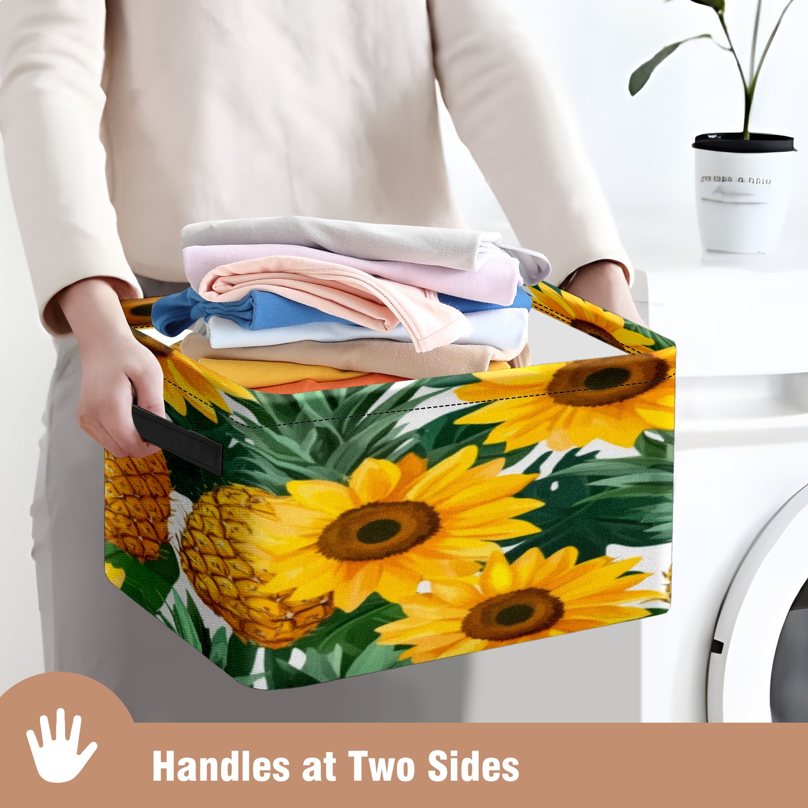 Foldable and Stackable Fabric Storage Basket for Home Organization with Handles, Decorative Closet Bins for Shelves, Laundry, and Toy Storage( Pineapples Sunflowers)
