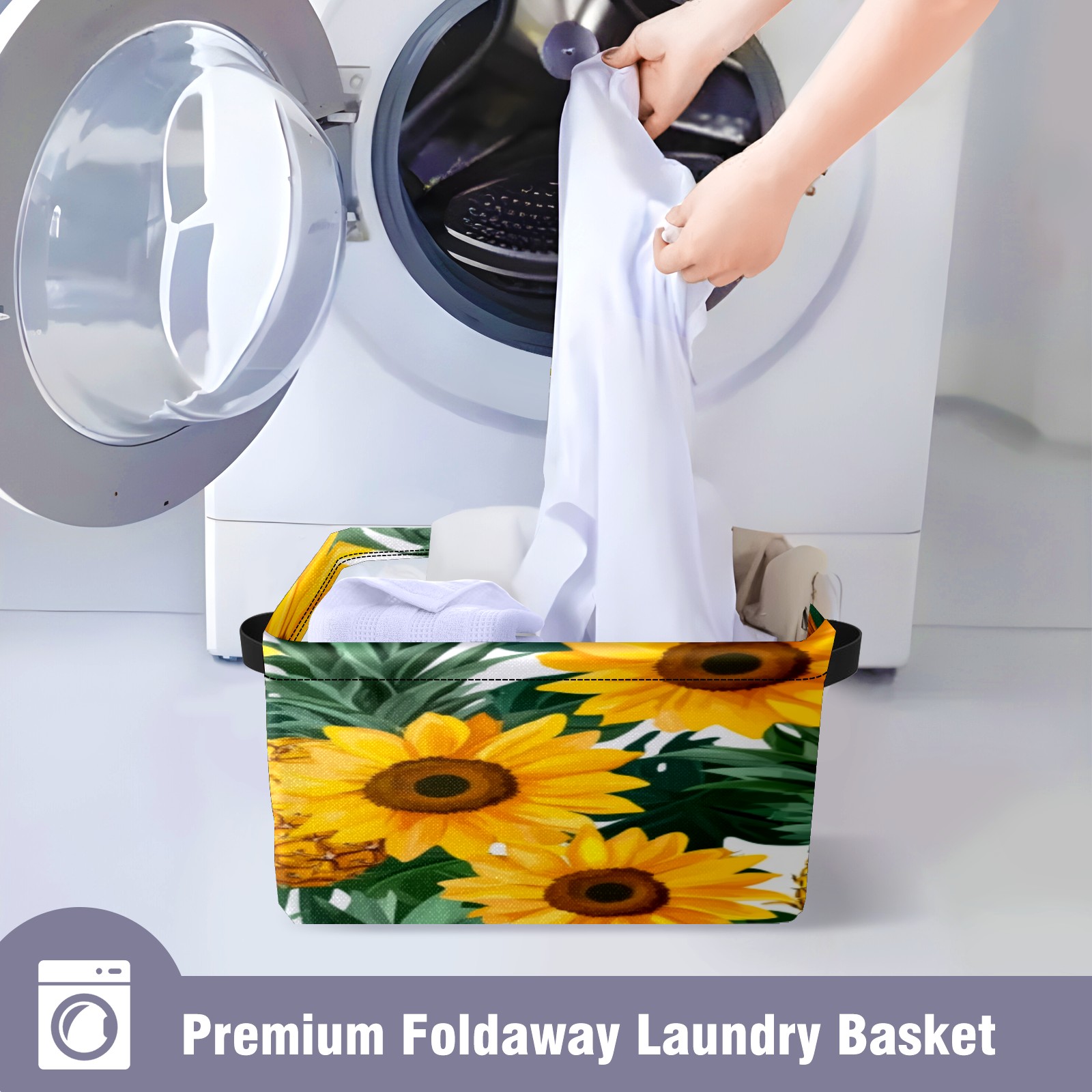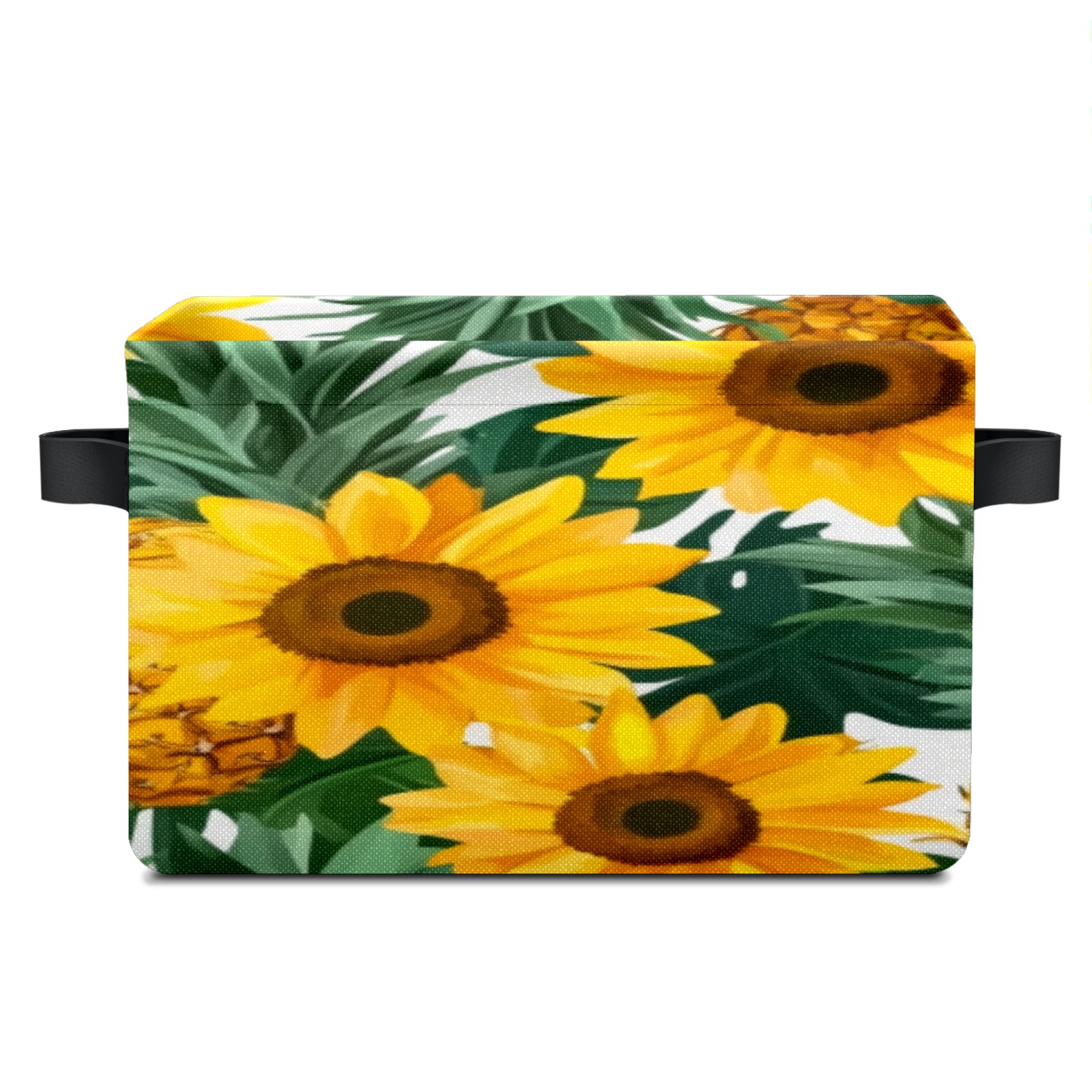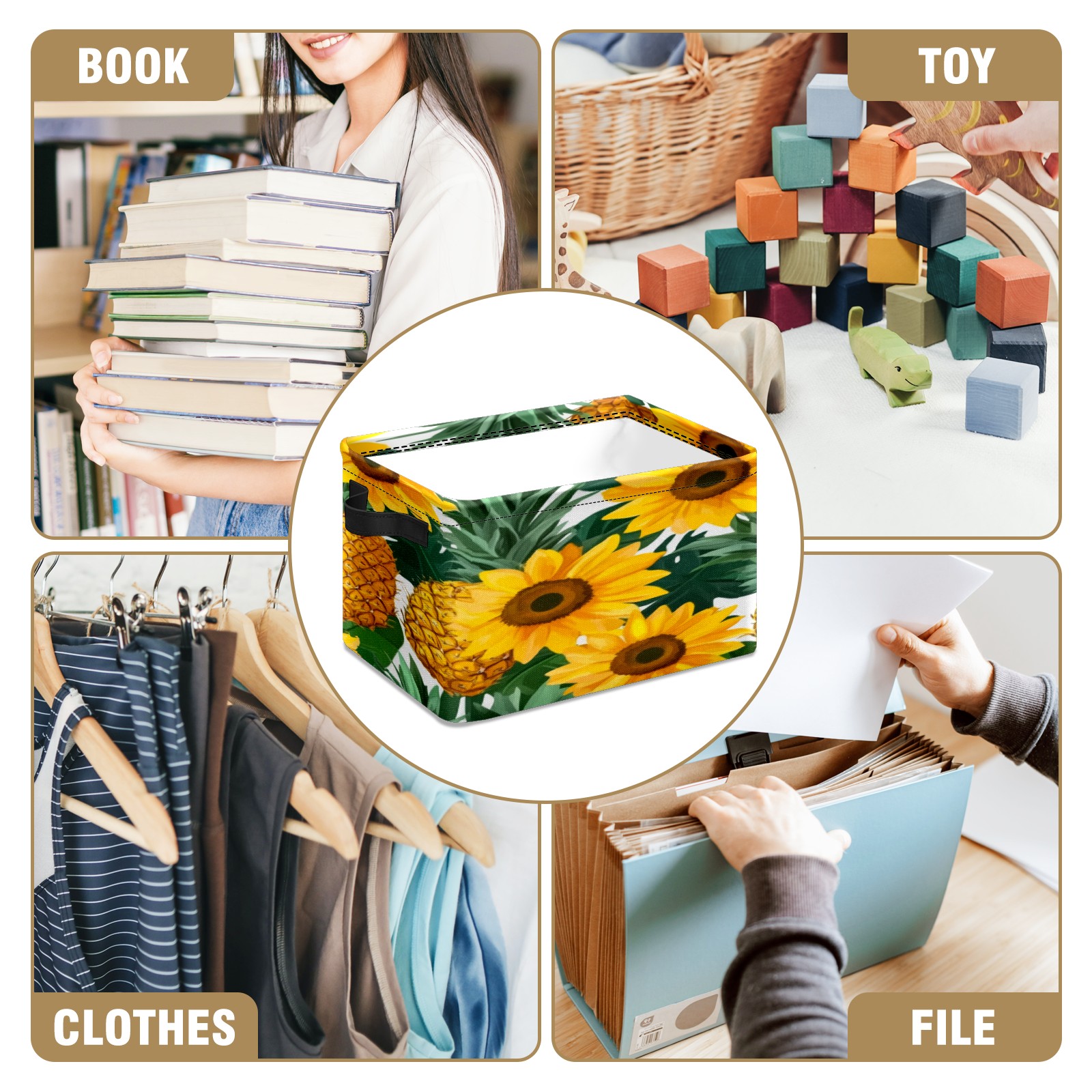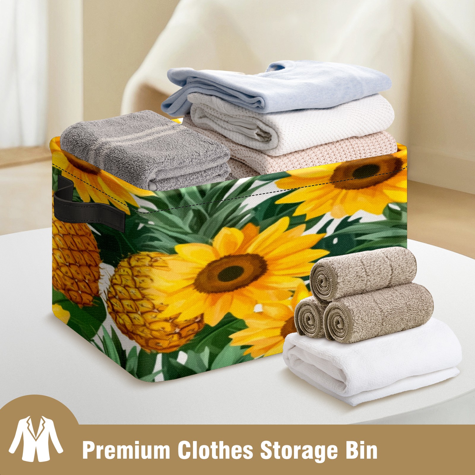 Foldable and Stackable Fabric Storage Basket for Home Organization with Handles, Decorative Closet Bins for Shelves, Laundry, and Toy Storage( Pineapples Sunflowers)