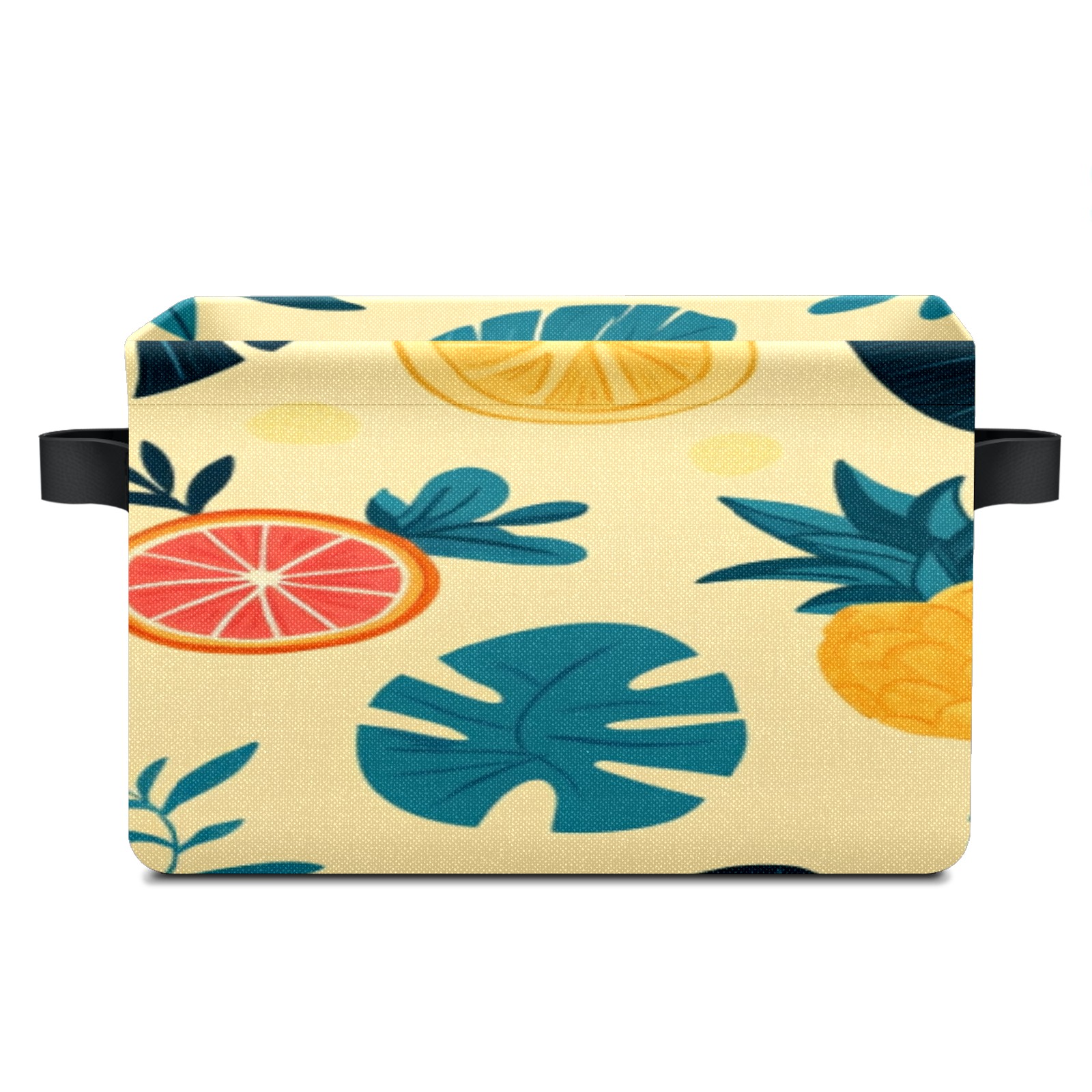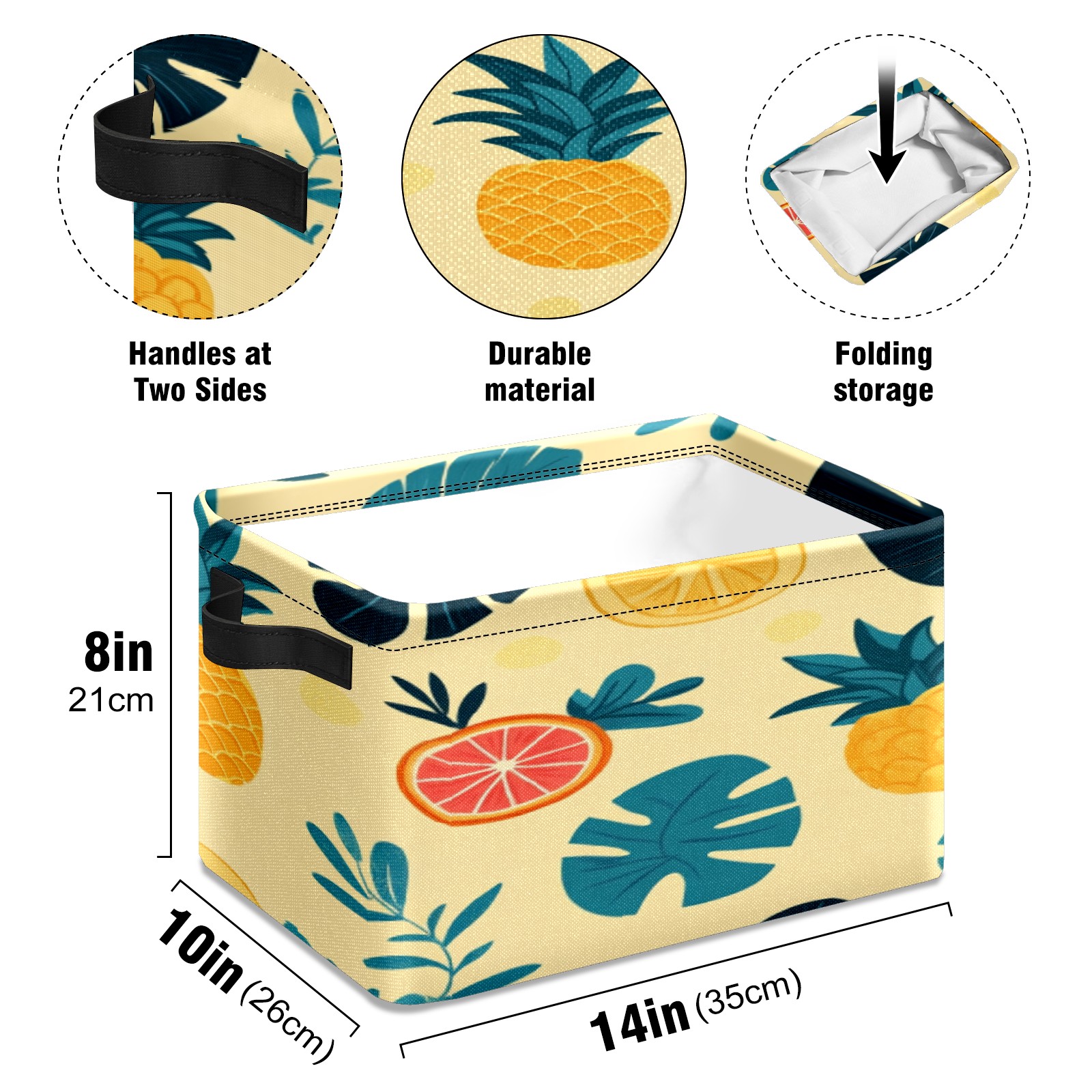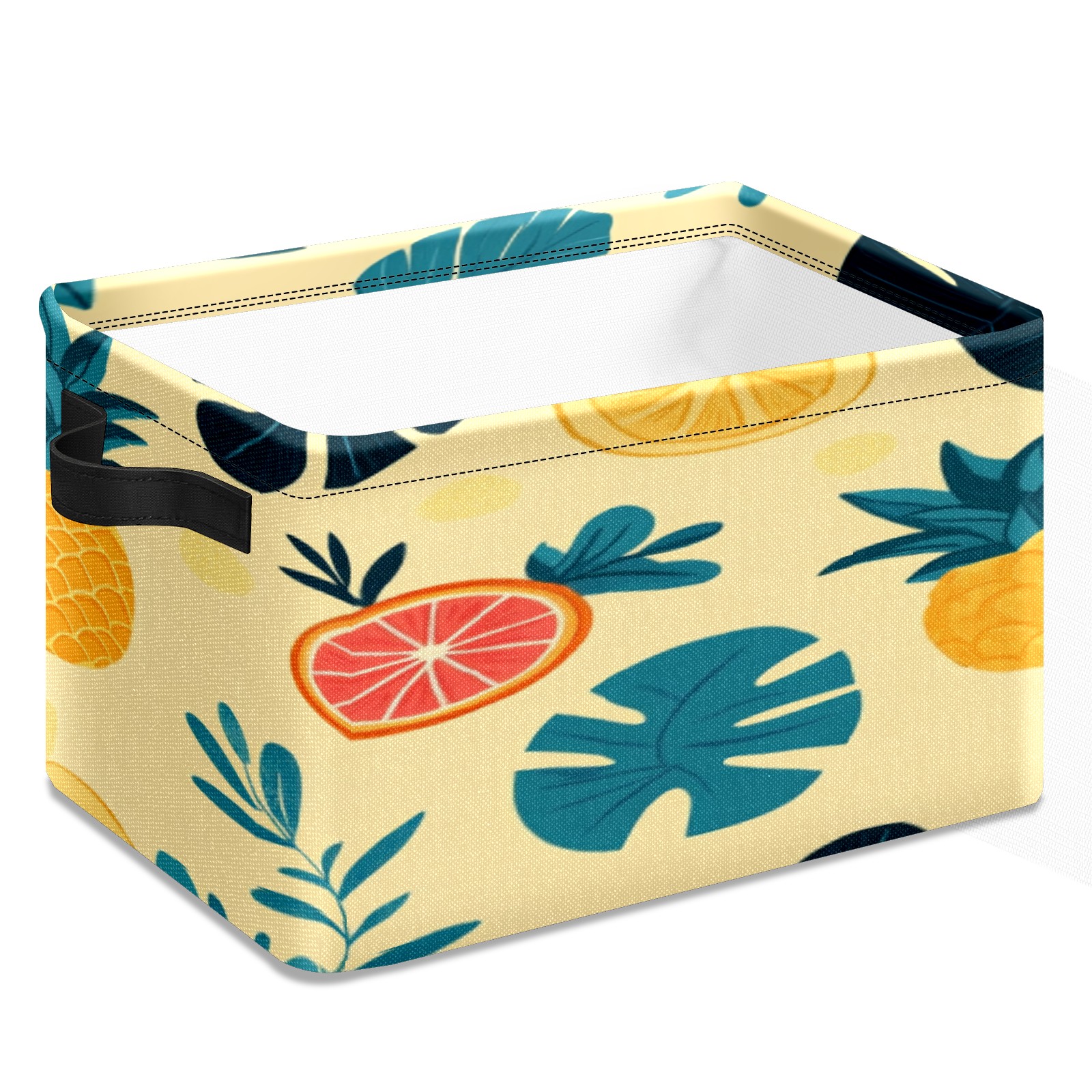 Foldable and Stackable Fabric Storage Basket for Home Organization with Handles, Decorative Closet Bins for Shelves, Laundry, and Toy Storage( Pineapples Tropical Leaves)