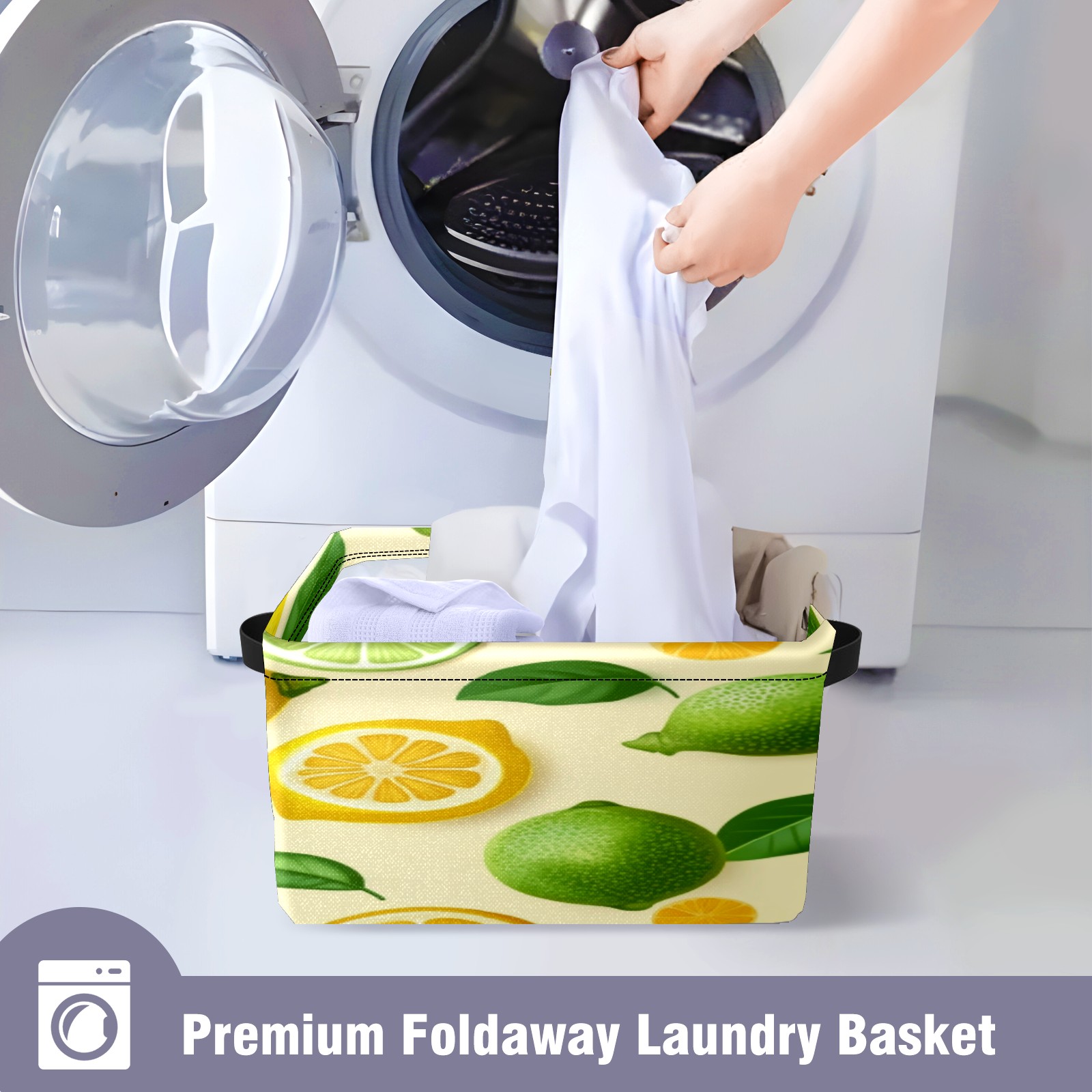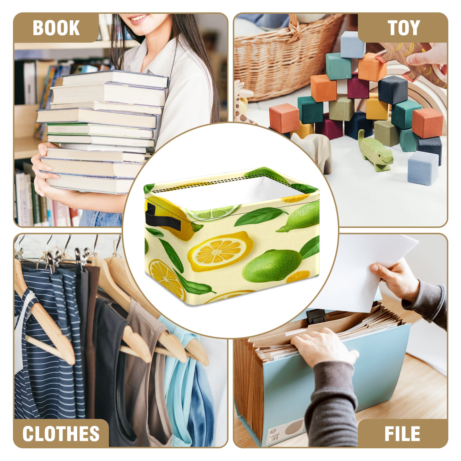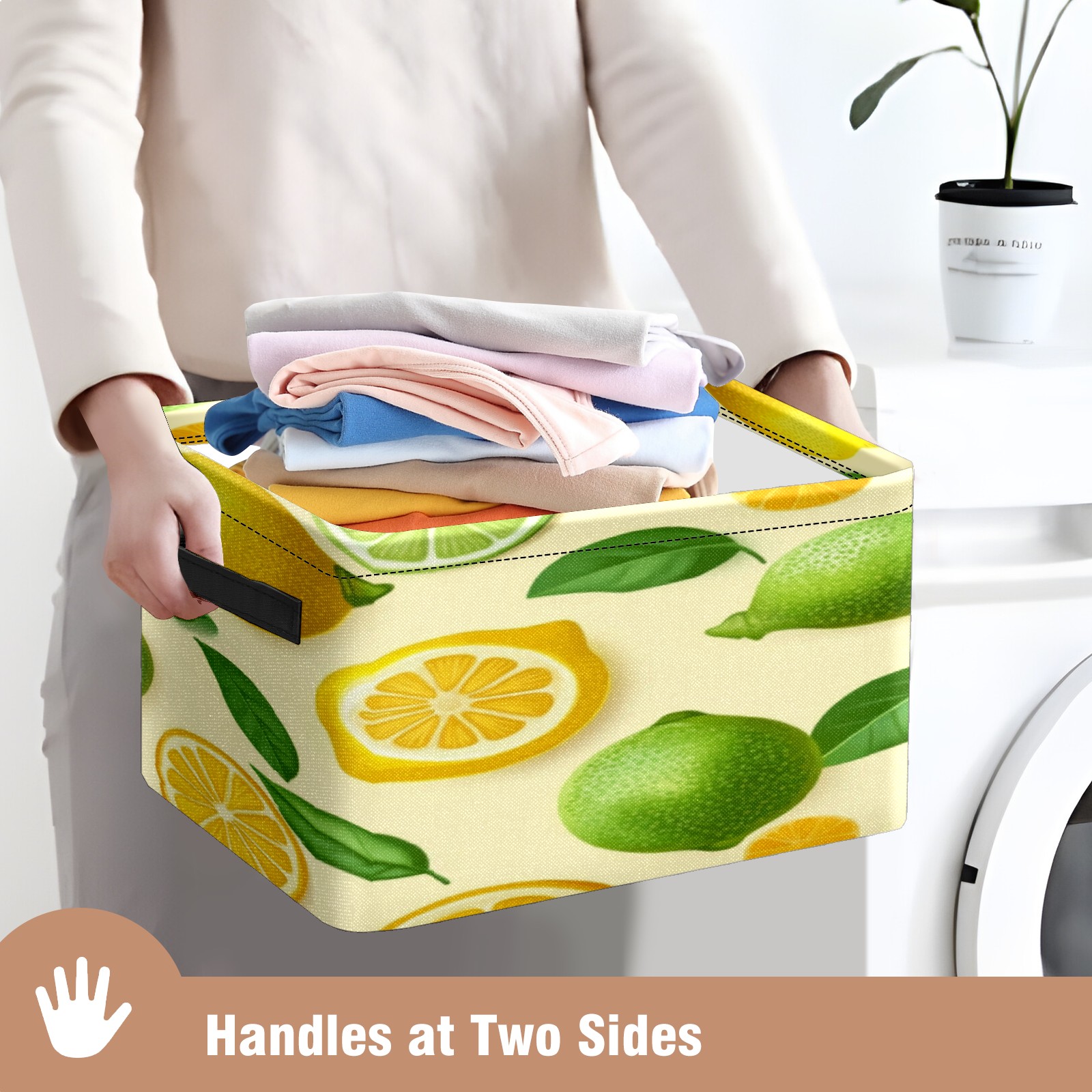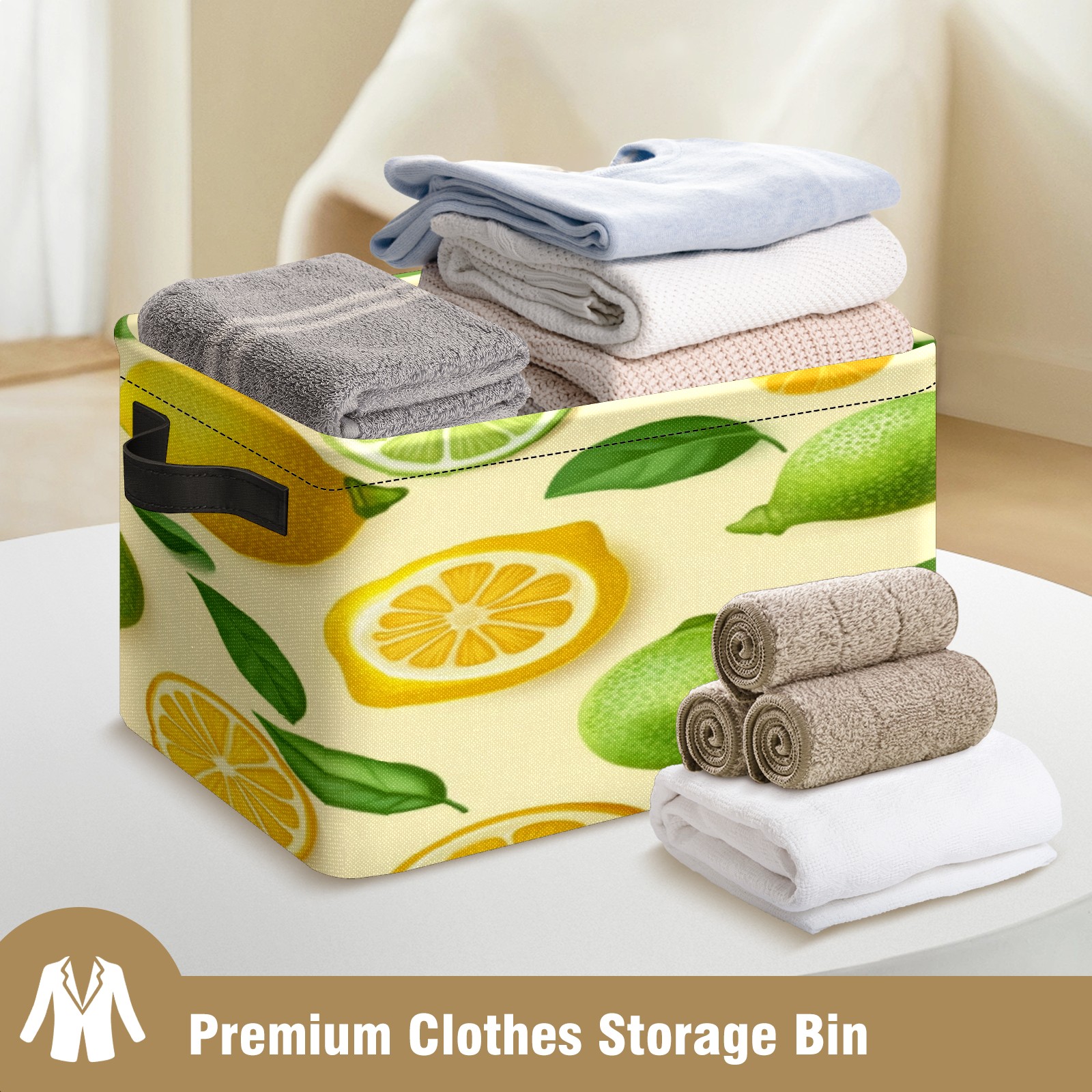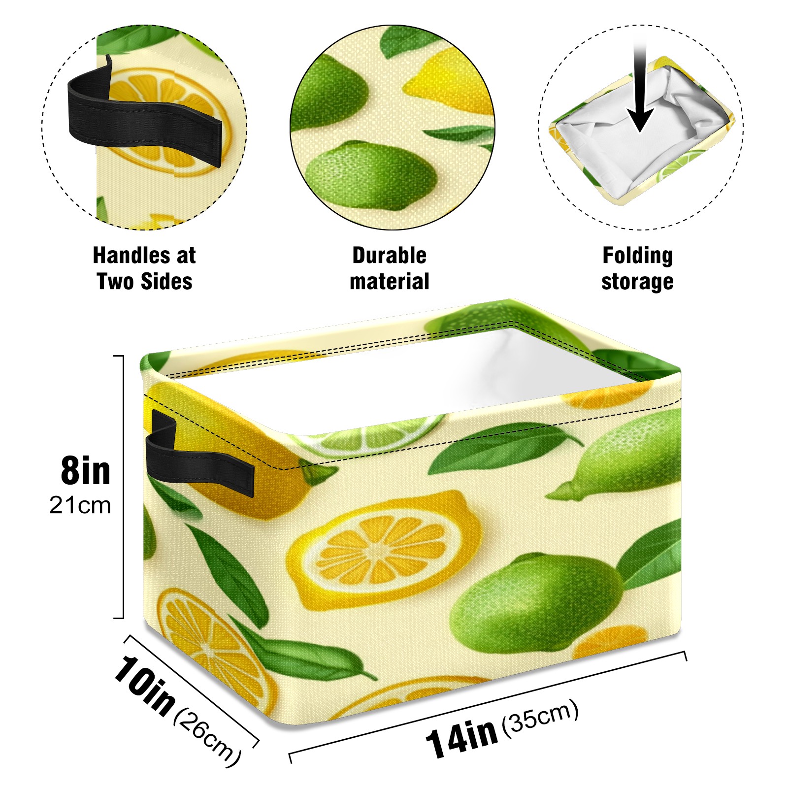 Foldable and Stackable Fabric Storage Basket for Home Organization with Handles, Decorative Closet Bins for Shelves, Laundry, and Toy Storage( Lemons)