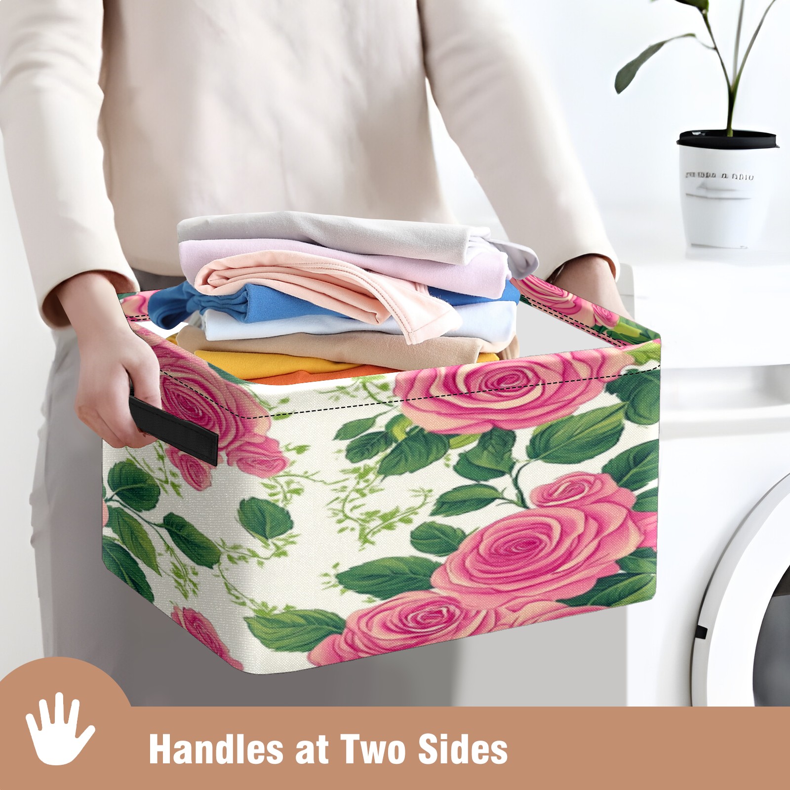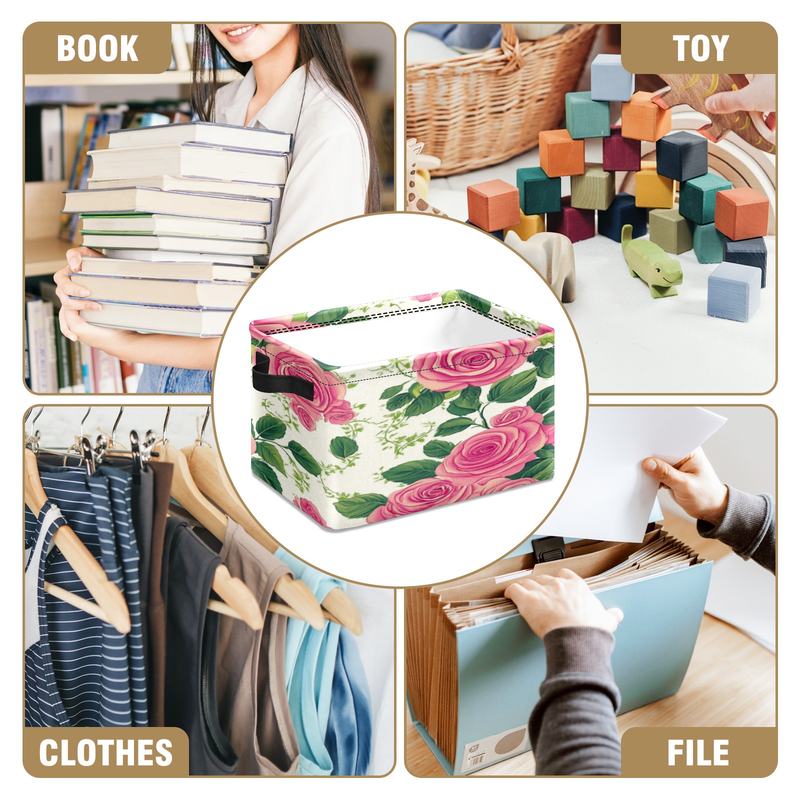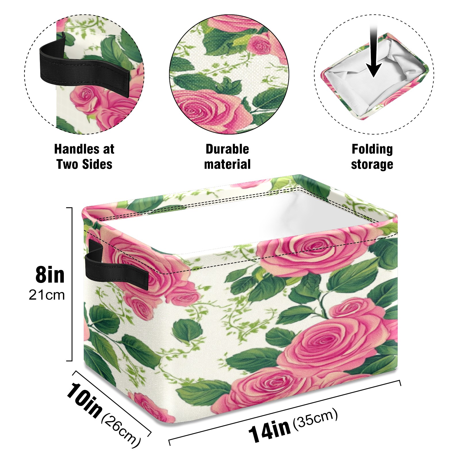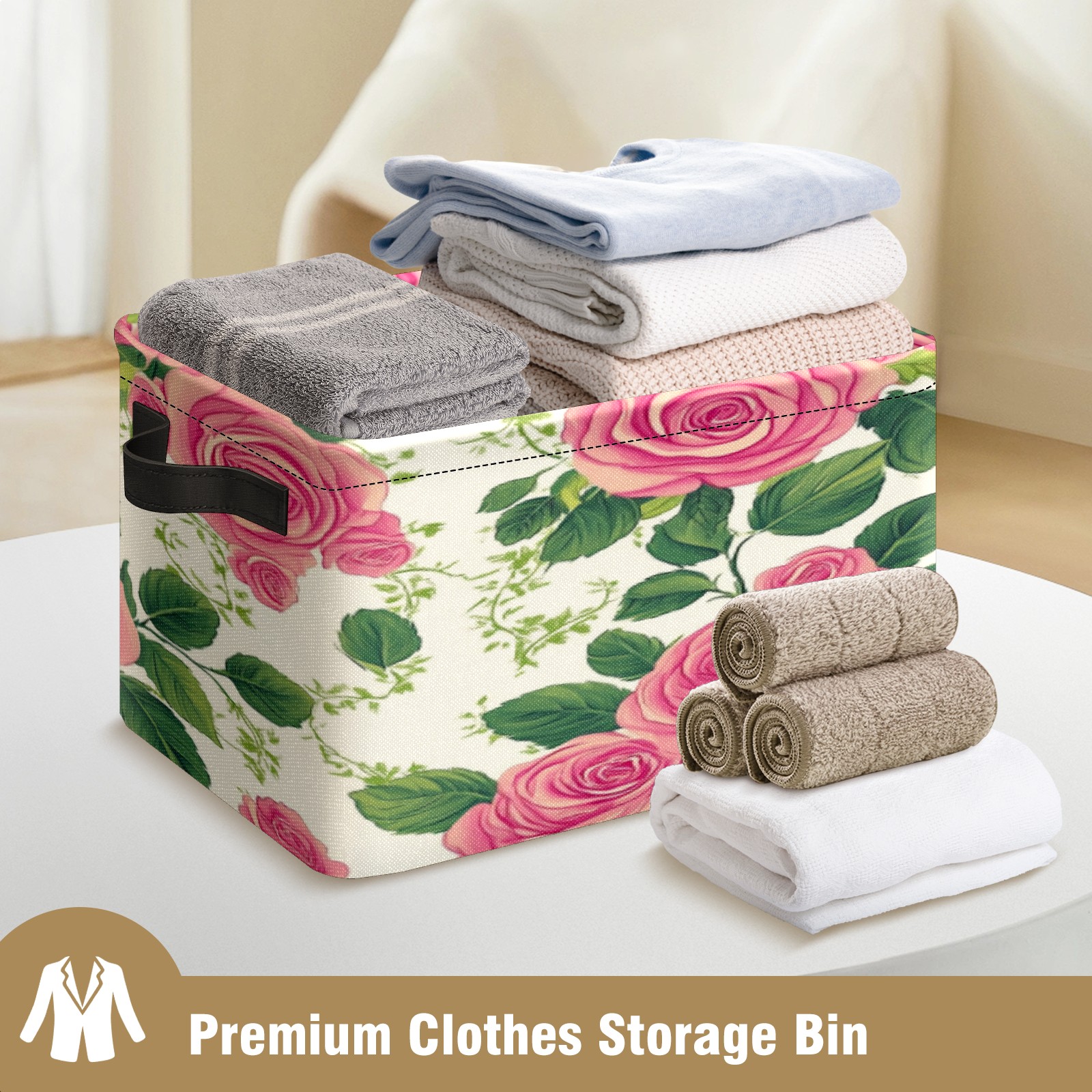 Foldable and Stackable Fabric Storage Basket for Home Organization with Handles, Decorative Closet Bins for Shelves, Laundry, and Toy Storage( Vintage Rose)