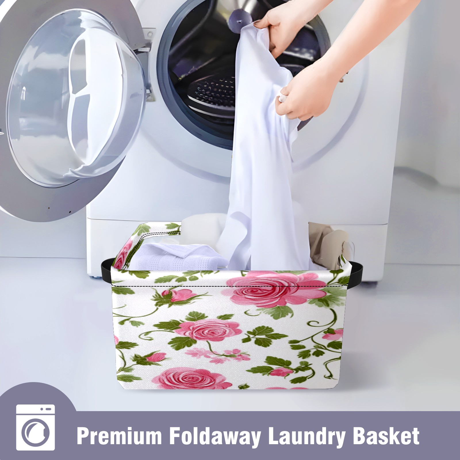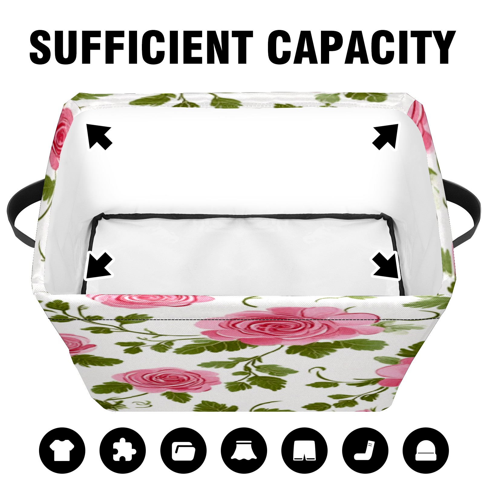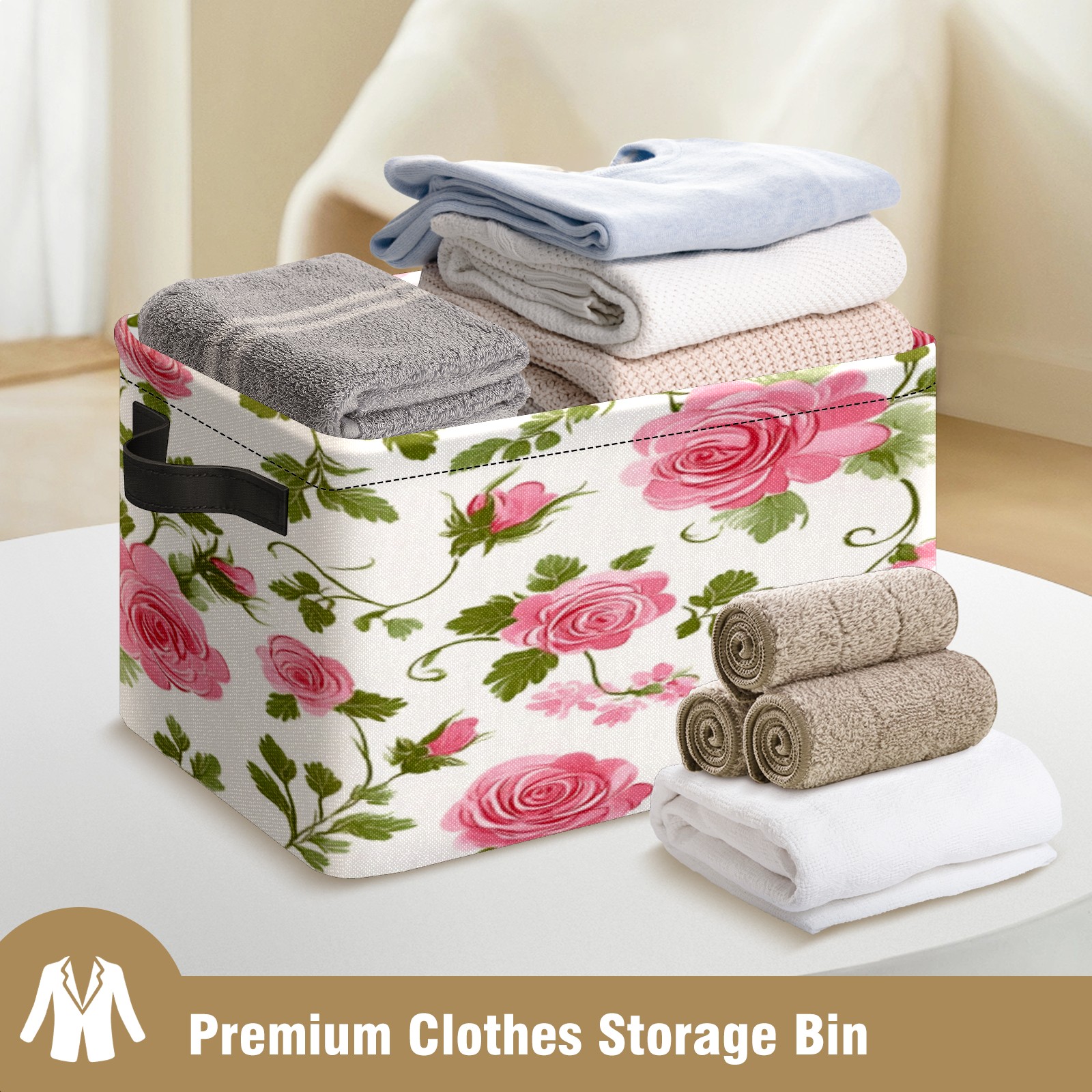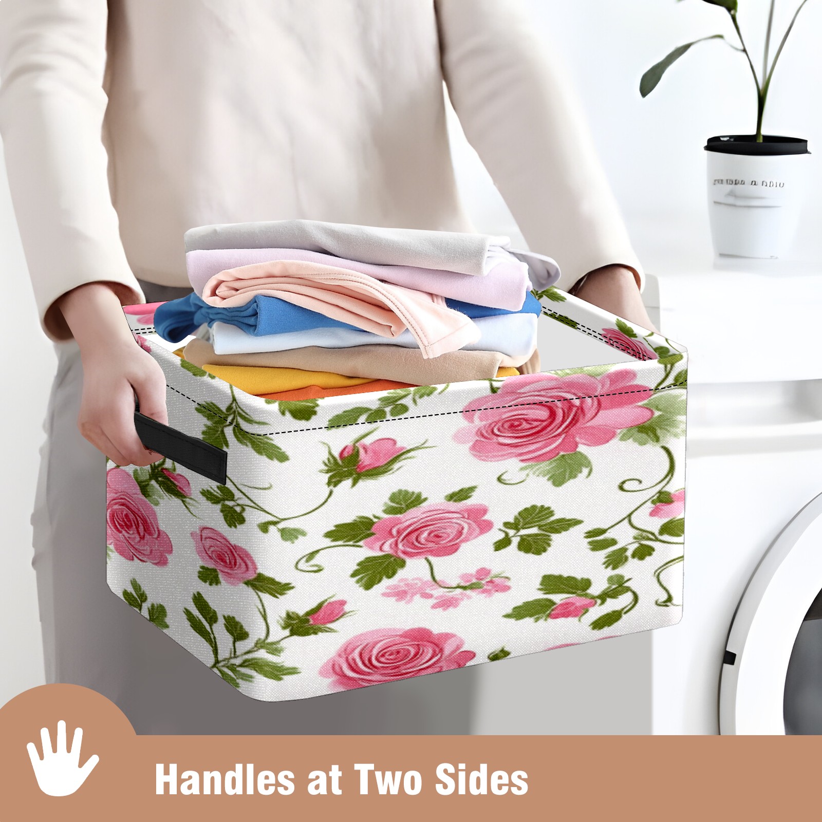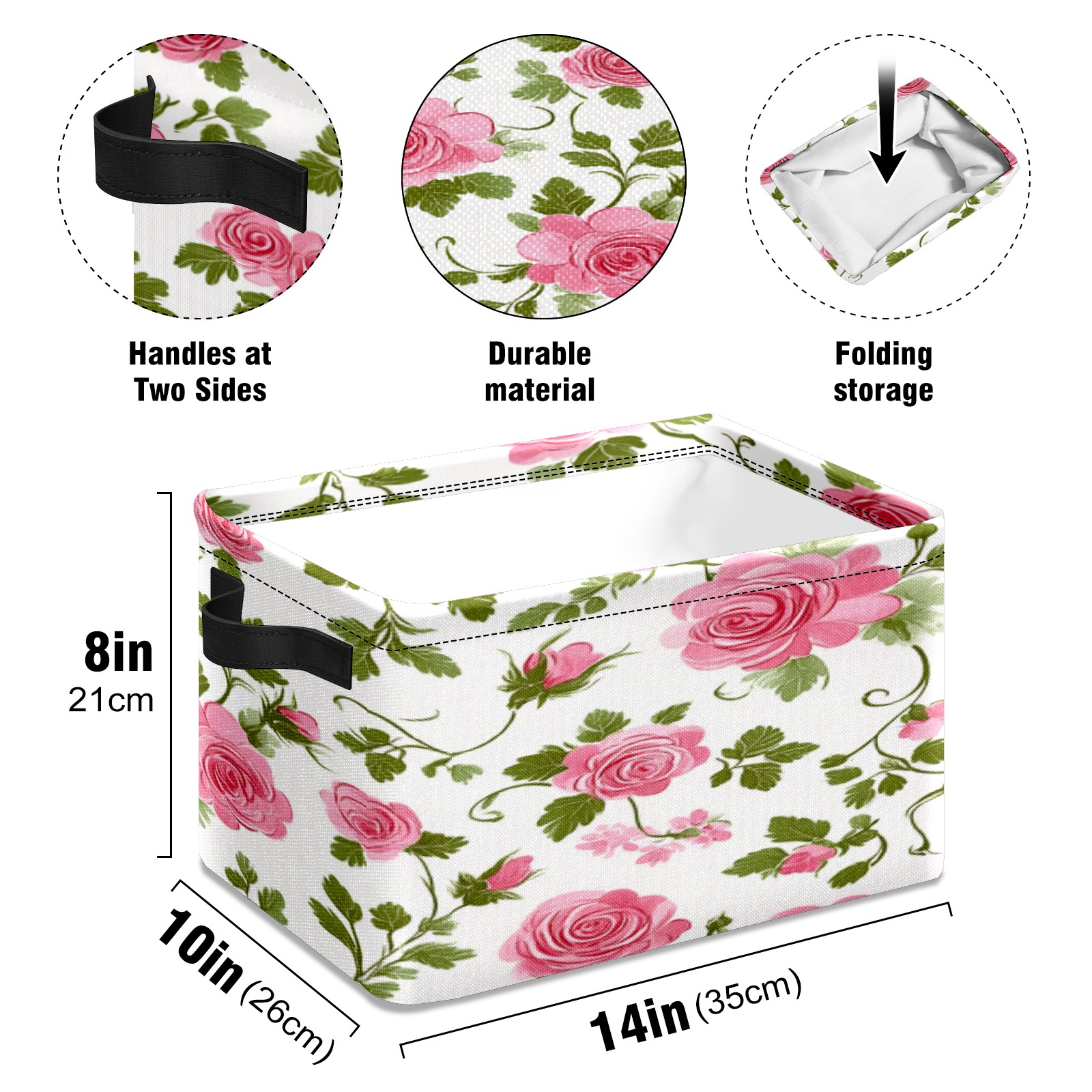 Foldable and Stackable Fabric Storage Basket for Home Organization with Handles, Decorative Closet Bins for Shelves, Laundry, and Toy Storage( Vintage Floral)