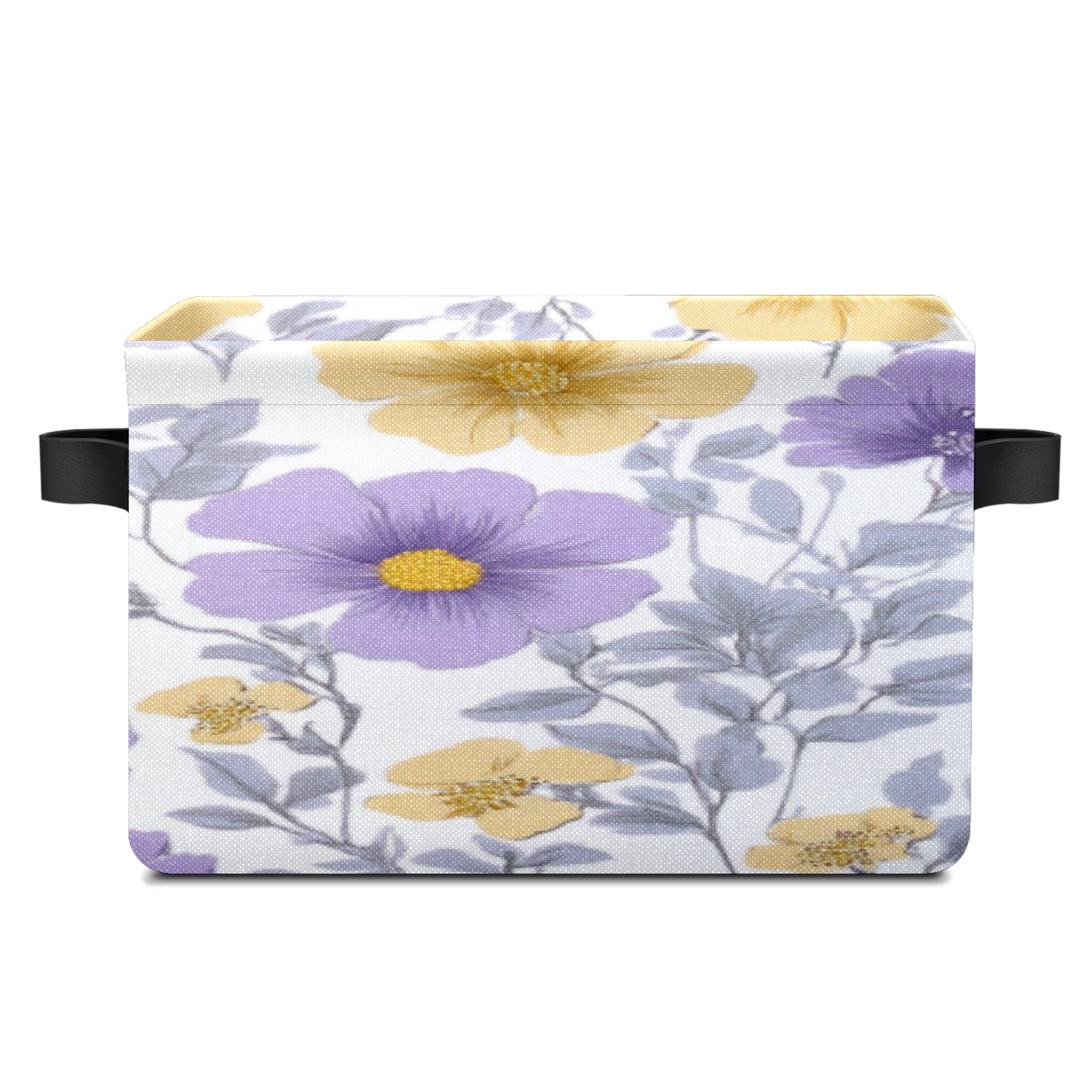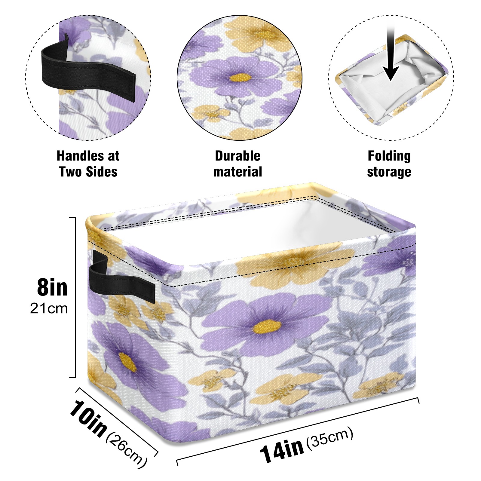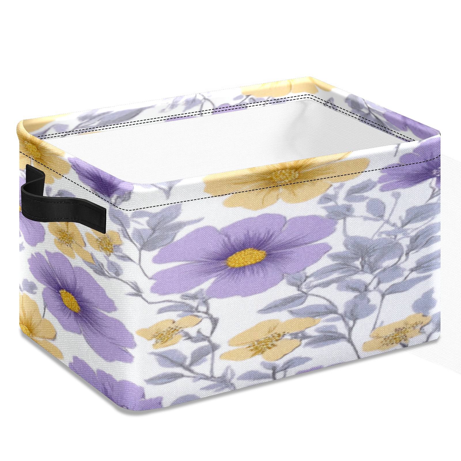 Foldable and Stackable Fabric Storage Basket for Home Organization with Handles, Decorative Closet Bins for Shelves, Laundry, and Toy Storage( Purple Yellow Flowers)