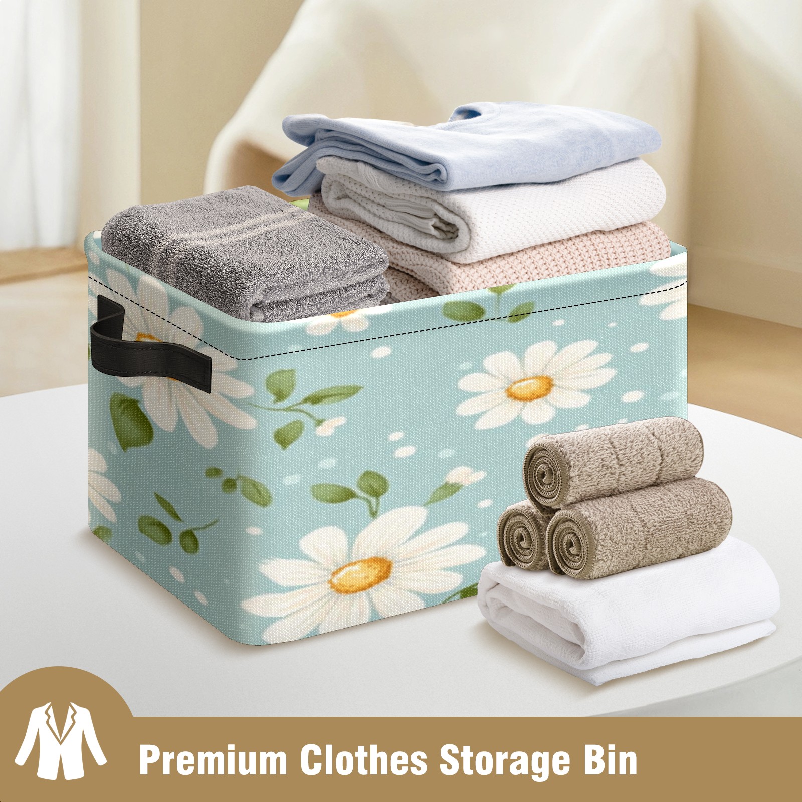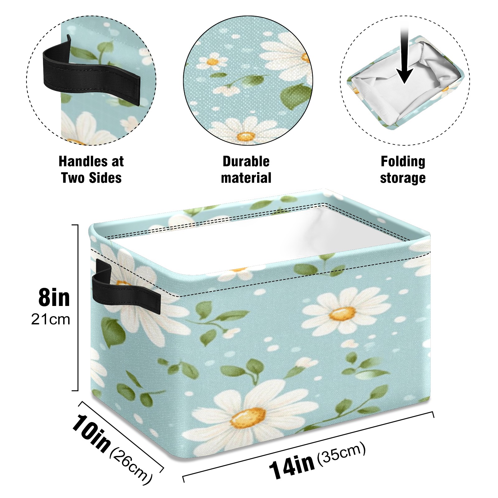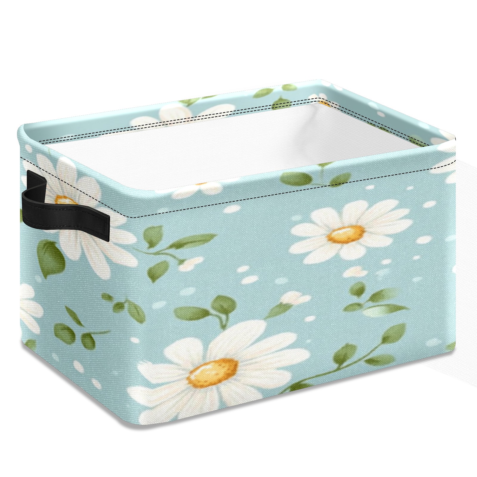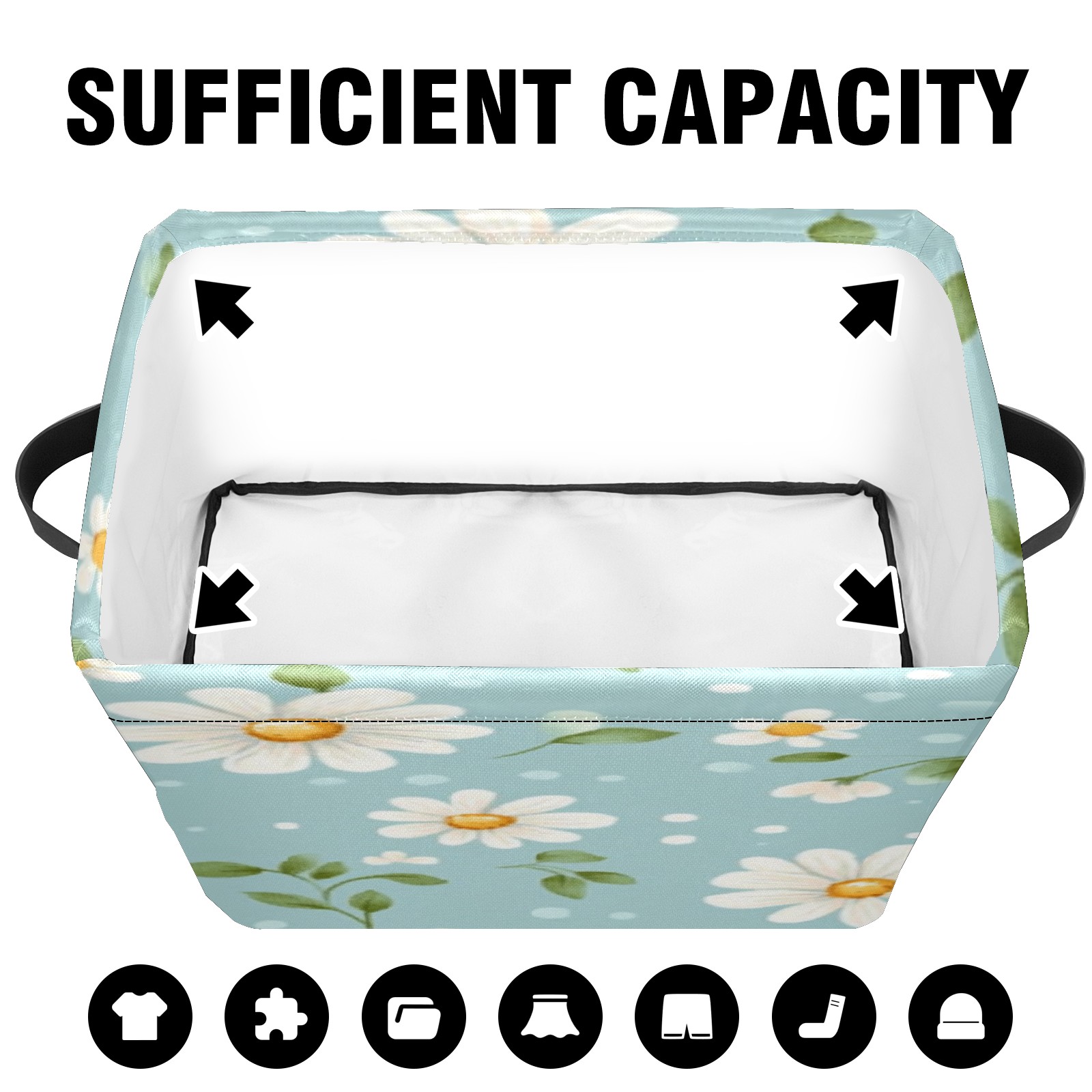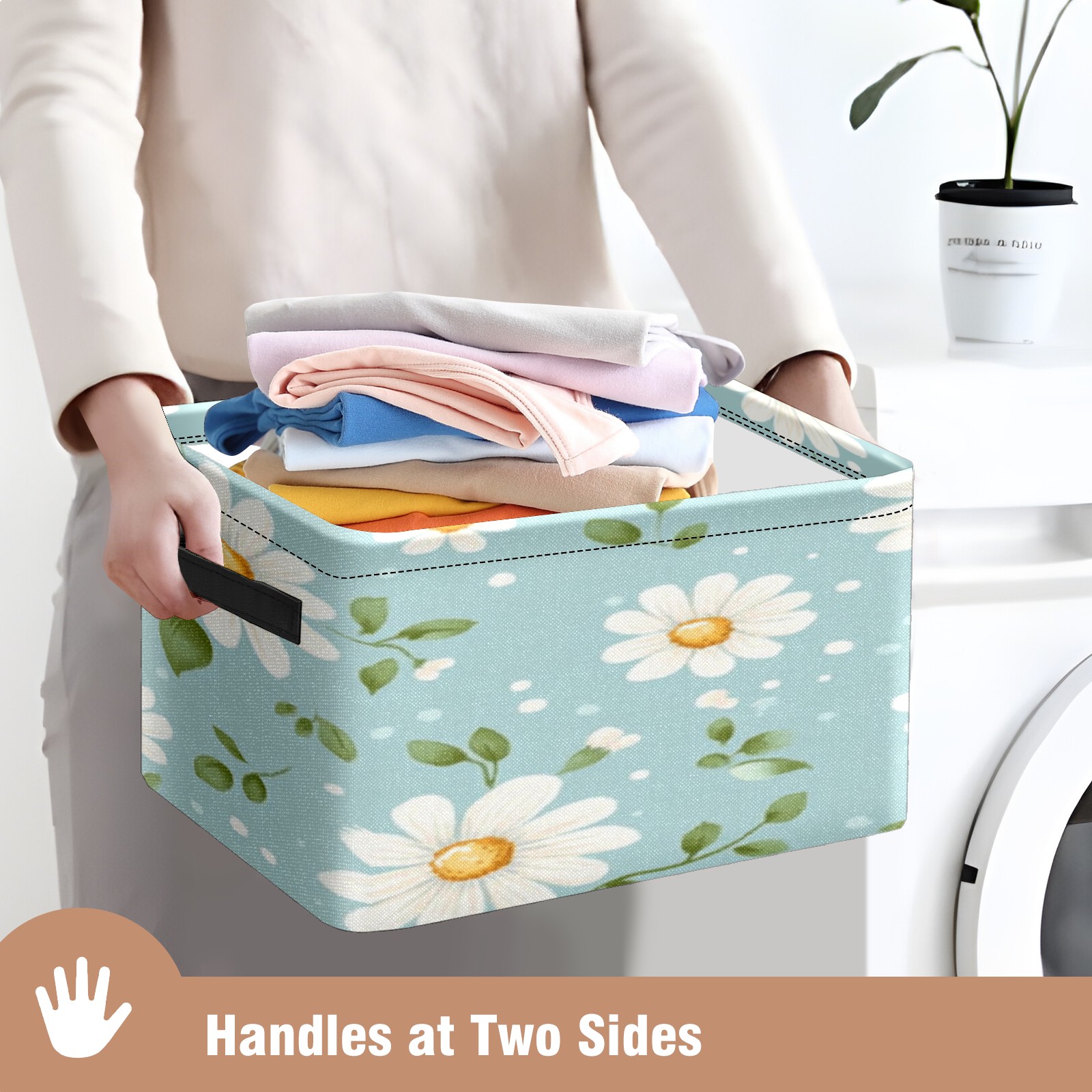 Foldable and Stackable Fabric Storage Basket for Home Organization with Handles, Decorative Closet Bins for Shelves, Laundry, and Toy Storage( Cute Daisie)