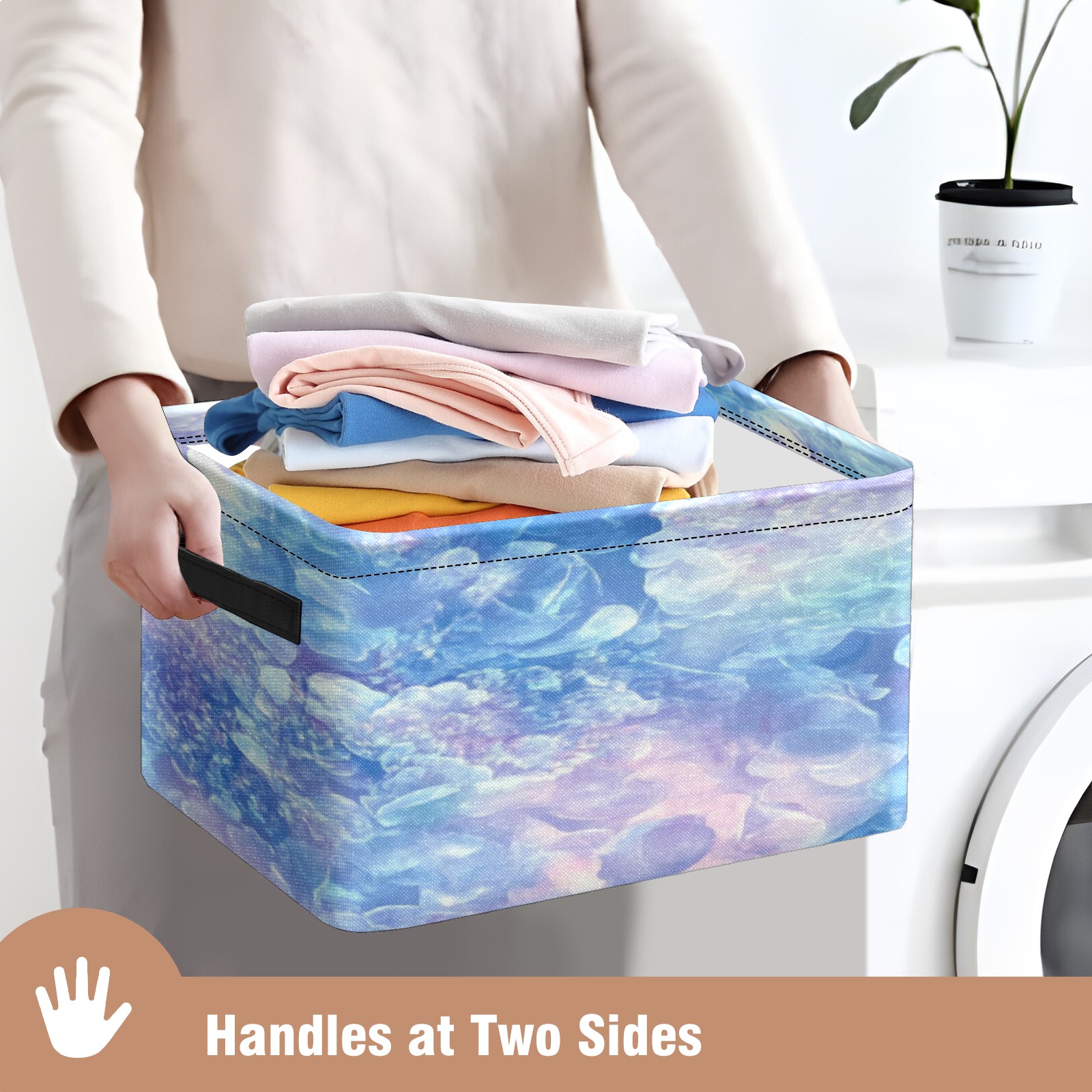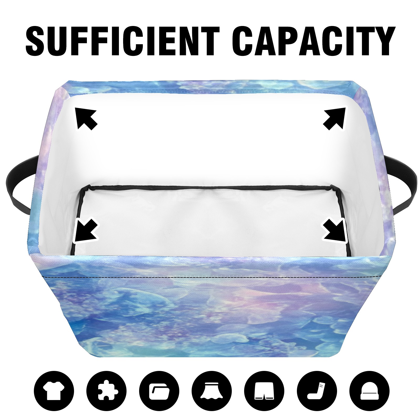 Foldable and Stackable Fabric Storage Basket for Home Organization with Handles, Decorative Closet Bins for Shelves, Laundry, and Toy Storage( Holographic Foil Printing)