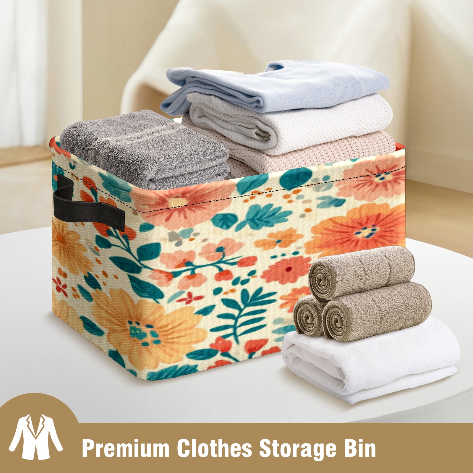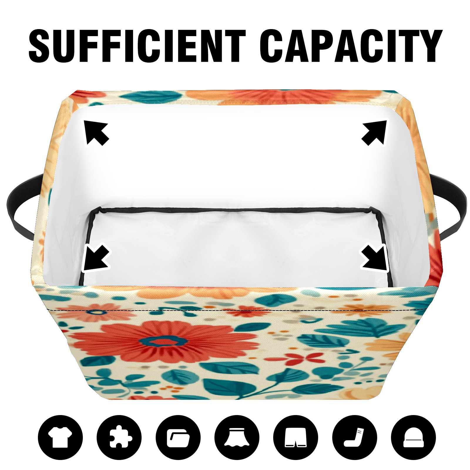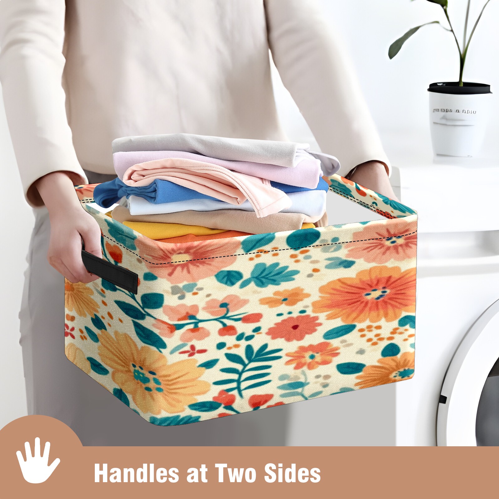 Foldable and Stackable Fabric Storage Basket for Home Organization with Handles, Decorative Closet Bins for Shelves, Laundry, and Toy Storage( Colorful Flowers And Leaves)