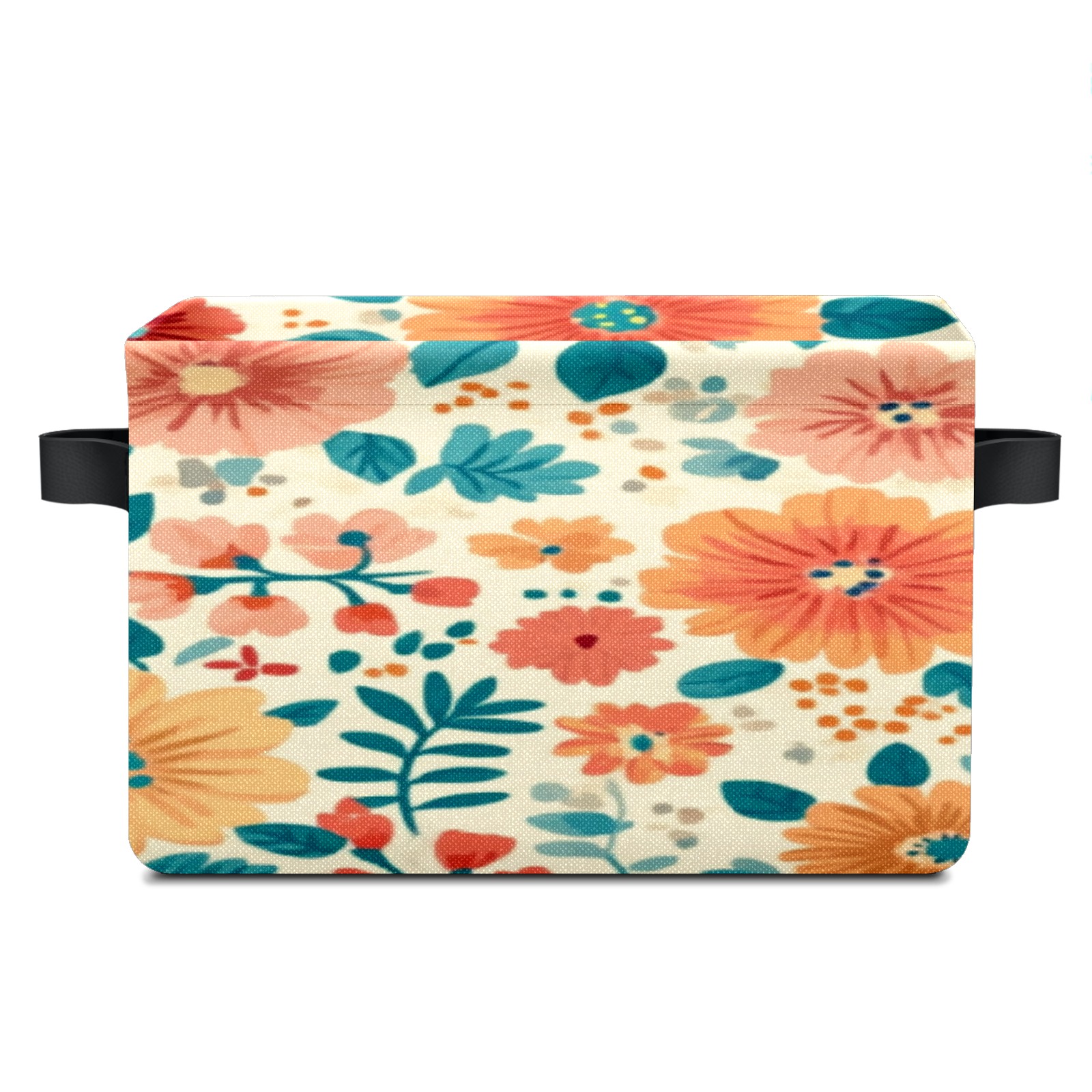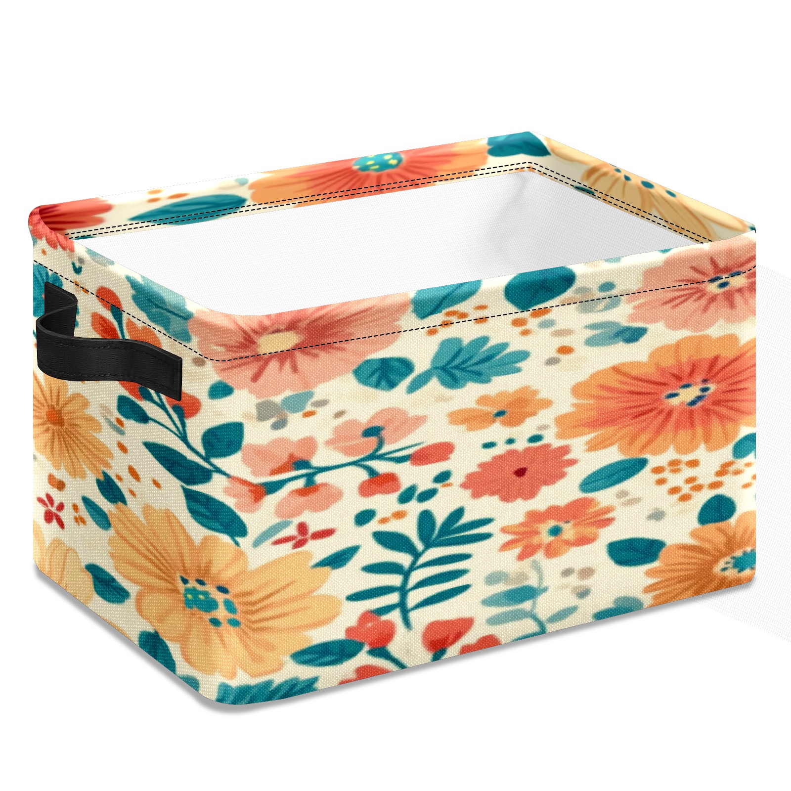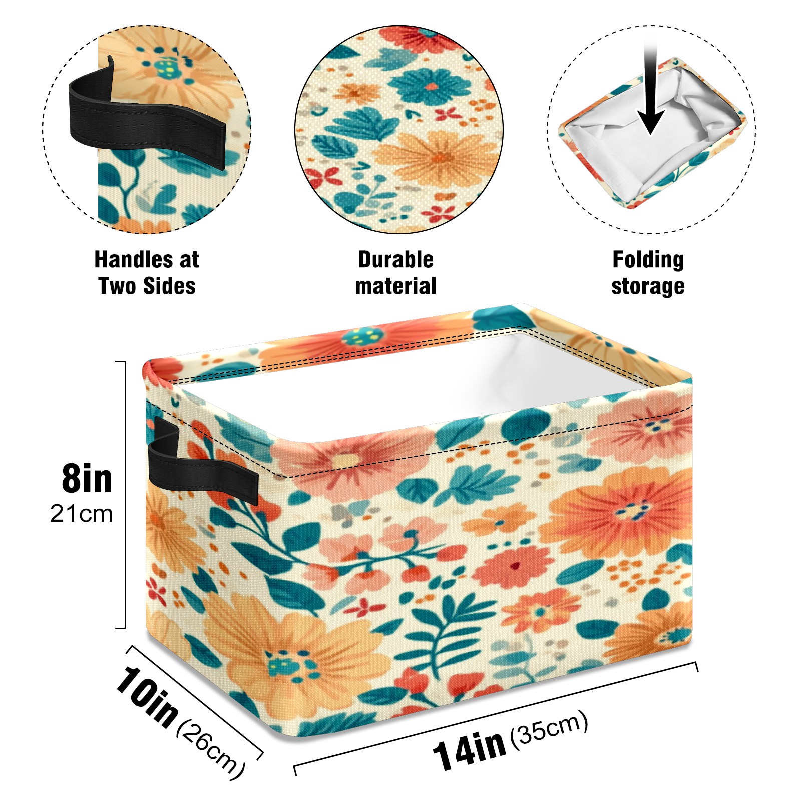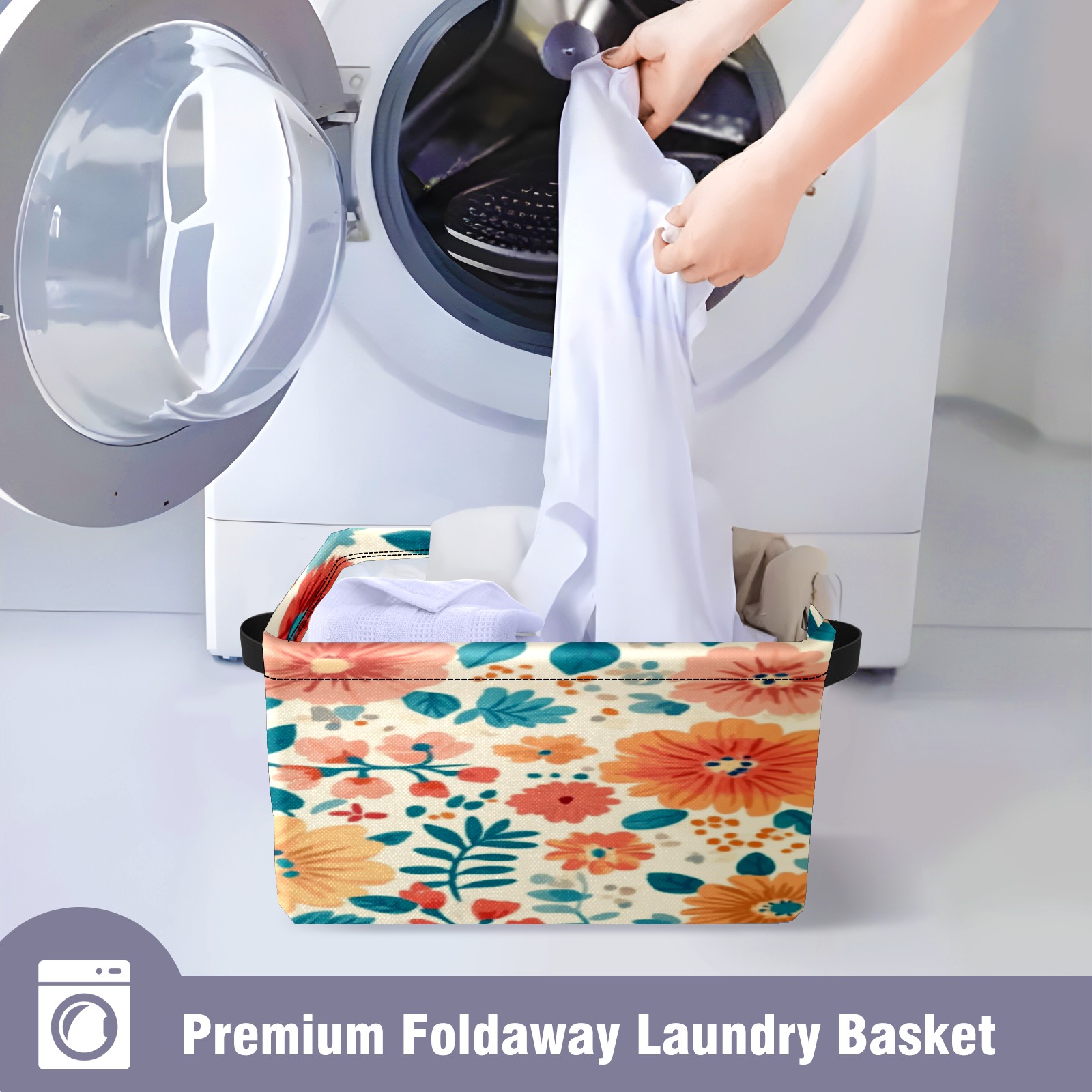 Foldable and Stackable Fabric Storage Basket for Home Organization with Handles, Decorative Closet Bins for Shelves, Laundry, and Toy Storage( Colorful Flowers And Leaves)